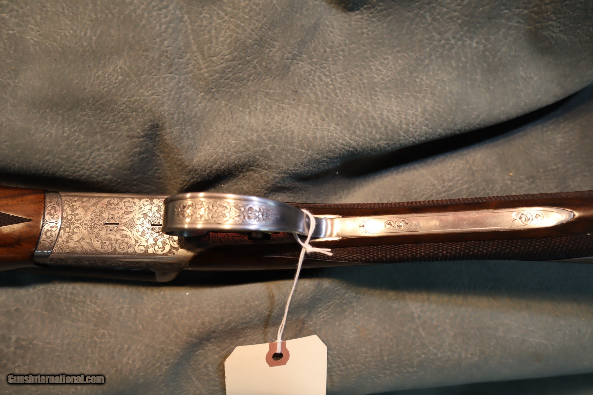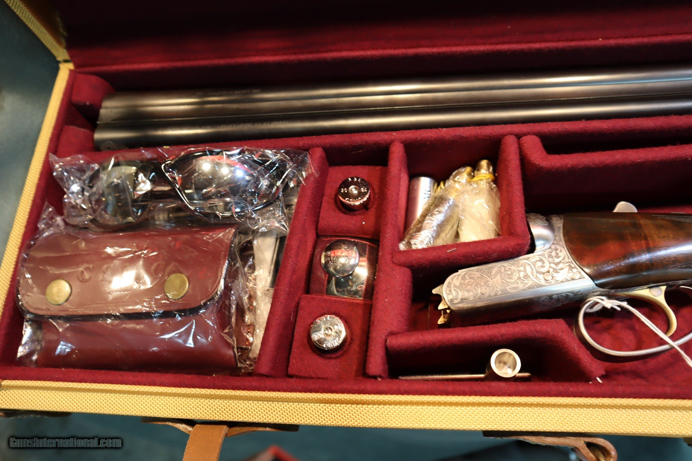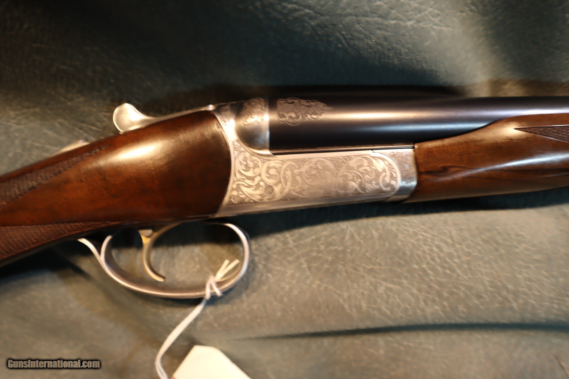 Description: Connecticut Shotgun RBL SxS 20ga 28" barrels with 5 choke tubes and wrench,fancy dark walnut stock with nice figure,English straight stock,14 3/4" LOP to buttplate,beavertail forearm,single selective trigger,automatic ejectors,new in the factory case with snap caps,oil bottle,2 pc wood cleaning rod with brush and mop,shooting glasses with leather case. GUN COLLECTIONS WANTED FOR CASH! We buy, sell, consign and trade new and used firearms. This is our 48th year in business. We offer 90 day layaways with 20% down. No return on layaways. Firearms will need to be transferred through a FFL dealer. Prices reflect a cash discount. There will be 3% added to credit card sales. We trade for gold and silver. THANK YOU! SOLD |