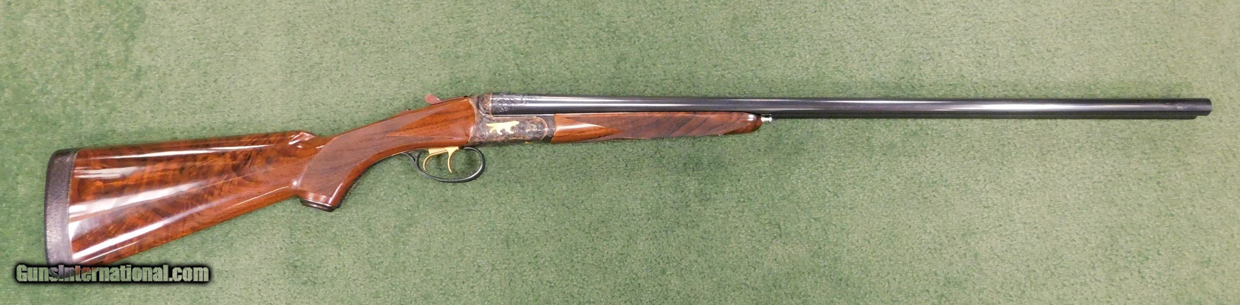 Description: 20 ga, leather covered pad added,LOP 15 3/4, 28 inch barrels, unfired in makers case. SOLD |