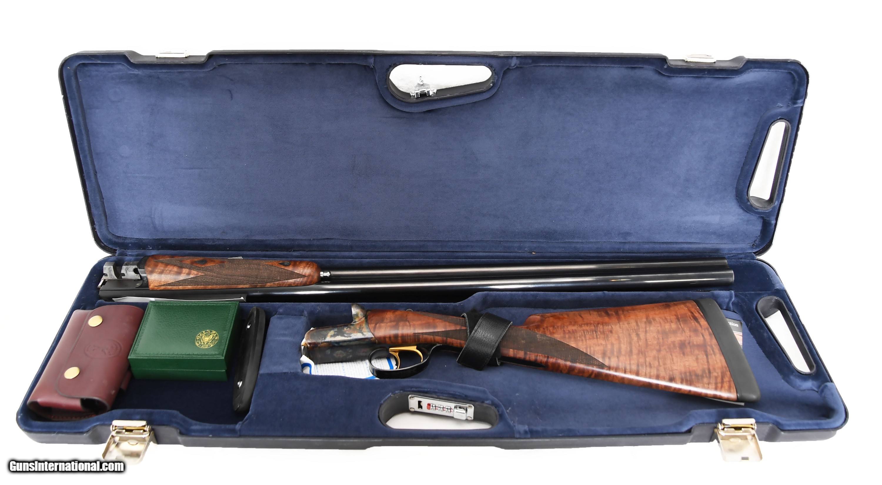 Description: CSMC RBL-12 SxS shotgun. Beautiful 12 gauge, 30" barrels, 3" chambers, factory fitted choke tubes and solid rib. Case colored receiver with double triggers, automatic safety and automatic ejectors. The stock and forearm were made out of an exceptional, dark, exotic grain piece of wood. The straight/English grip stock has a 14 3/4" LOP over a 1" Galazan recoil pad with 1 1/2" DAC and 2 1/4" DAH with 1/4" cast off for a right hand shooter. Cased with all accessories. As new condition. Weighs 8 lbs. 7 oz. so it is NOT a light game gun! Rather it is ideal for Sporting Clays, driven birds and/or waterfowl from a blind. $2,600.00 SN: RBL003992 SOLD |