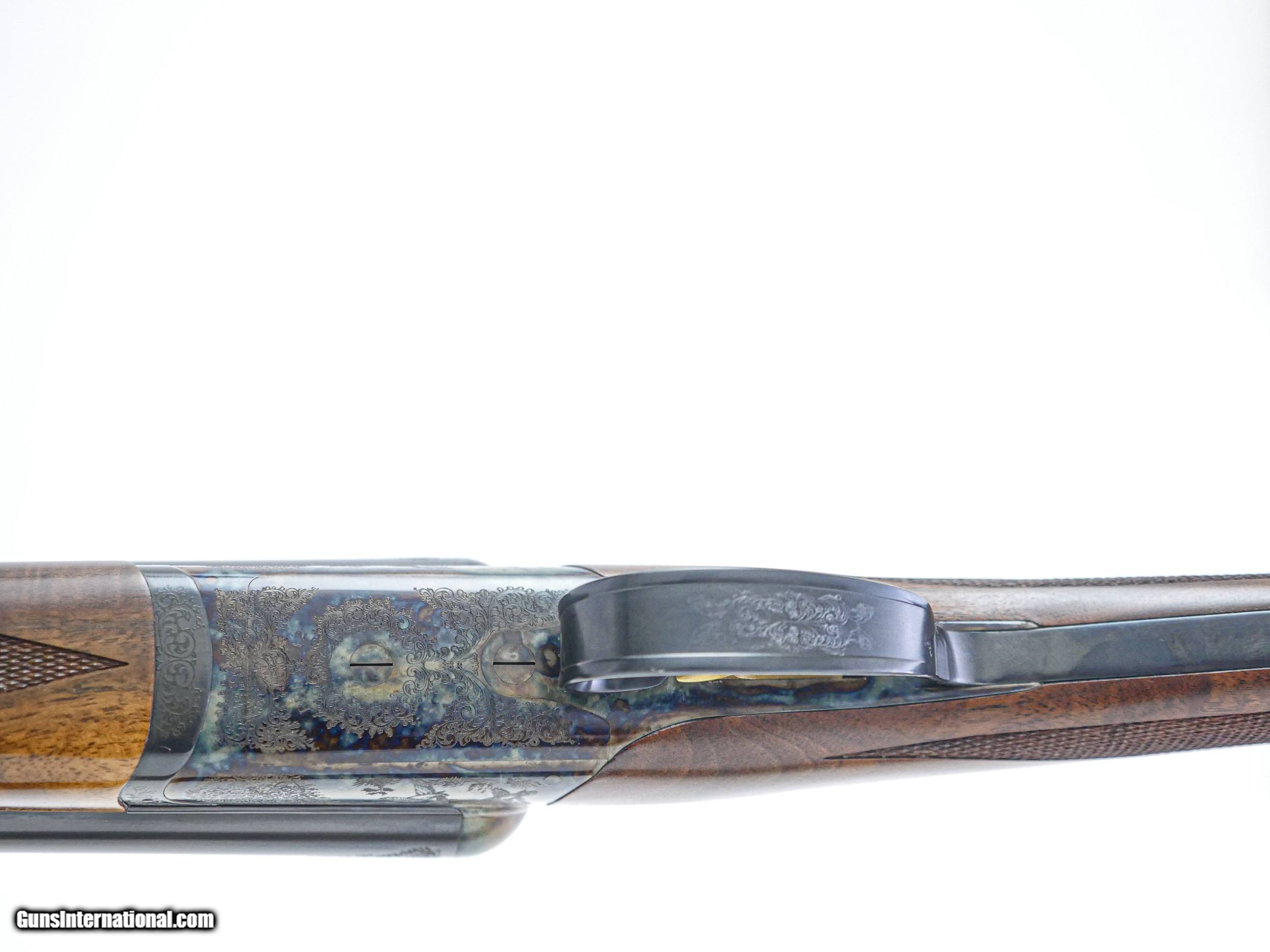 Description: CSMC - RBL - 12ga. 28" Barrels. With hidden chokes, factory vent rib, nicely figured 3x walnut straight grip stock, splinter forend, double triggers, long tang trigger guard, automatic ejectors, rooster pheasant and ducks in flight surrounded full coverage scroll engraving over spectacular case coloring, excellent configuration, 100% new and unfired available for immediate delivery. Base price - $3795.00, options include: Vent Rib - $450.00, 3x Wood - $350.00, S & H - $50.00. Inv: 19496 7 lbs. 11 oz. 14 ¾" X 1 ½" X 2 3/8" $4,650.00 SOLD |