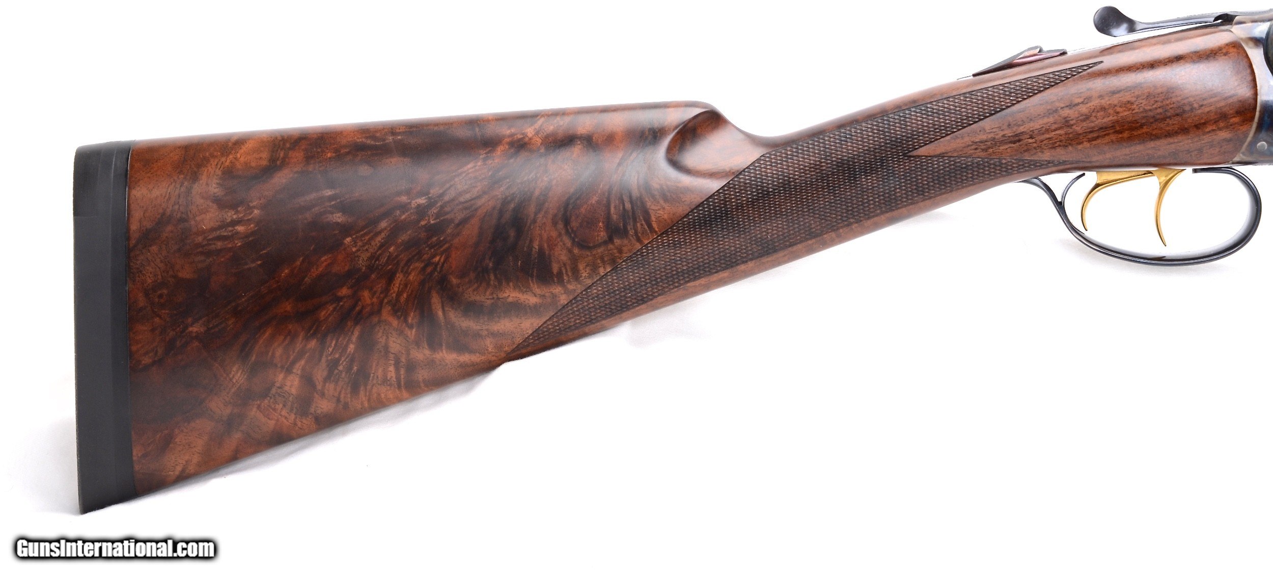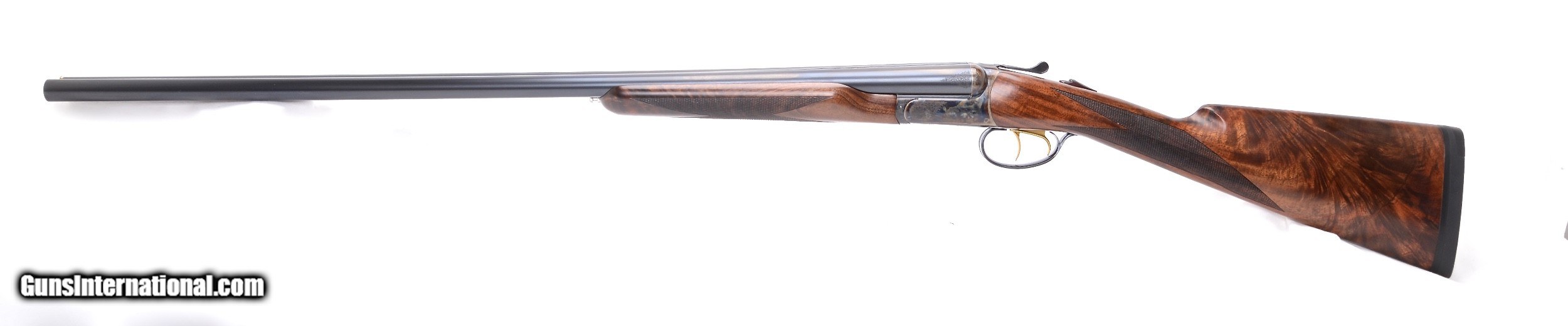 Description: CSMC RBL 16 gauge Reserve SxS shotgun. This is an absolutely New in the Case shotgun. Very desirable 29” barrels with smooth concave solid rib, choked IC & Mod. The sleek round body action has double triggers, automatic ejectors and automatic safety with the Reserve engraving pattern and case coloring. The stock is factory (highly figured) Exhibition grade walnut in a straight grip configuration; 14 ¾” LOP over a factory installed ¾” sporting clays recoil pad with 1 ½” DAC, 2 ½” DAH with ¼” right hand cast and 1” down pitch. Matching beavertail forearm. The gun weighs 6 lbs. 10 oz. and balances nicely in the hands. As I said this gun is unfired and new in the factory full leather luggage case with accessories. Priced below market..at $4,695.00 sn: RBL005149 SOLD |