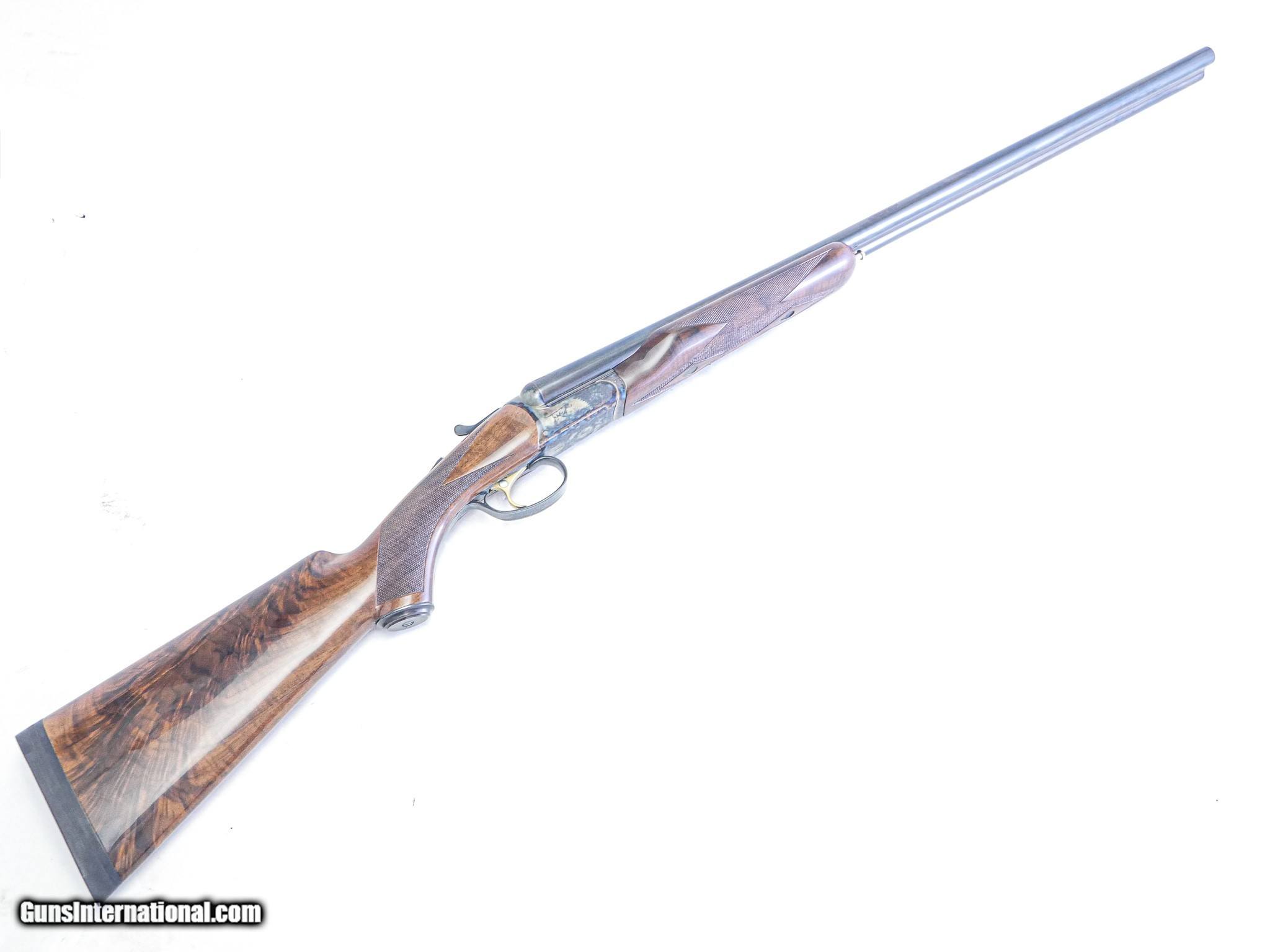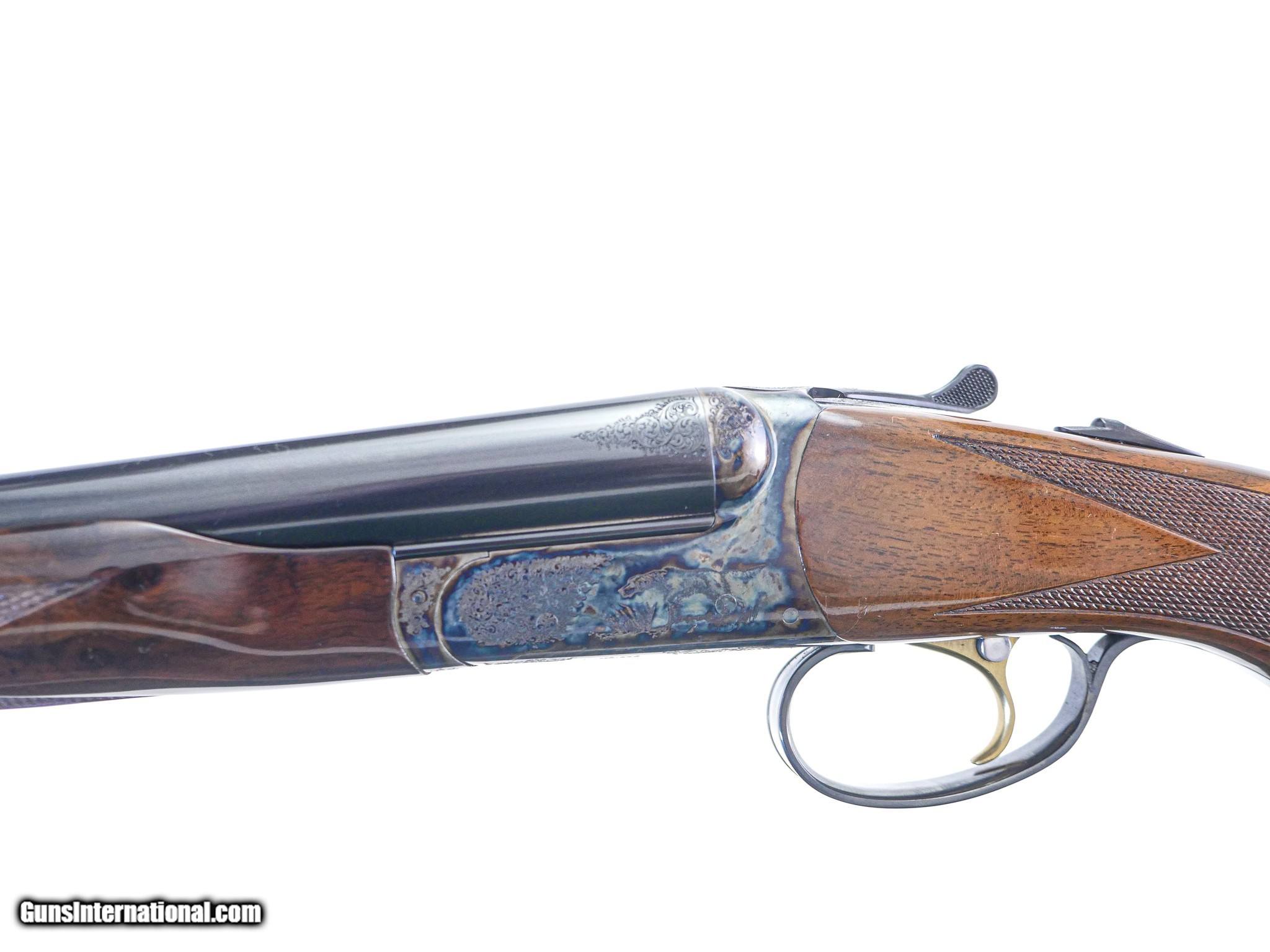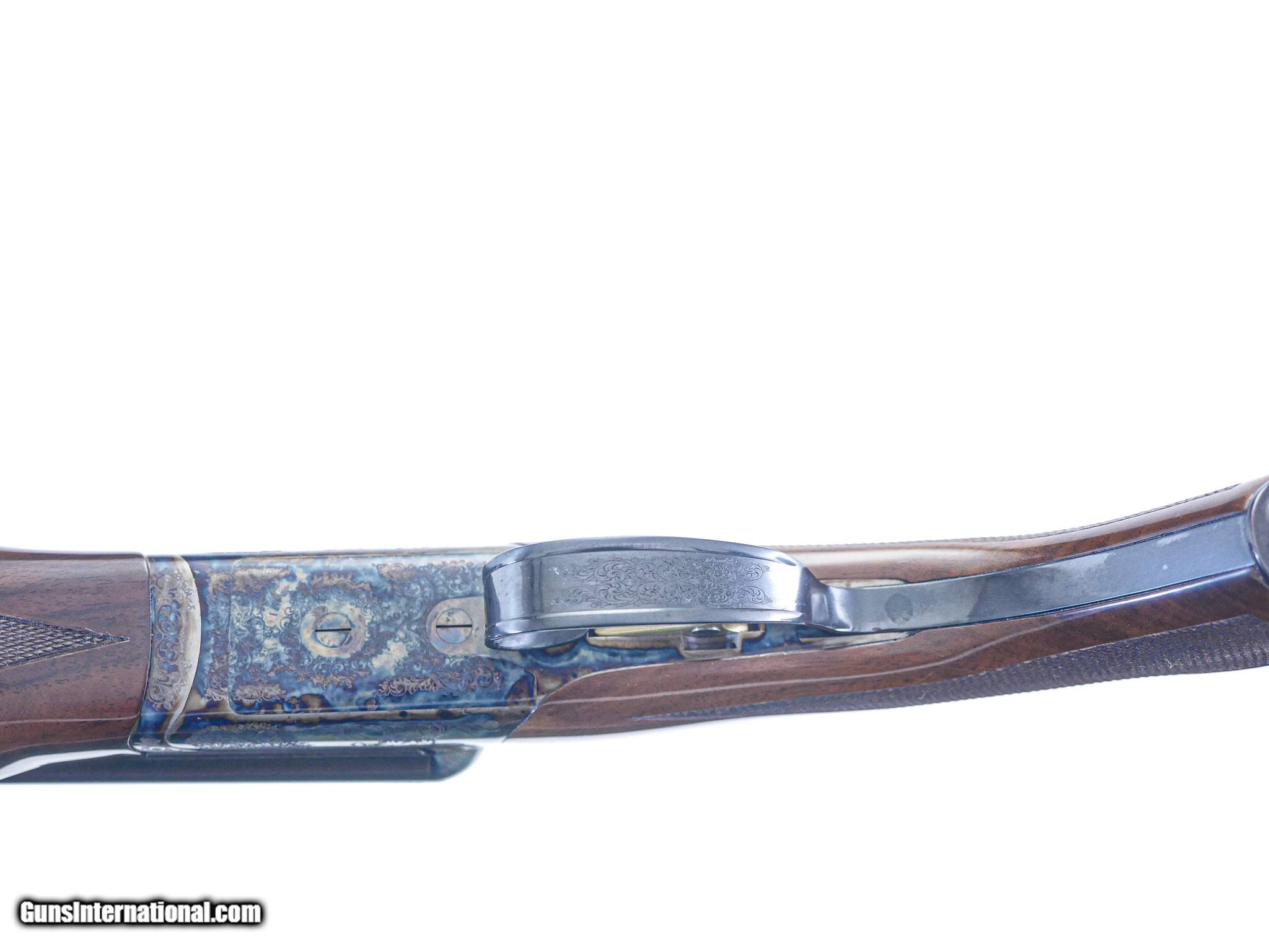 Description: CSMC - RBL, 16ga. 29” Barrels Choked F/F. The chokes can opened to customer specifications, exhibition American black walnut long tang pistol grip stock, factory ¾” recoil pad, Truoil finish, beavertail forend, gold single selective trigger, automatic ejectors, solid game rib, pointer and setter surrounded by full coverage scroll, traditional bone and charcoal case colored finish. Base Price - $3,795.00, Options Include: Exhibition Wood - $900.00, SST - $175.00, Beavertail - $175.00, TruOil Finish - $500.00, S&H - $50.00. Made in the USA by the highly skilled CSMC gunsmiths, 100% new and unfired available for immediate delivery. Inv: 19590 7 lbs. 0 oz. 14 3/4” x 1 1/2” x 2 3/8” $5,595.00 SOLD |