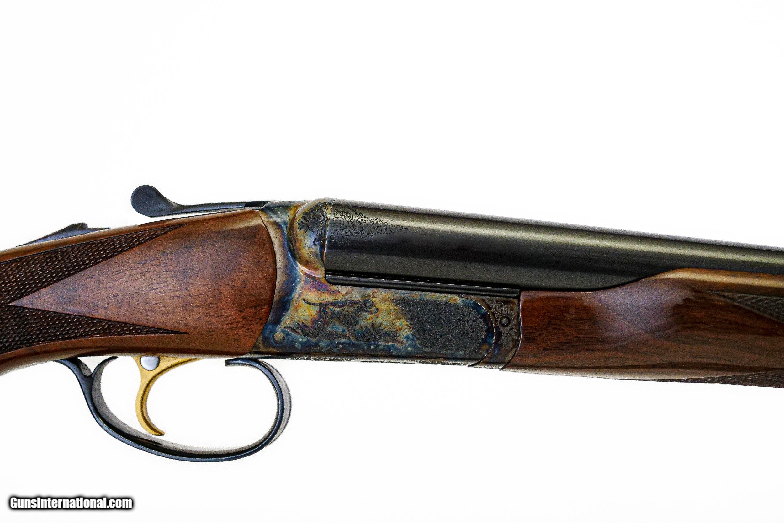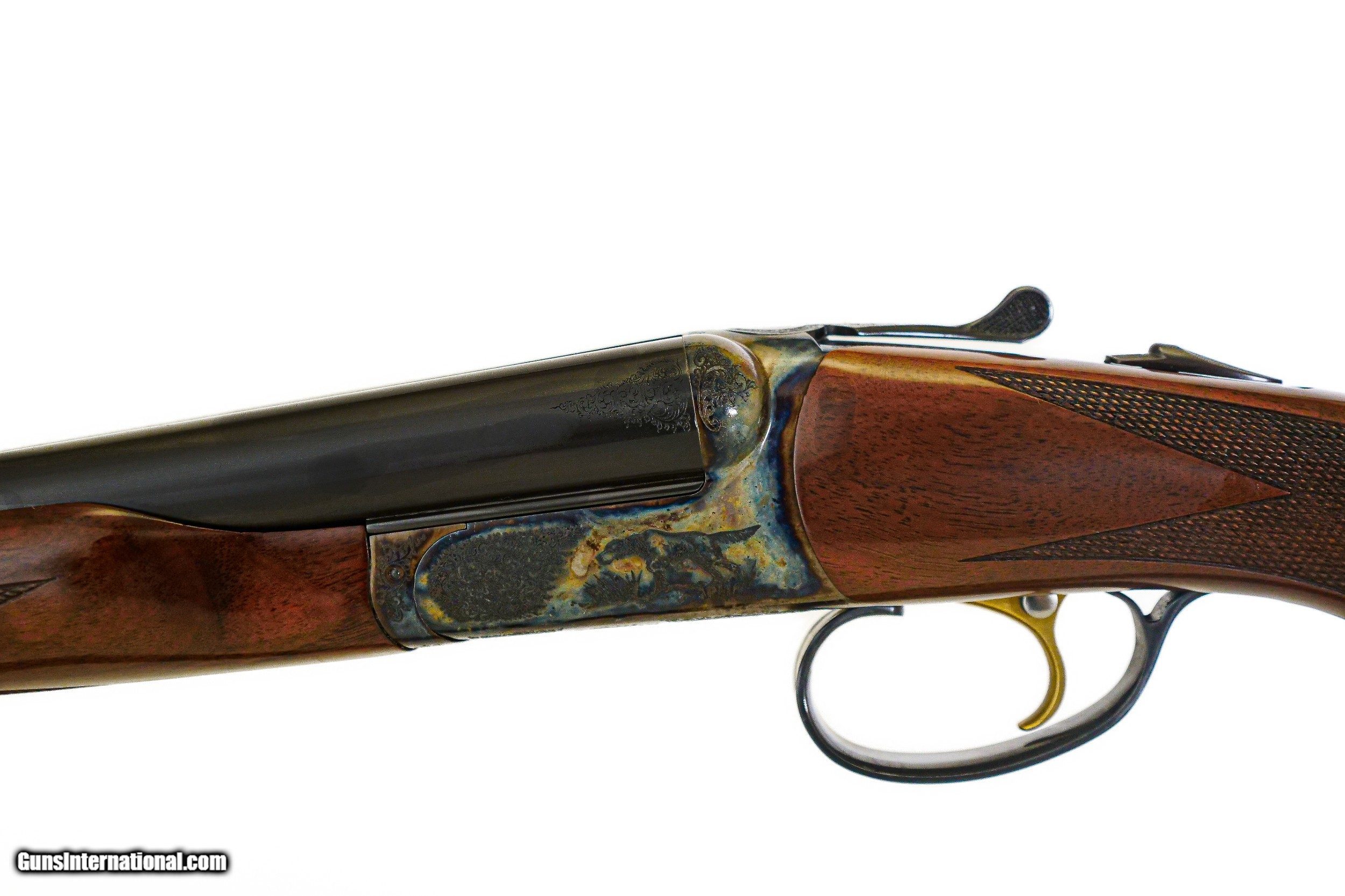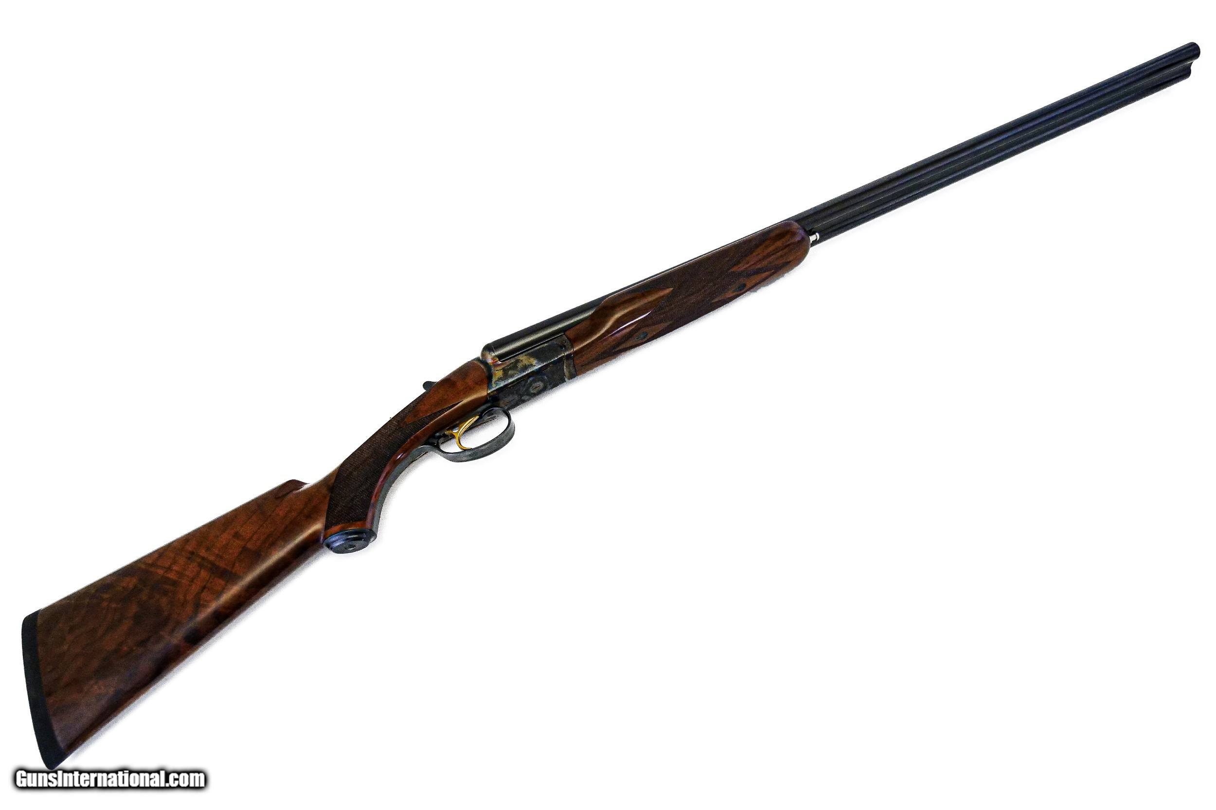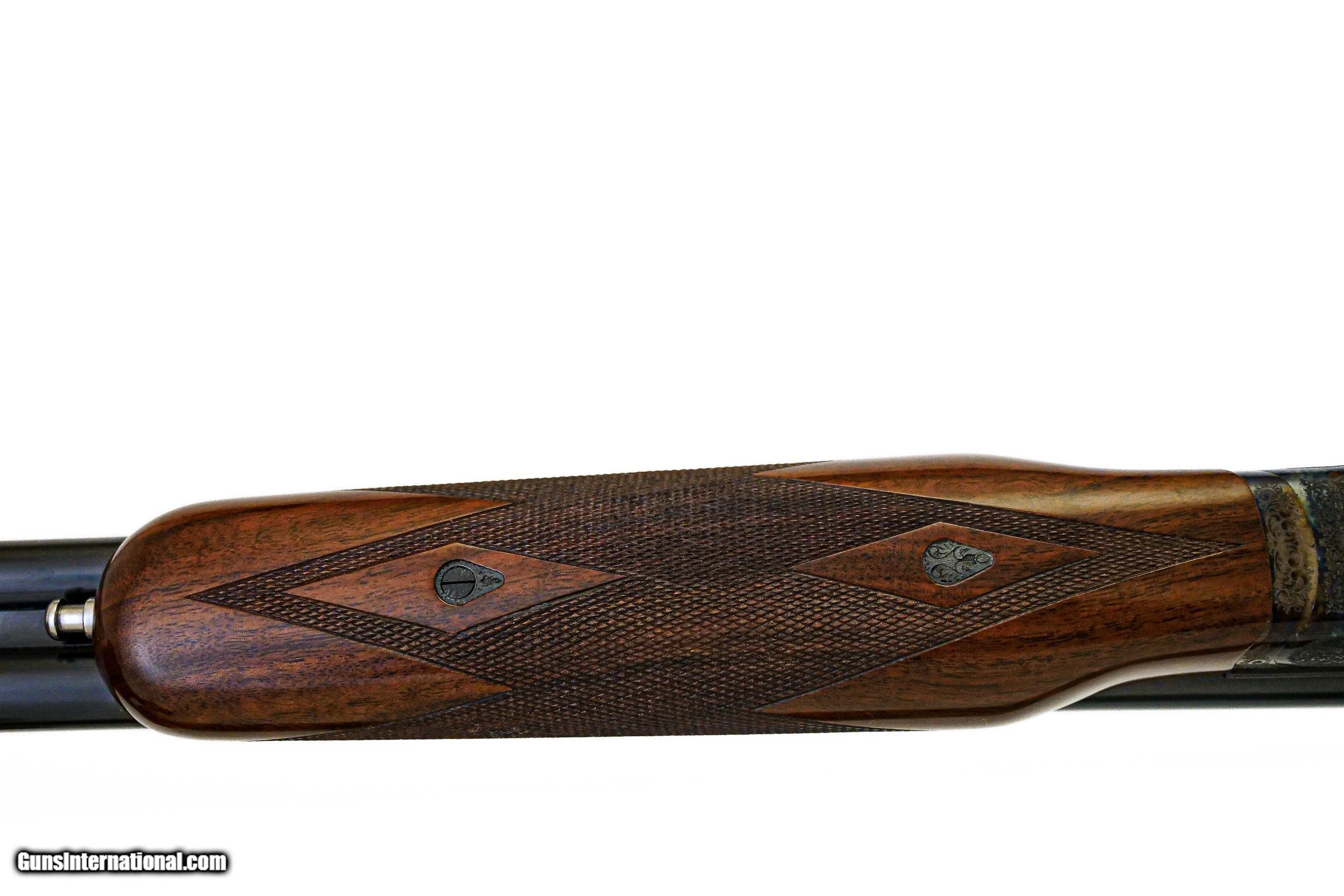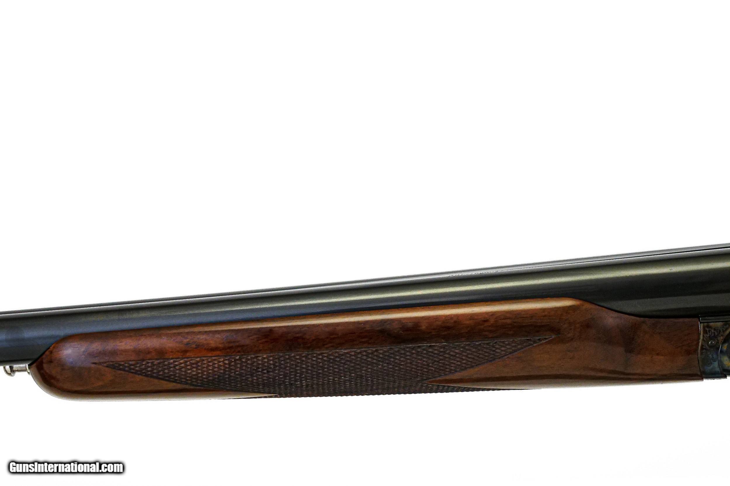 Description: CSMC - RBL, 16ga. 29” Barrels Choked IC/M. Nicely figured 3x American black walnut pistol grip stock, factory ½” recoil pad, beavertail forend, TruOil finish, single selective trigger, automatic ejectors, solid game rib, pointer and setter vignettes surrounded by full coverage scroll engraving over magnificent bone and charcoal case coloring, ideal upland gun. Available for immediate delivery. Base Price - $4,250.00, Options Include: 3x American Black Walnut - $350.00, Beavertail Forend - $175.00, TruOil Finish - $500.00, Single Selective Trigger - $175.00, S & H - $50.00. Inv: 18283 6 lbs. 9 oz. 14 5/8”x 1 ½” x 2 3/8” $5,500.00 SOLD |