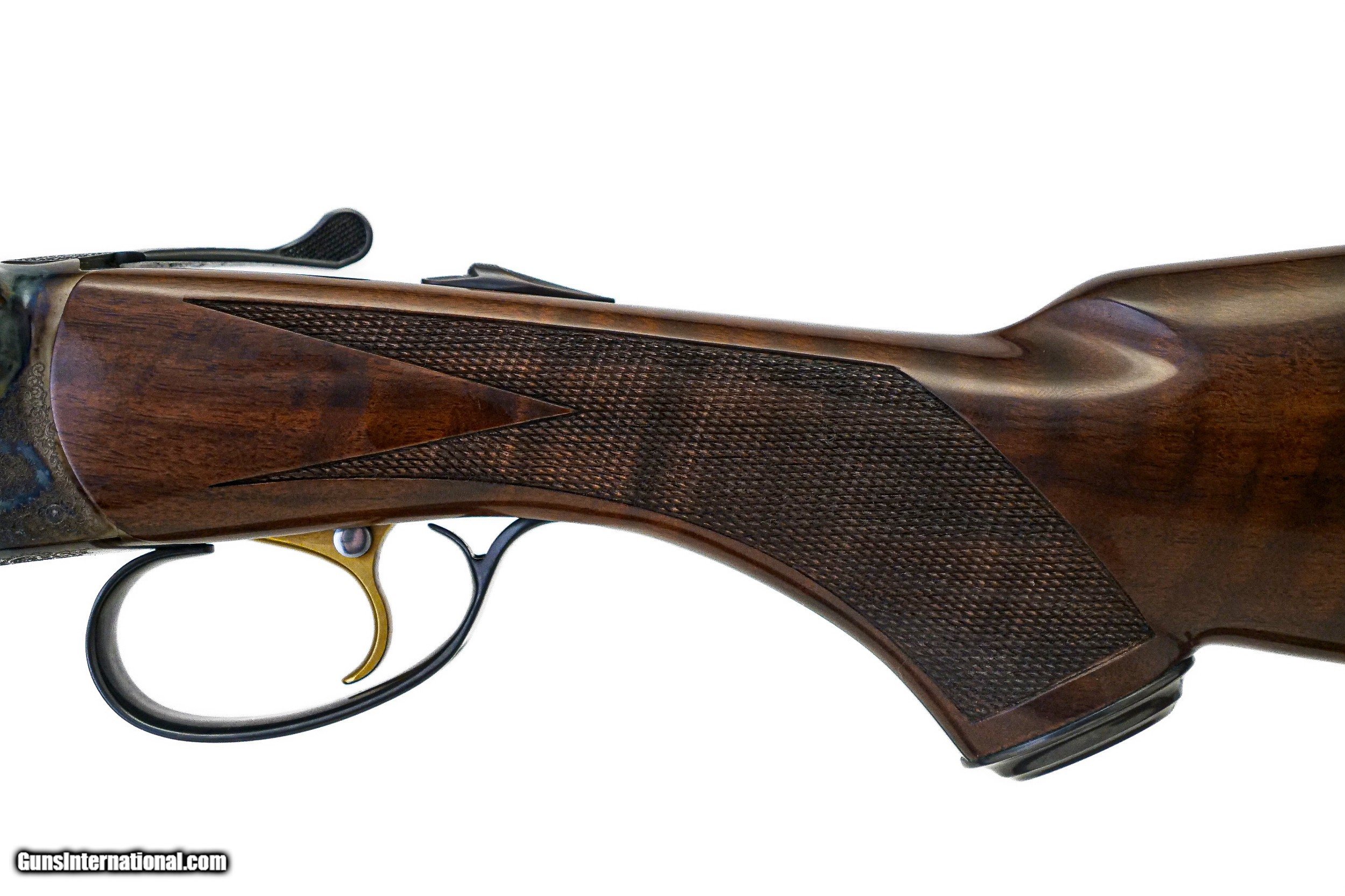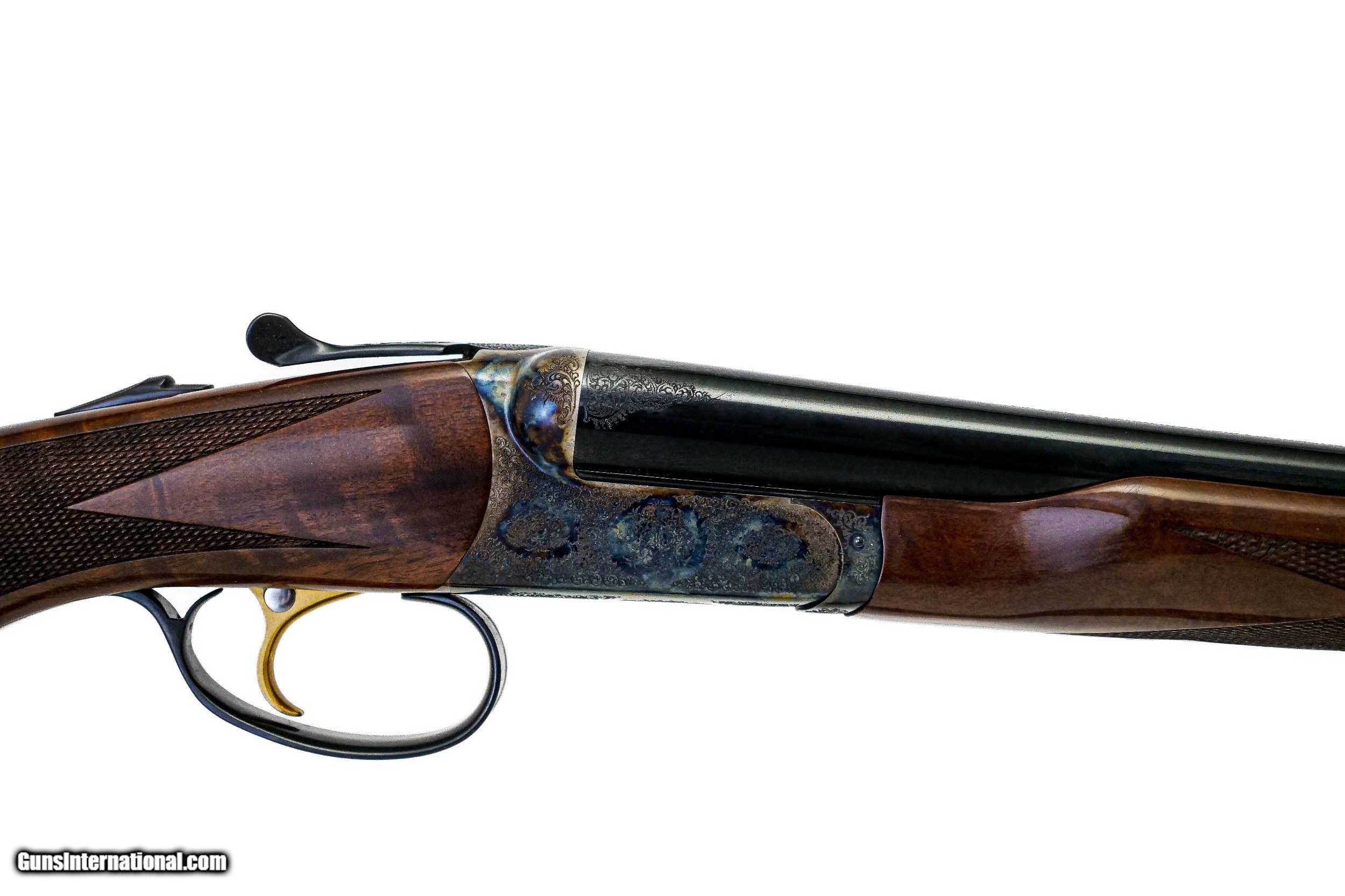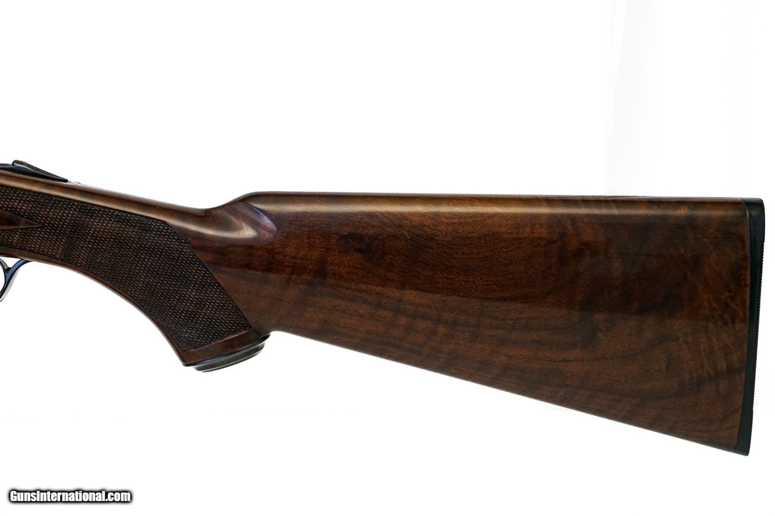 Description: CSMC - RBL, 20ga. 28" Barrels with Screw-in Choke Tubes. Nicely figured 3x fiddleback American black walnut long tang metal capped pistol grip stock, TruOil finish, hidden screw-in choke tubes, factory serrated butt plate, gold single selective trigger, automatic ejectors, 2 ¾” chambers, solid game rib, automatic safety, front brass sight, beavertail forend, full coverage miniature rose bouquet and scroll engraving over a tradition bone and charcoal color case hardened finish, engraved wedges on breech of barrels, factory brand new and unfired, available for immediate delivery. Base Price - $4,250.00, Options Include: TruOil Finish - $550.00, Single Selective Trigger - $175.00, Beavertail Forend - $175.00, 3x Walnut - $350.00, S&H - $50.00. Inv: 19740 6 lbs. 2 oz. 14 5/8” x 1 ½” x 2 3/8” $5,550.00 SOLD |
