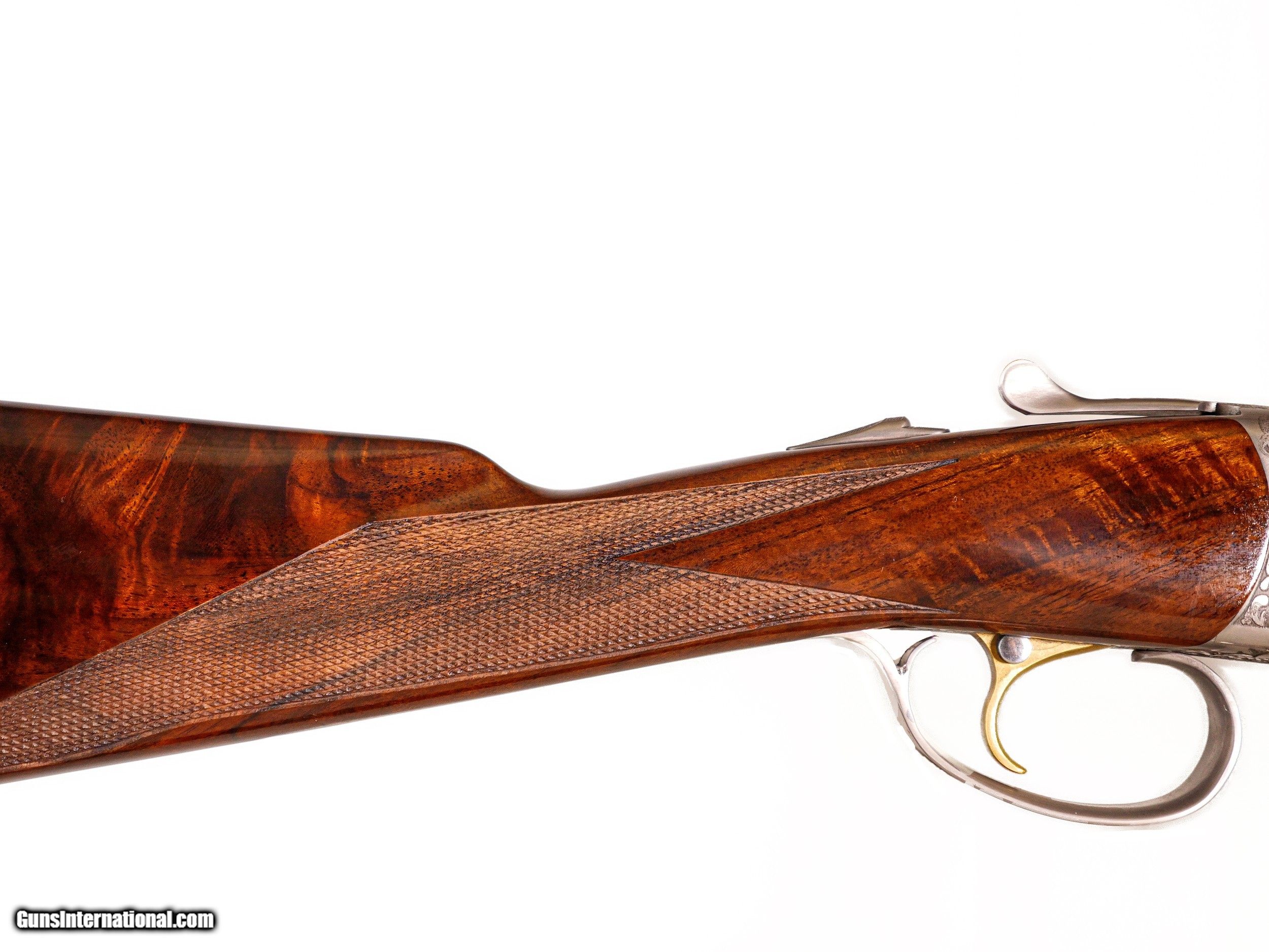 Description: CSMC - RBL, 20ga. 28" Barrels with Screw-in Choke Tubes. Factory hidden screw-in chokes, solid game rib, exhibition American black walnut straight grip stock, beavertail forend, TruOil finish, single selective trigger, automatic ejectors, full coverage ornamental scroll engraving over a nitride coin finish, factory butt plate, a beautiful gun, hand made in the USA by the master gunsmiths of Connecticut Shotgun, available for immediate delivery. Base Price - $3,750.00, Options Include: Exhibition American Black Walnut - $900.00, TruOil Finish - $500.00, Single Selective Trigger - $175.00, Beavertail Forend - $175.00, S & H - $50.00. Inv: 19160 6 lbs. 2 oz. 14 ¾” X 1 ½” X 2 3/8” $5,550.00 SOLD |