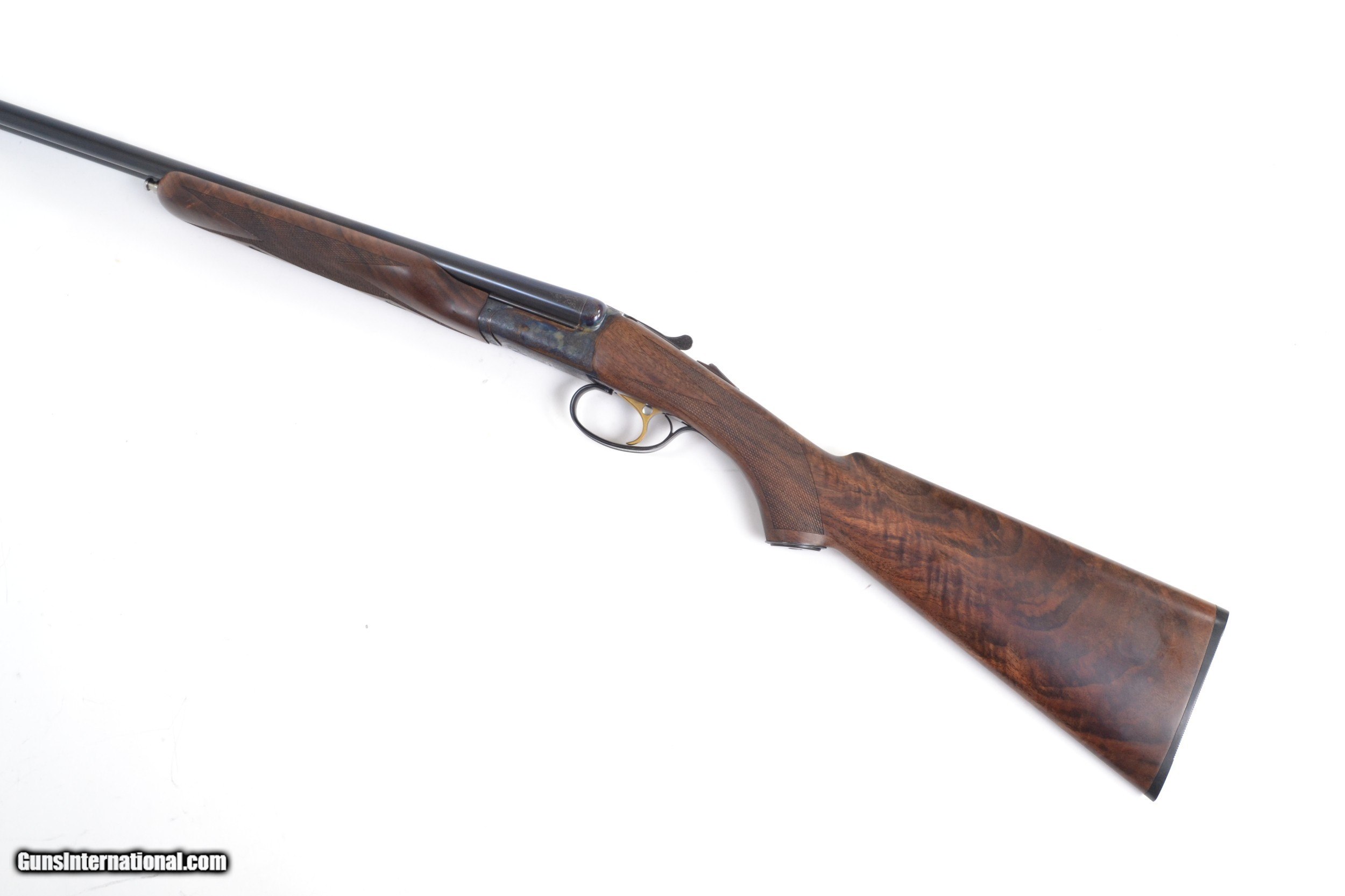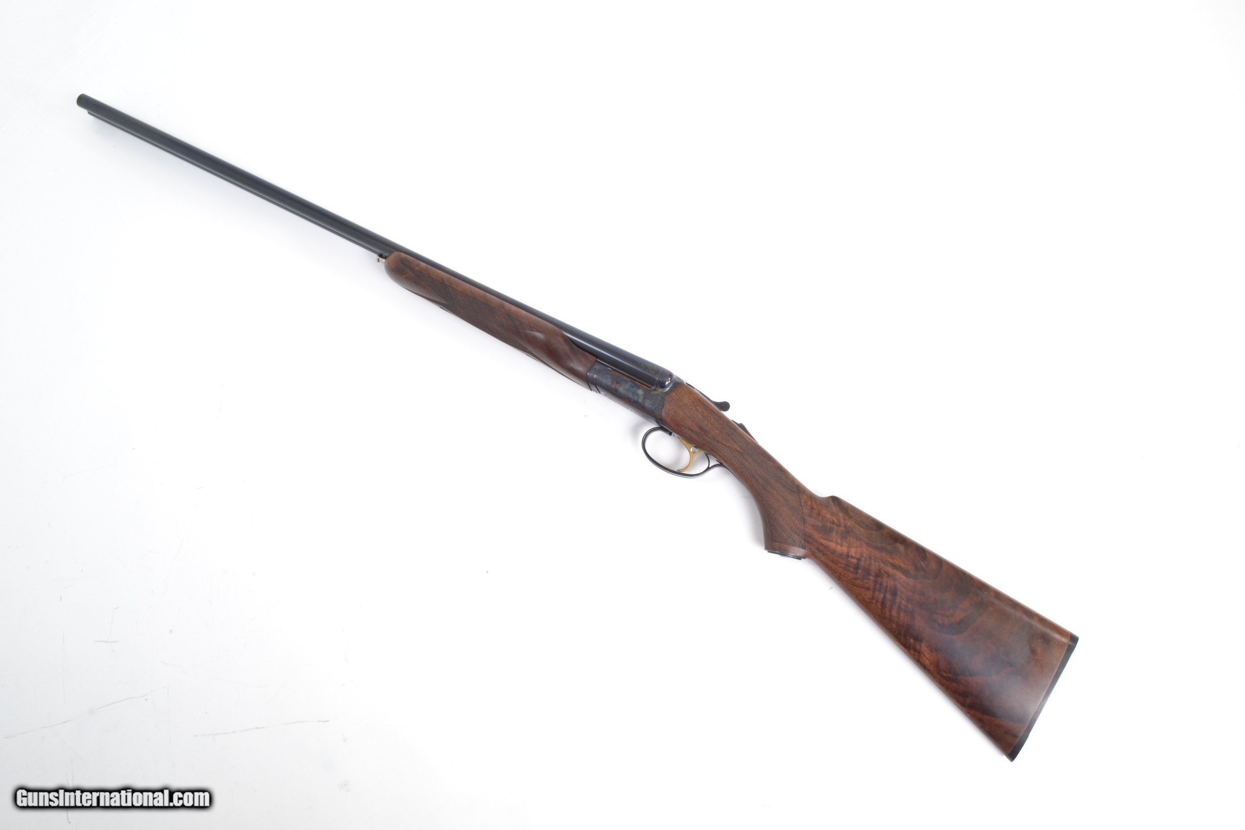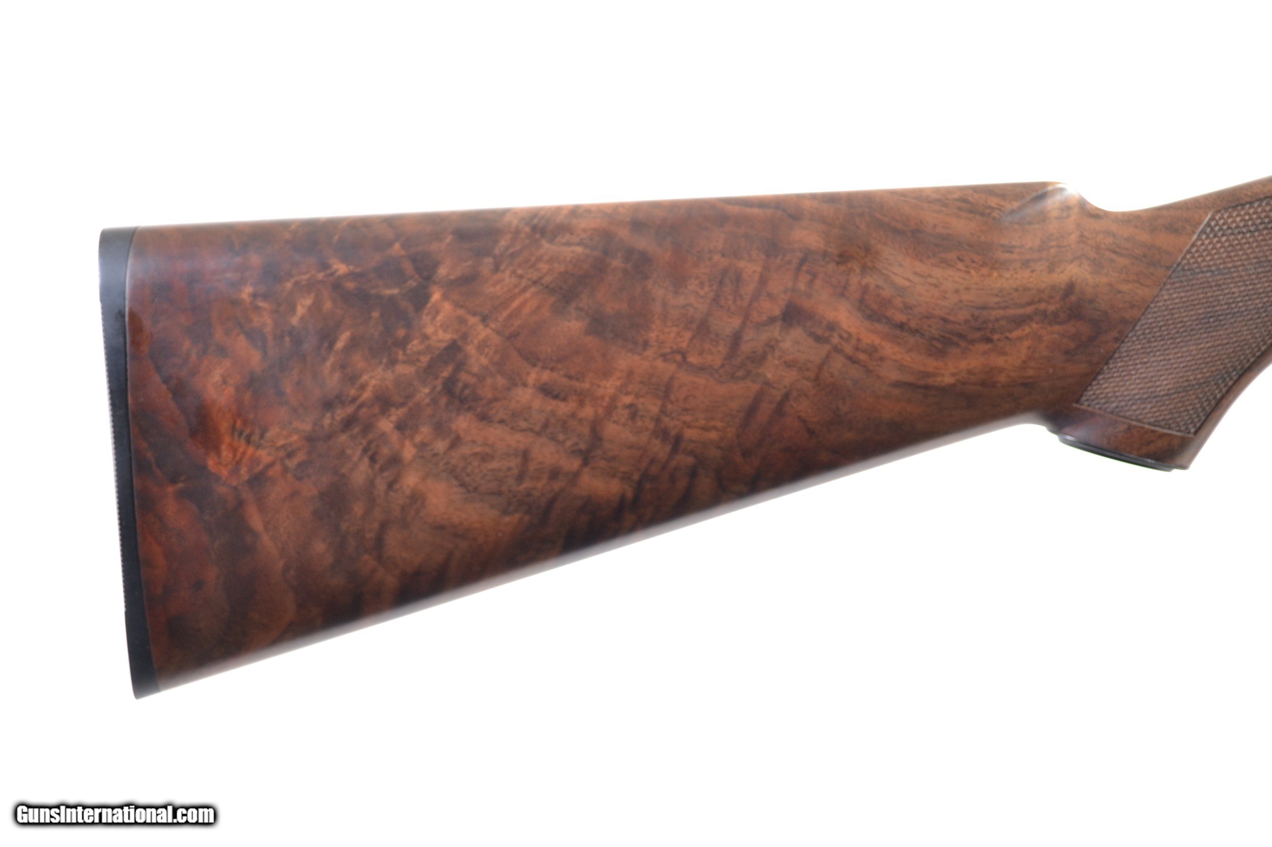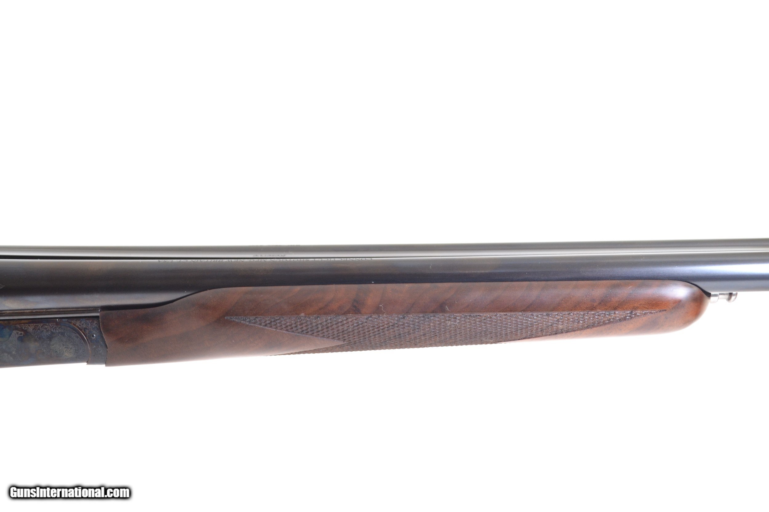 Description: CSMC RBL 28 - .28ga., 28” barrels, M/F choked, can be opened to customers specifications, beautiful Exhibition grade full feathercrotch American walnut long tang metal capped pistol grip stock, beavertail forend, single trigger, automatic ejectors, automatic safety, London oil finish, solid rib, hard butt plate, beautifully engraved pointer & setter scenes over a bone and charcoal case colored receiver. 100% new and unfired, available for immediate delivery. Base - $5,000, Exhibition Wood - $900, Beavertail - $175, Single Selective Trigger - $175, S&H 50.