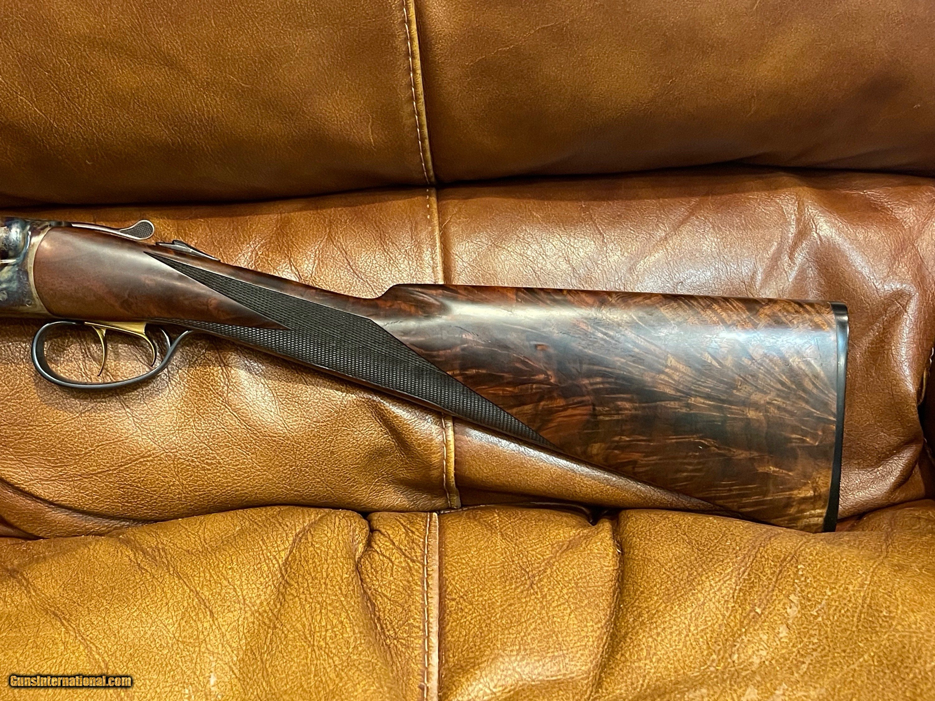 Description: Sold... CSMC RBL 28 Gauge Shotgun, 26inch Barrels, English Stock, IC/SK fixed chokes, 14 1/2 inch LOP, 5lbs 10oz, Exhibition Grade wood, open assist, with nice aftermarket leather case SOLD Shotgun Gauge: 28 Gauge Manufacturer: CSMC Model: RBL Chambers: 2 3/4 Ejectors: Yes Condition: Excellent Metal Condition: Excellent Wood Condition: Excellent Bore Condition: Excellent Triggers: Double LOP: 14 1/2 Weight: 5 lb 10 oz Sights: Single Bead Chokes: Fixed Choke Left: IC Choke Right: Sk Engraving: Yes, RBL Extras: Open assist |