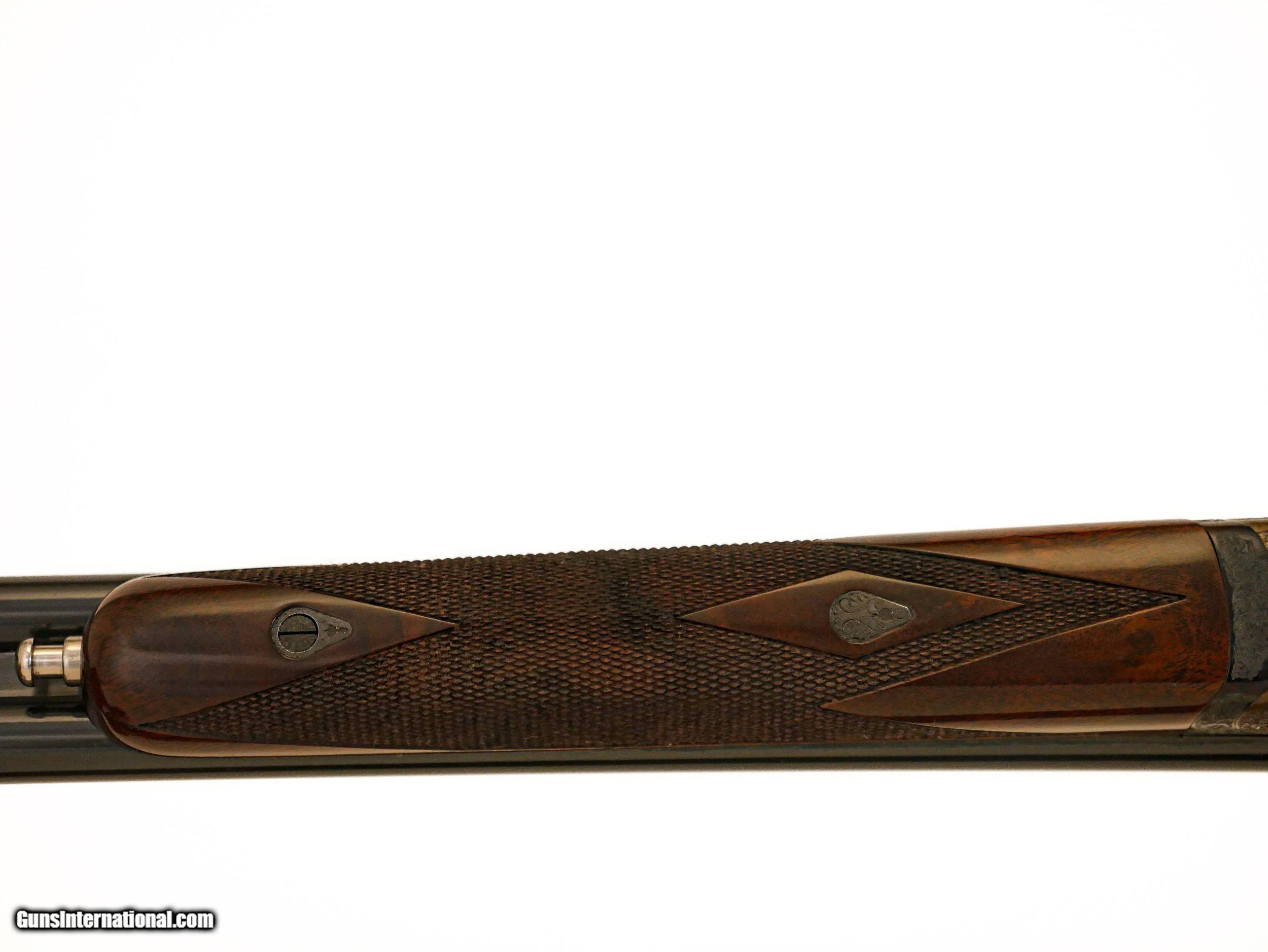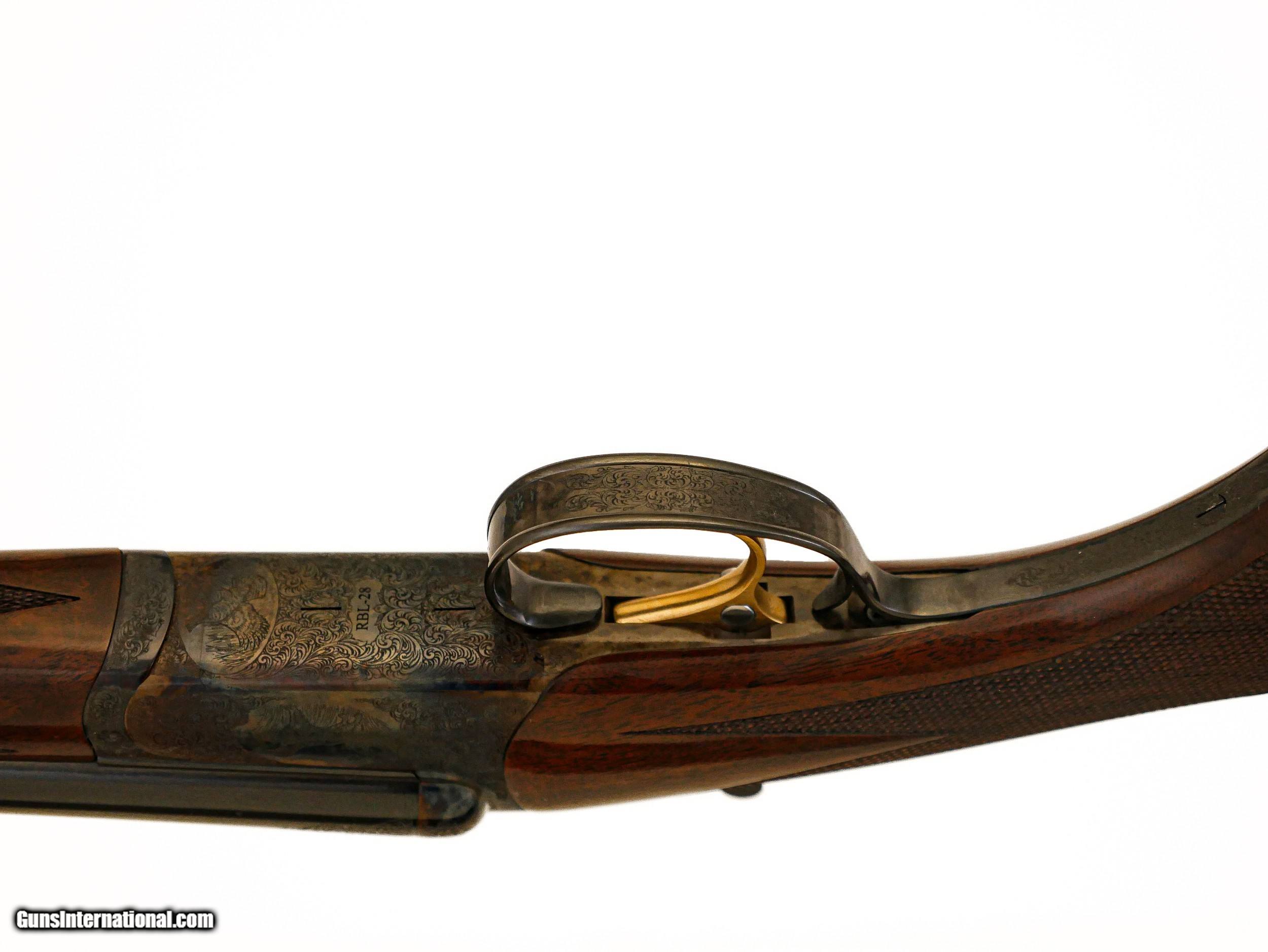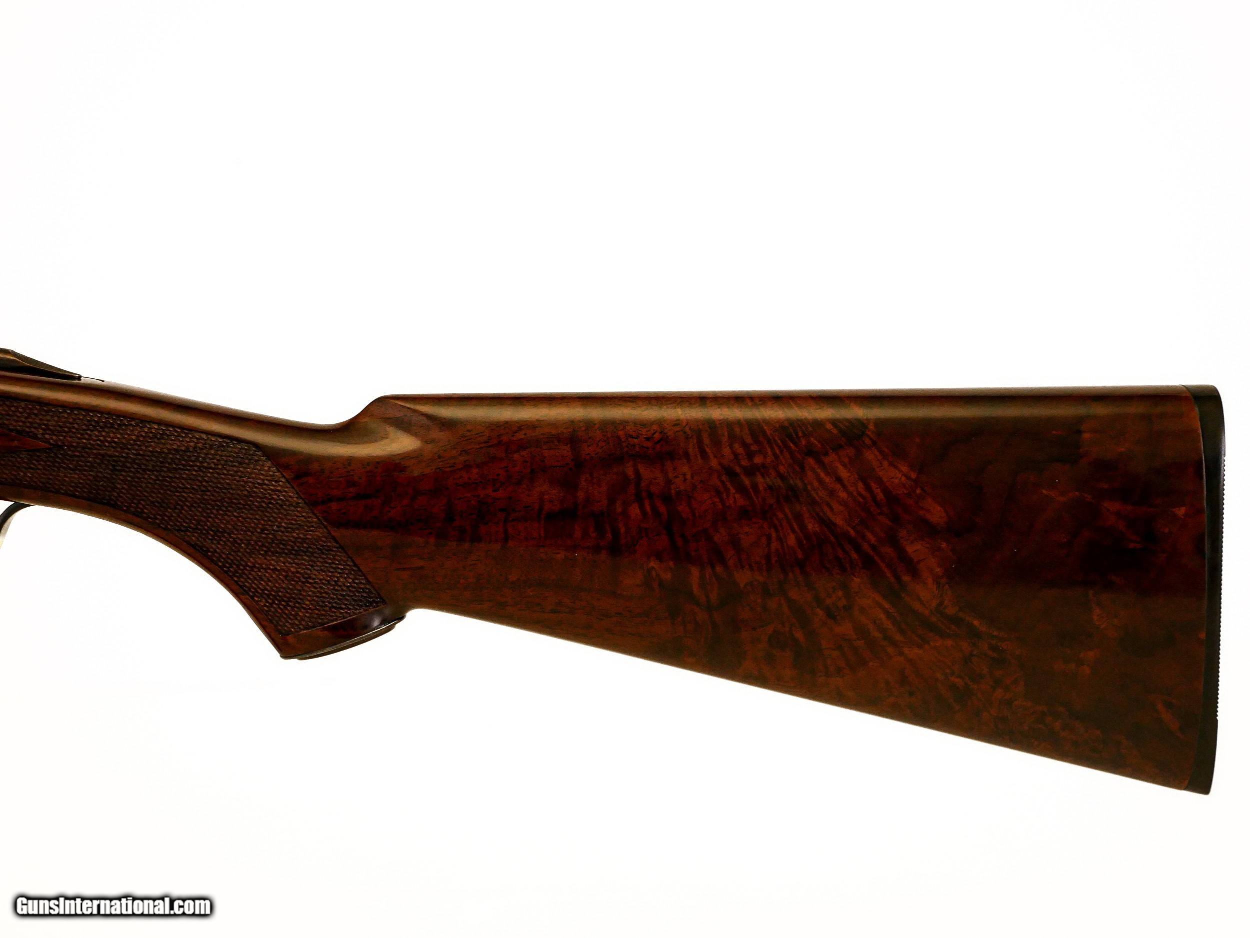 Description: CSMC - RBL, 28ga. 26" Barrels Choked M/F. Chokes can be opened to customer specifications, solid game rib, 4x feathercrotch American black metal capped pistol grip stock, splinter forend, TruOil finish, single selective trigger, automatic ejectors, game scene engraving of pointer, setter, and grouse surrounded by full coverage scroll engraving over spectacular case coloring, factory butt plate, excellent configuration, hand made in the USA by the master gunsmiths of Connecticut Shotgun, available for immediate delivery. Base Price - $4,995.00, Options Include: Exhibition 4x Black Walnut - $600.00, TruOil Finish - $500.00, Single Selective Trigger - $175.00, S & H - $50.00. Inv: 20497 6 lbs. 14 oz. 14 5/8” X 1 ½” X 2 3/8” $6,320.00 SOLD |