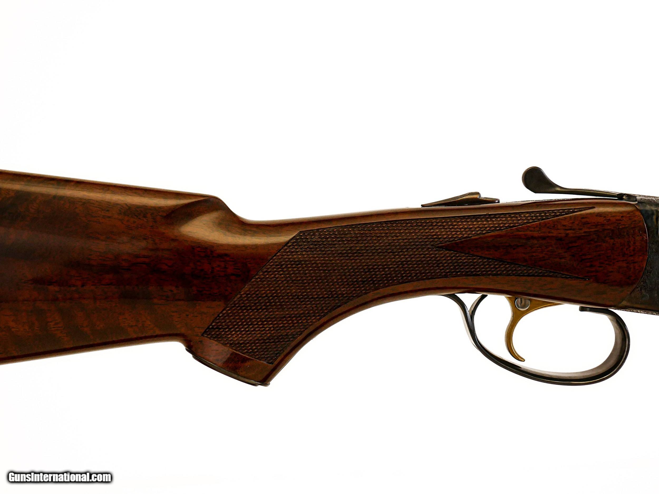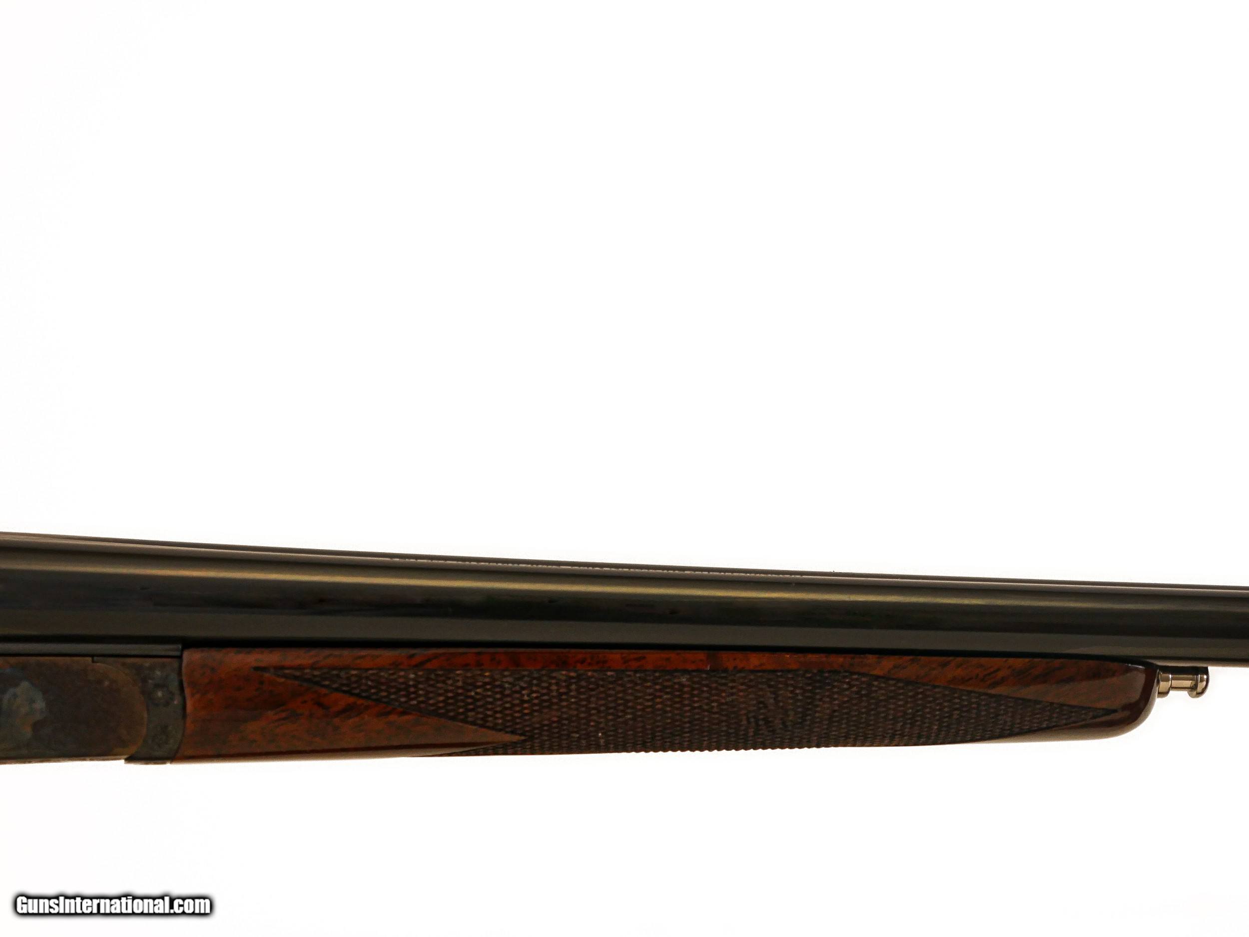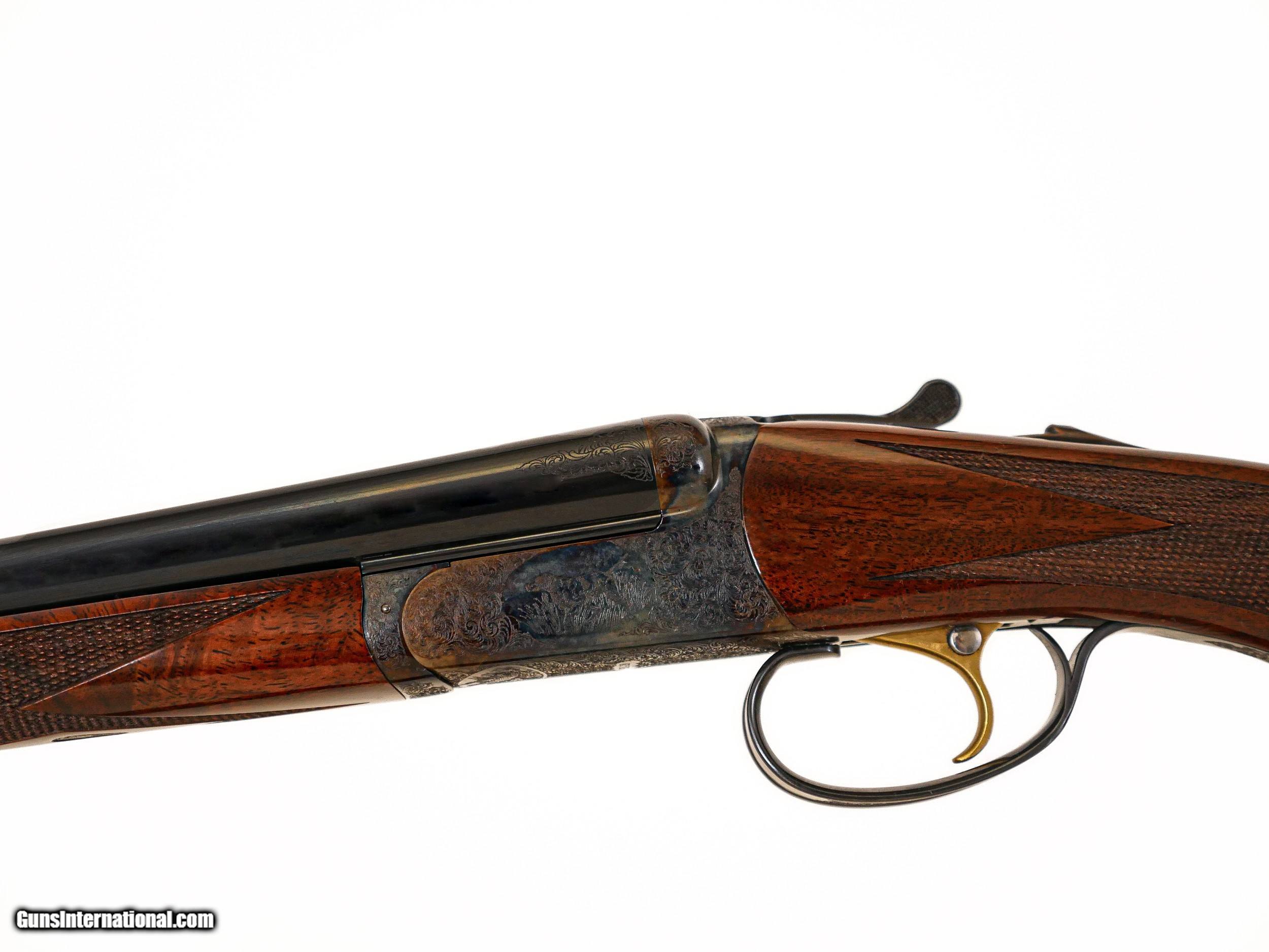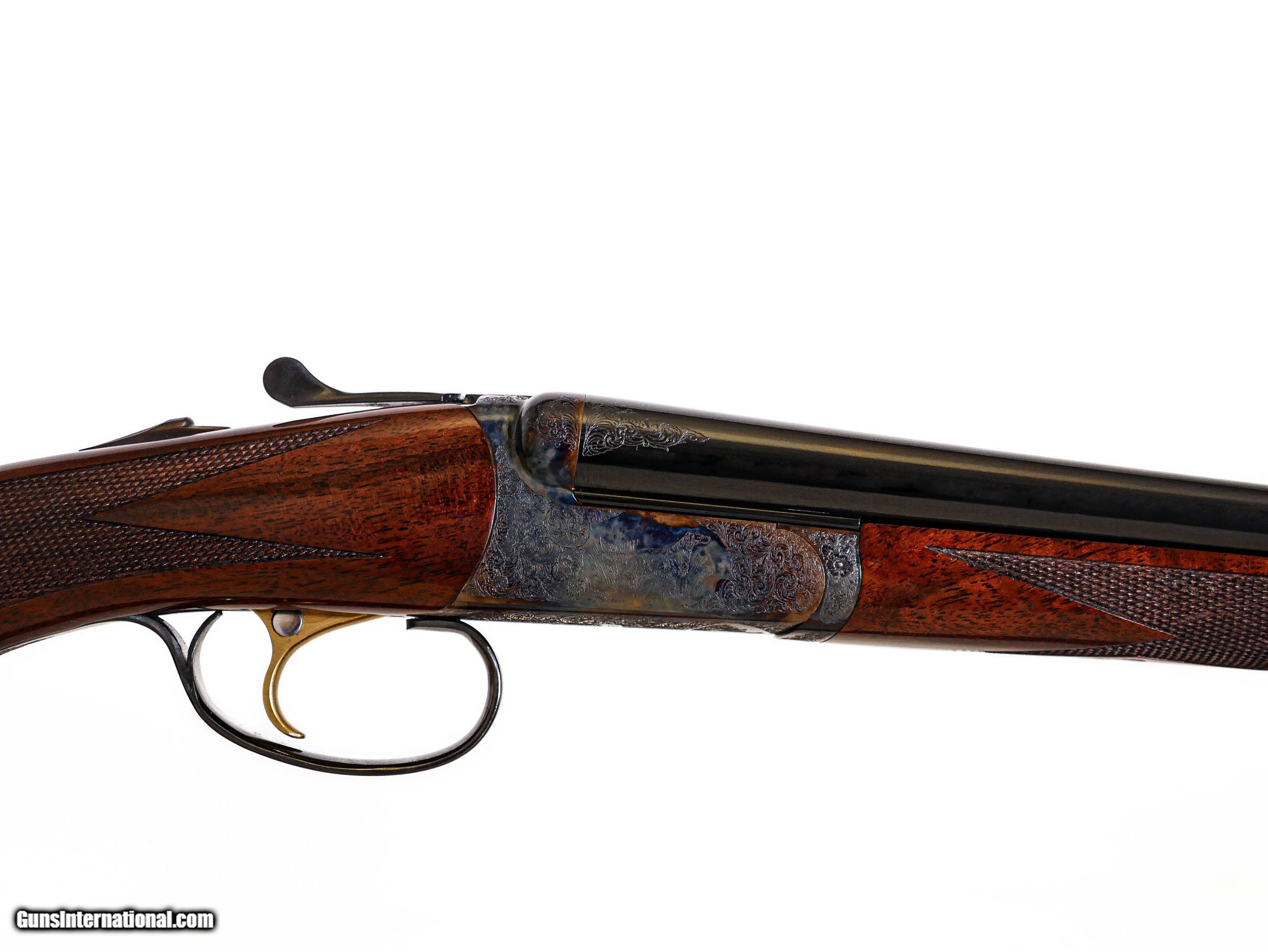 Description: CSMC - RBL, 28ga. 26" Barrels Choked M/F. Chokes can be opened to customer specifications, solid game rib, 4x feathercrotch American black metal capped pistol grip stock, splinter forend, TruOil finish, single selective trigger, automatic ejectors, game scene engraving of pointer, setter, and grouse surrounded by full coverage scroll engraving over spectacular case coloring, factory butt plate, excellent configuration, hand made in the USA by the master gunsmiths of Connecticut Shotgun, available for immediate delivery. Base Price - $4,995.00, Options Include: Exhibition 4x Black Walnut - $600.00, TruOil Finish - $500.00, Single Selective Trigger - $175.00, S & H - $50.00. Inv: 20497 6 lbs. 14 oz. 14 5/8” X 1 ½” X 2 3/8” $6,320.00 SOLD |
