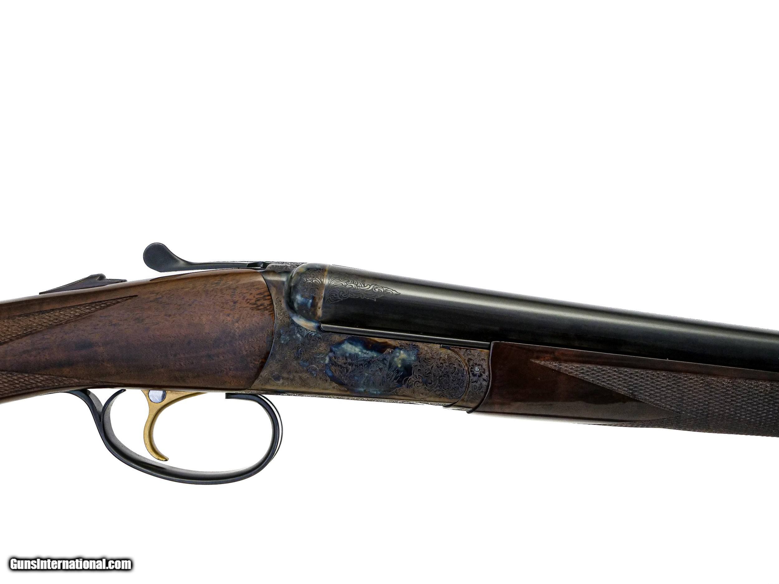 Description: CSMC - RBL, 28ga. 28" Barrels Choked M/F. Chokes can be opened up to the customers specifications, beautiful exhibition full feathercrotch American black walnut straight grip stock, beavertail forend, hard rubber butt plate, single selective trigger, automatic ejectors, automatic safety, solid game rib, TruOil finish, highly detailed pointer, setter, and grouse game vignettes surrounded full coverage scroll engraving over a traditional bone and charcoal case coloring, 100% new and unfired, available for immediate delivery. Base Price - $4,995,00, Options include: Exhibition Wood - $900.00, Beavertail Forend - $175.00, Single Selective Trigger - $175.00, TruOil Finish - $500.00, S&H - $50.00. Inv: 19914 5 lbs. 12 oz. 14 ¾” x 1 ¾” x 2 ½” $6,795.00 SOLD |