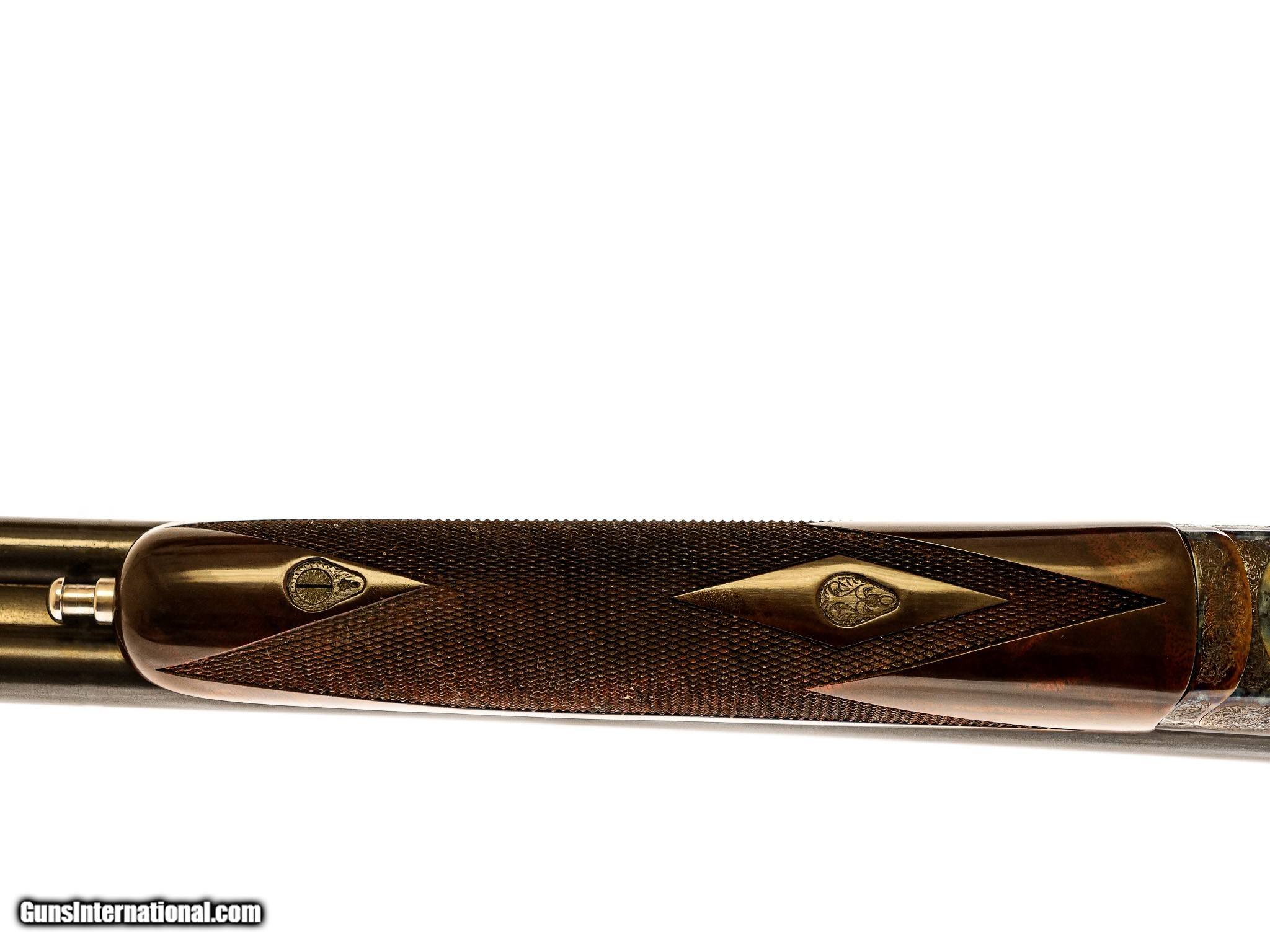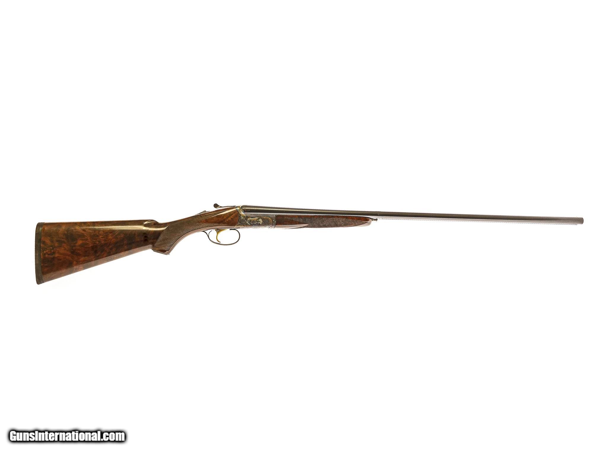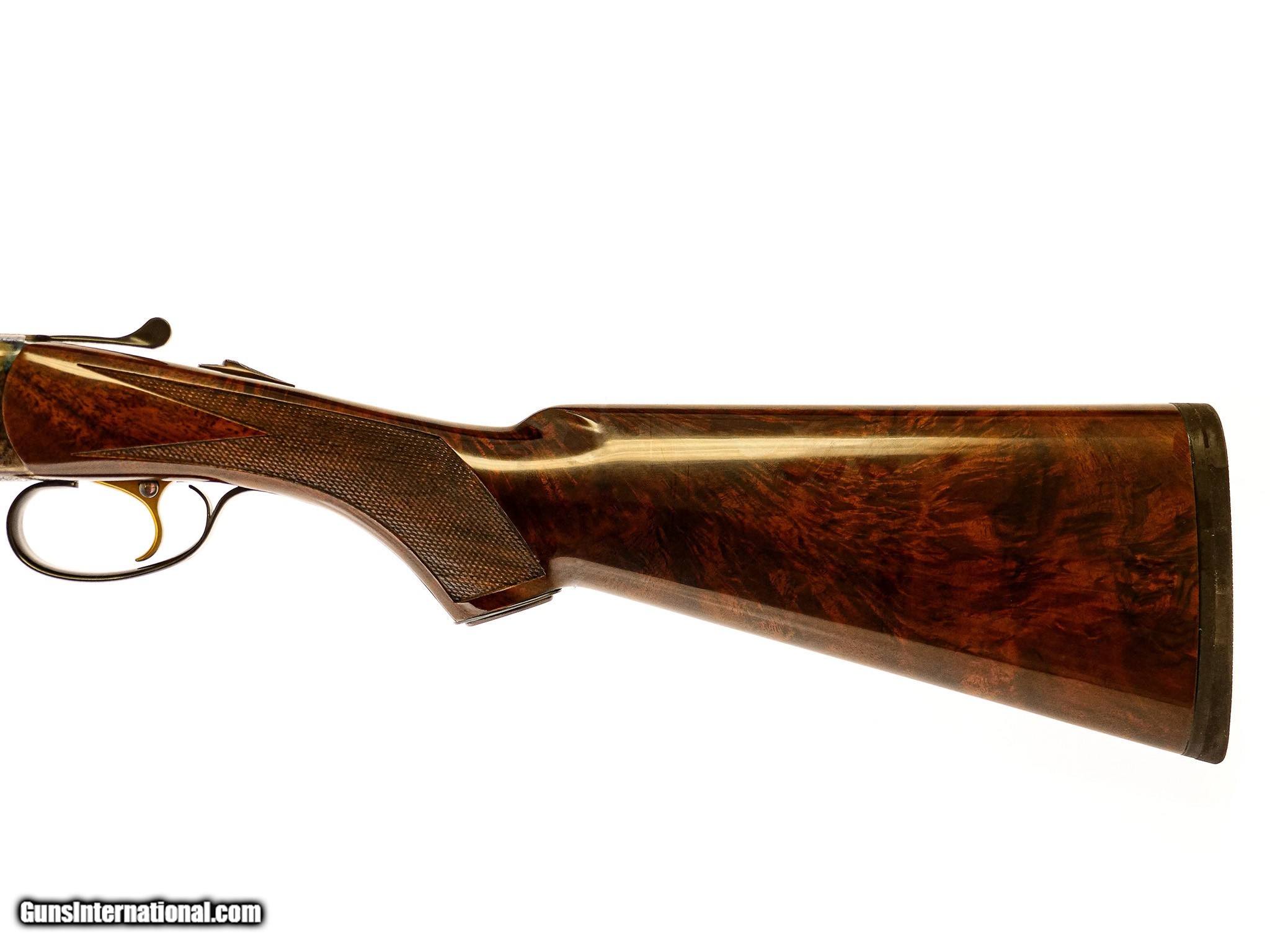 Description: CSMC - RBL, 28ga. 28" Barrels Choked M/F. Which can be opened to customer specifications, solid game rib, beautiful exhibition feathercrotch American black walnut metal capped pistol grip stock, splinter forend, TruOil finish, gold single trigger, automatic ejectors, game scene engraving of pointer, setter, and quail surrounded by full coverage ornamental miniature scroll engraving over spectacular case coloring, factory recoil pad, 100% excellent configuration, hand made in the USA by the master gunsmiths of Connecticut Shotgun, available for immediate delivery. Base Price - $5,250.00, Options Include: Exhibition American Black Walnut - $900.00, Single Selective Trigger - $175.00, TruOil Fnish - $500.00, S & H - $50.00. Inv: 20440 5 lbs. 10 oz. 14 ½” X 1 ½” X 2 ¼” $6,875.00 SOLD |