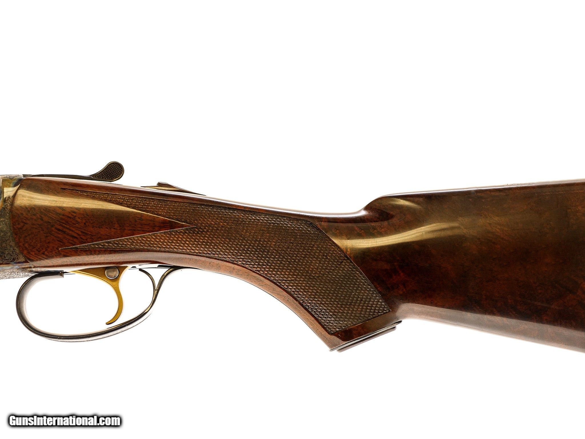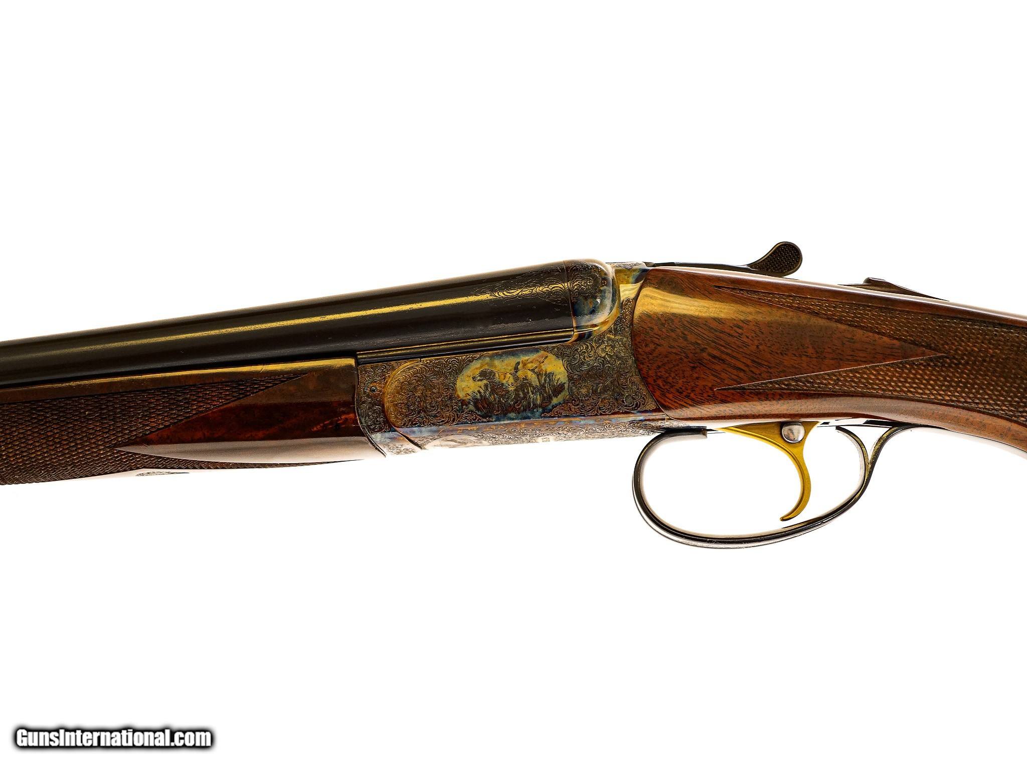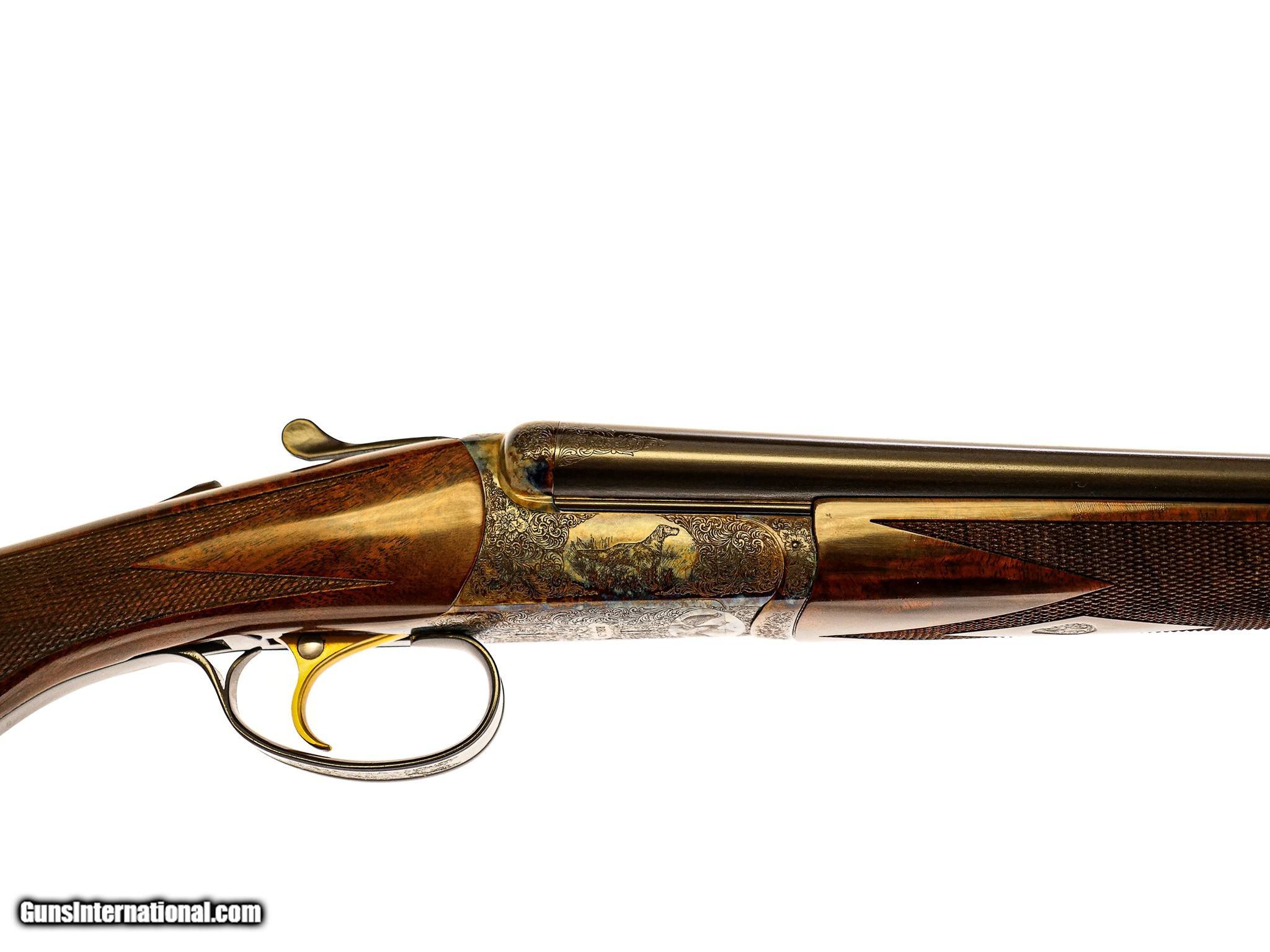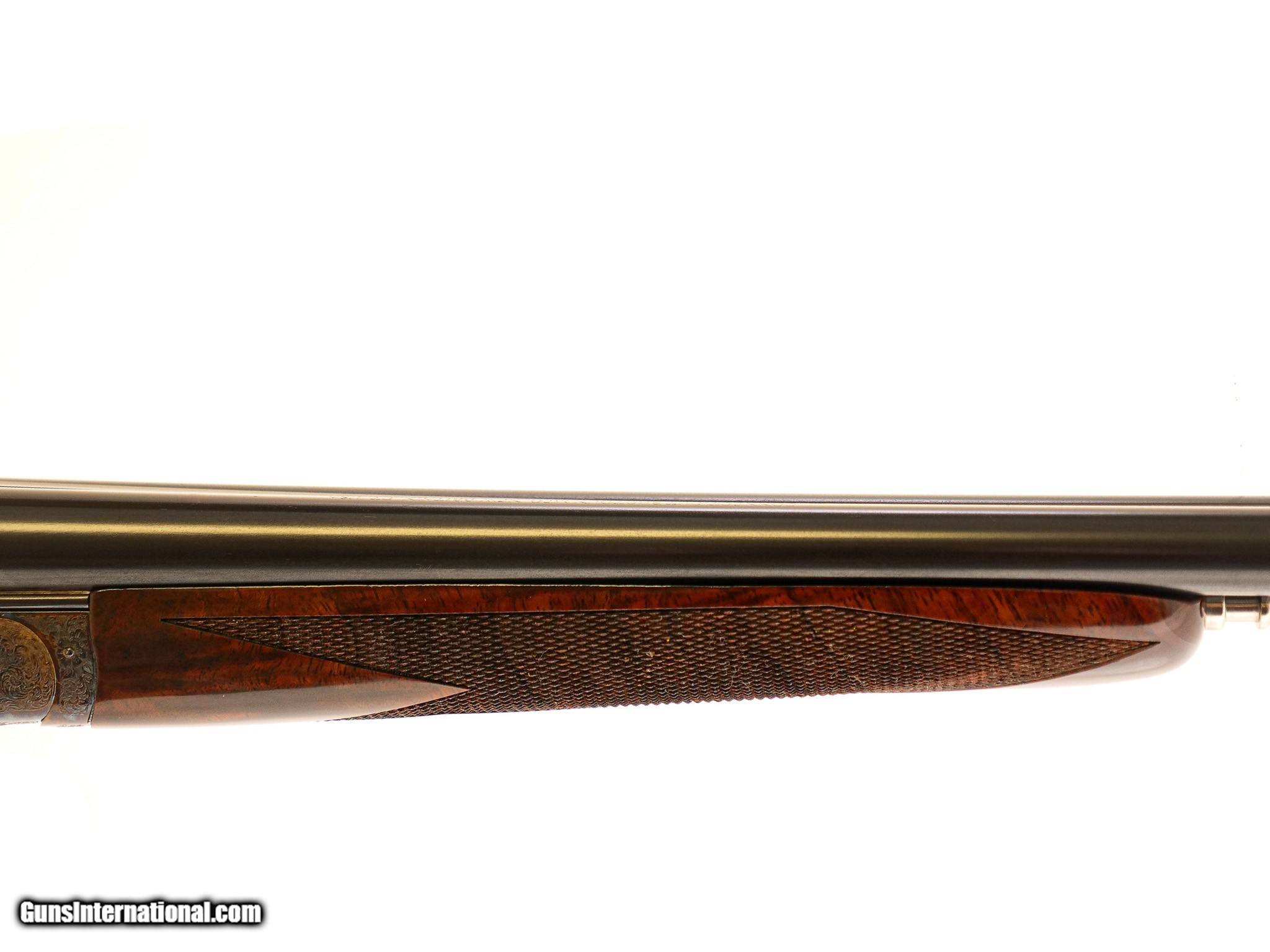 Description: CSMC - RBL, 28ga. 28" Barrels Choked M/F. Which can be opened to customer specifications, solid game rib, beautiful exhibition feathercrotch American black walnut metal capped pistol grip stock, splinter forend, TruOil finish, gold single trigger, automatic ejectors, game scene engraving of pointer, setter, and quail surrounded by full coverage ornamental miniature scroll engraving over spectacular case coloring, factory recoil pad, 100% excellent configuration, hand made in the USA by the master gunsmiths of Connecticut Shotgun, available for immediate delivery. Base Price - $5,250.00, Options Include: Exhibition American Black Walnut - $900.00, Single Selective Trigger - $175.00, TruOil Fnish - $500.00, S & H - $50.00. Inv: 20440 5 lbs. 10 oz. 14 ½” X 1 ½” X 2 ¼” $6,875.00 SOLD |