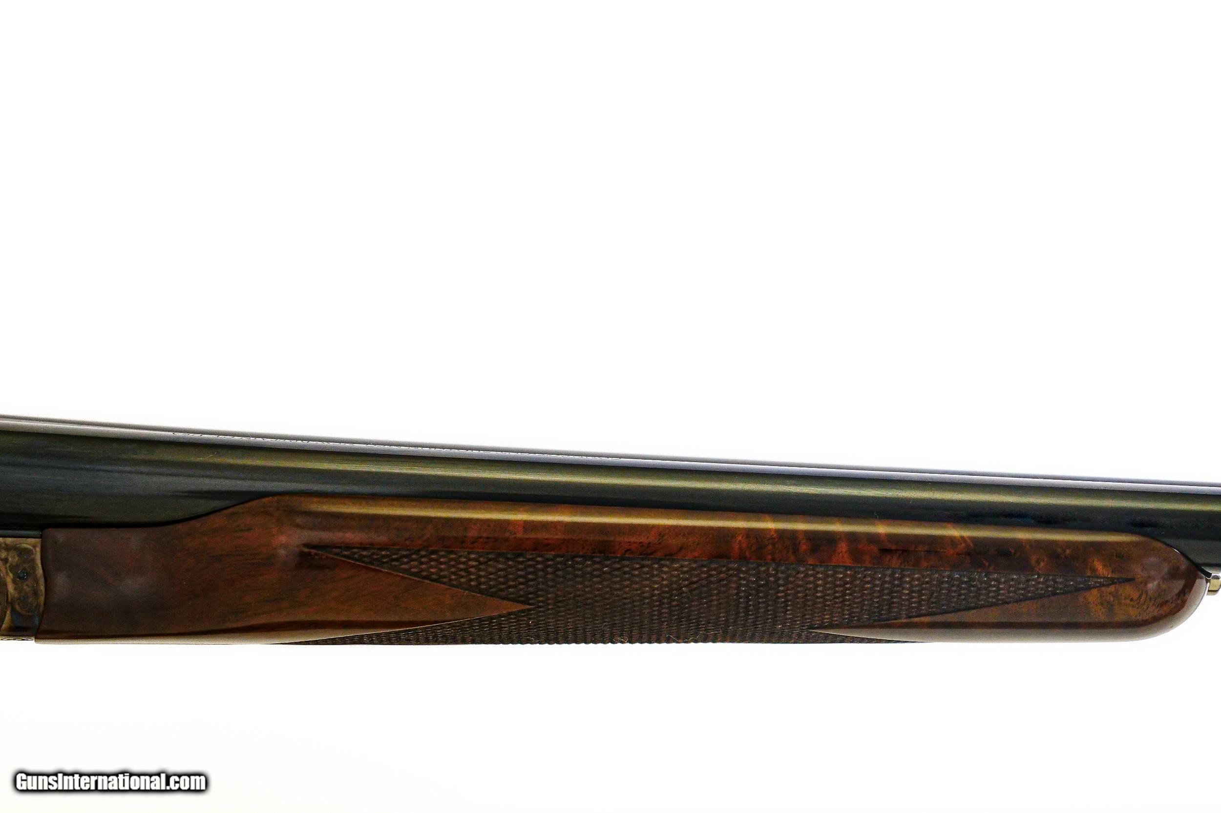 Description: CSMC - RBL, Launch Edition, 20ga. 28” Barrels with Screw-in Choke Tubes. Solid game rib, stunning full feathercrotch exhibition American black walnut metal capped pistol grip stock, Beavertail forend, TruOil finish, factory screw-in choke tubes, single selective trigger, automatic ejectors, full coverage ornamental scroll engraving over spectacular case coloring, factory serrated butt plate, 100% great configuration, hand made in the USA by the master gunsmiths of Connecticut Shotgun, available for immediate delivery. Base Price - $4,250.00, Options Include: Beavertail Forend - $175.00, Single Selective Trigger - $175.00, Exhibition Wood - $900.00, TruOil Finish - $500.00, S & H - $50.00. Inv: 18625 6 lbs. 6 oz. 14 ¾” X 1 ½” X 2 3/8” $6,050.00 SOLD |