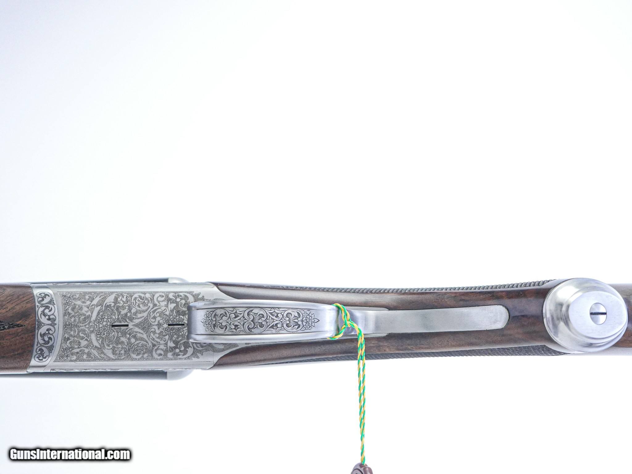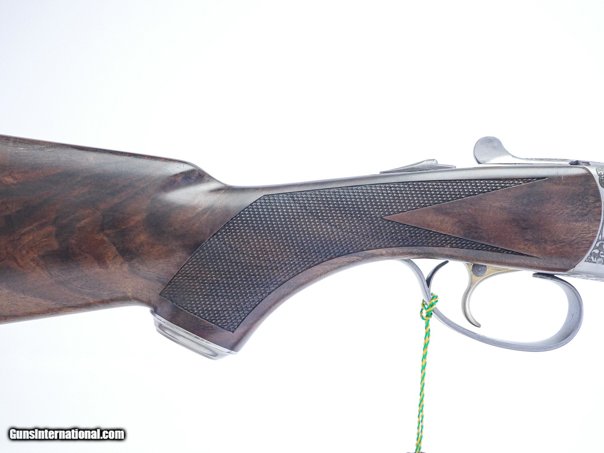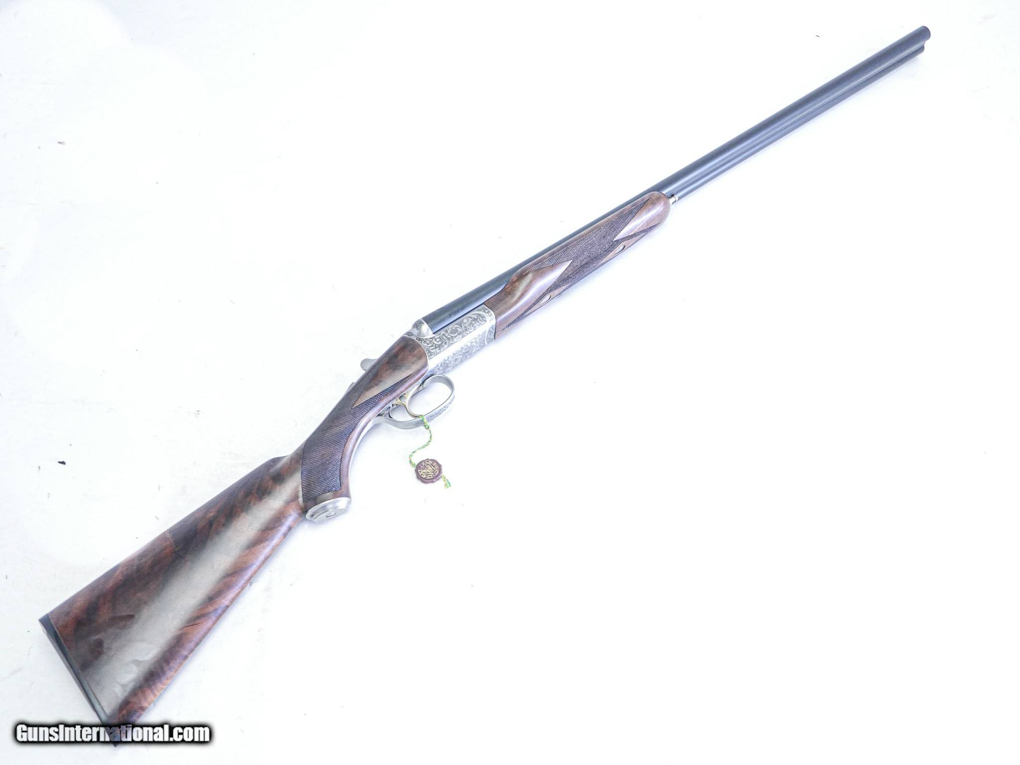 Description: CSMC - RBL, Launch Edition, 20ga. 28" Barrels. With screw-in hidden choke tubes, beautiful full feathercrotch exhibition American black walnut metal capped pistol grip stock, factory butt plate, beavertail forend, single selective trigger, automatic ejectors, London oil finish, solid game rib, full coverage ornamental scroll engraving pattern over a nitride finish, assisted opening, this gun is based on the time proven Anson & Deeley action and is proudly made in the United States by the master gunsmiths at Connecticut Shotgun Mfg. Co., the very best workmanship throughout , available for immediate delivery, trades welcomed. Base Price - $3,795.00, Options Include: Exhibition Wood - $900.00, Assisted Opener - $450.00, SST - $175.00, Beavertail Forend - $175.00, S & H - $50.00. Inv: 49515 6 lbs. 4 oz. 14 ¼” x 1 ½” x 2 1/4” $5,370.00 SOLD |