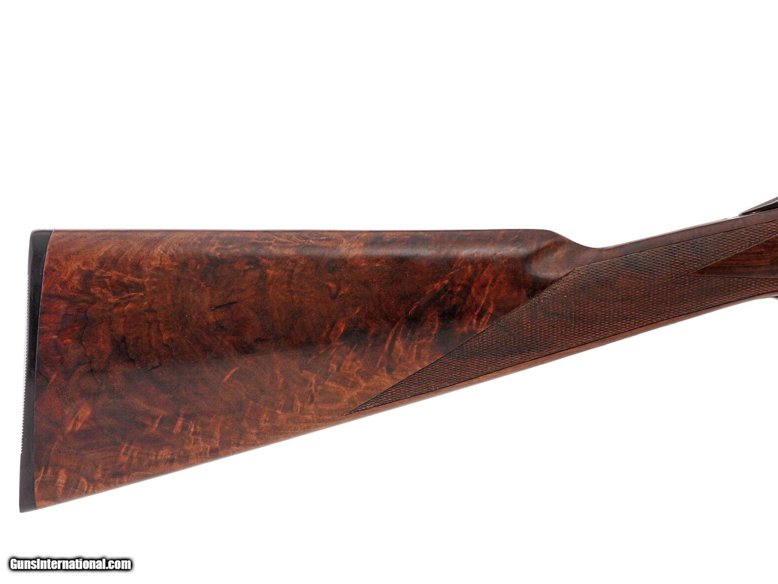 Description: CSMC - RBL - Launch Edition, 20ga. 28" Barrels. Hidden screw-in choke tubes, beautiful exhibition full feathercrotch American black walnut straight grip stock with a spliter forend, oil finish, gold double triggers, automatic ejectors, solid game rib, full coverage engraved receiver over bone & charcoal case coloring, ideal configuration 6 lbs. 0 oz. Base Price - $3,795.00, Options Include: Exhibition Wood - $900.00, Assisted Opener - $450.00, S & H - $50.00, available for immediate delivery, includes makers case and accessories. Inv: 50776 6 lbs. 0 oz. 14 3/4" x 1 1/2" x 2" $5,195.00 SOLD |