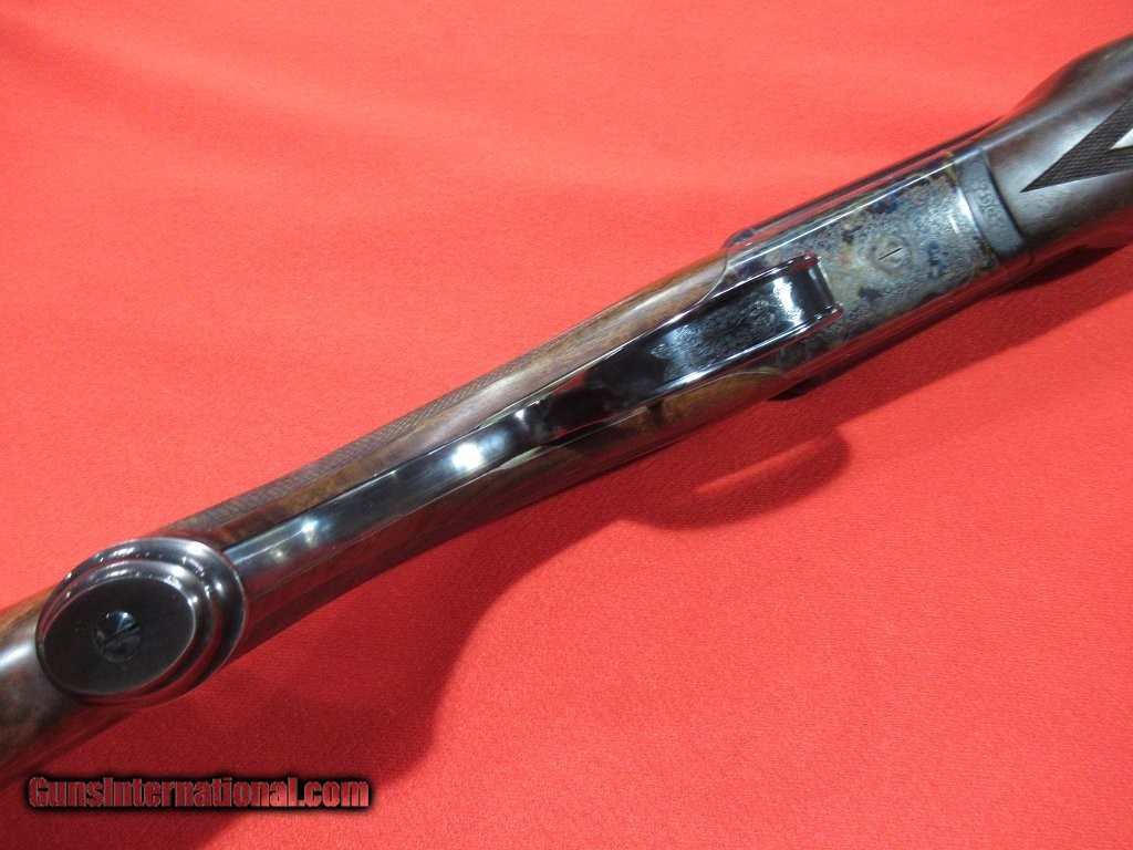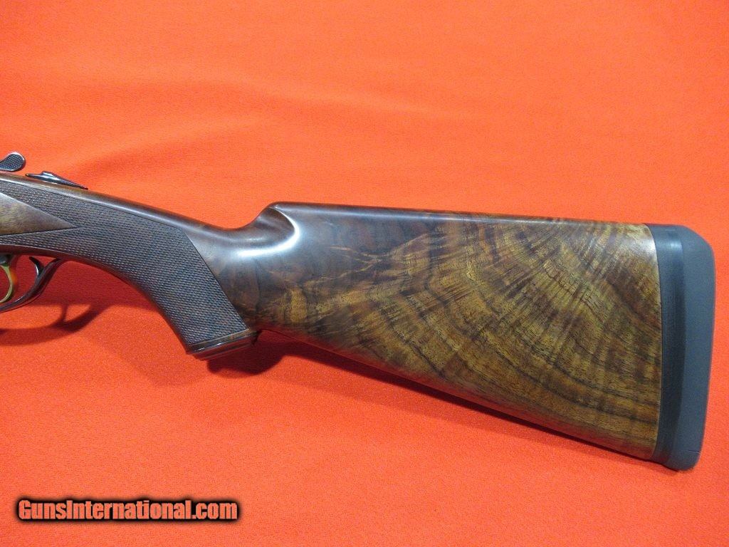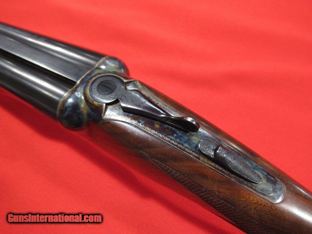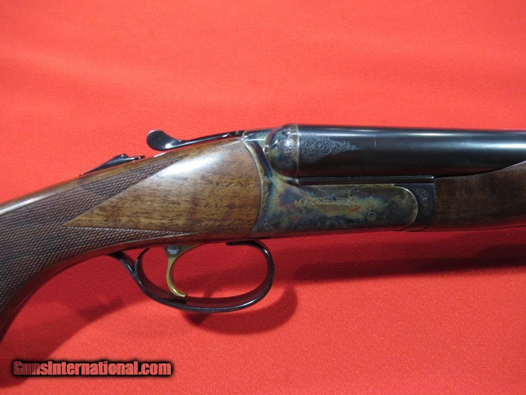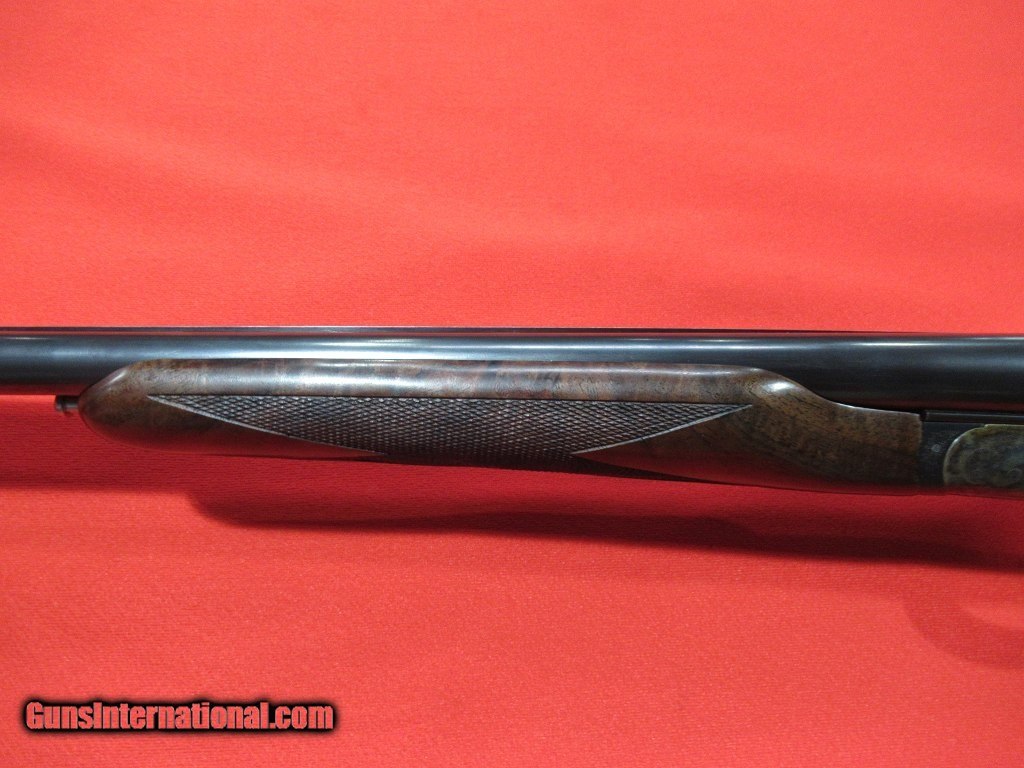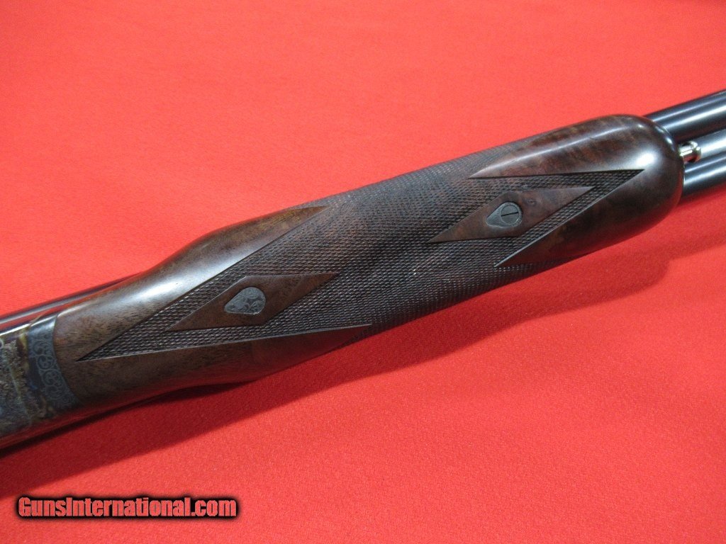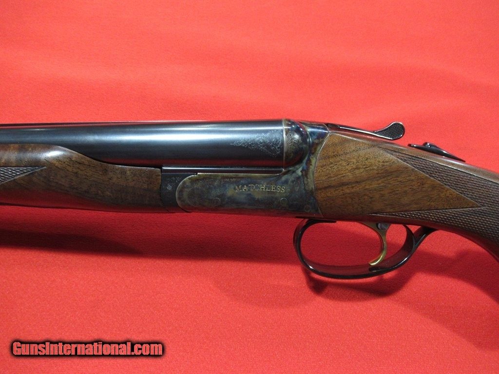 Description: Case colored frame with floral engraving and "MATCHLESS" engraved on both sides of the receiver, nicely figured walnut stock with pistol grip and beavertail forearm, manual safety, selective trigger, ventilated rib, case colored, oil finished stock that measures 1 1/2" x 2 1/2" x 14 7/8". Choked IC/Mod. LEFT-HAND stock. SOLD |