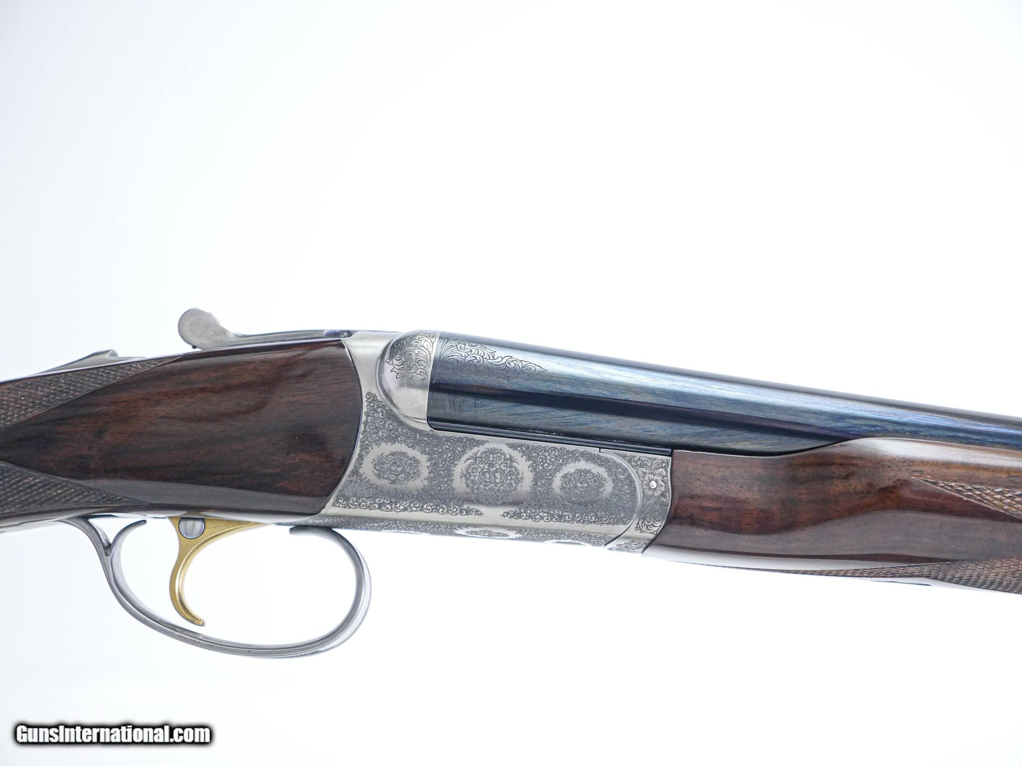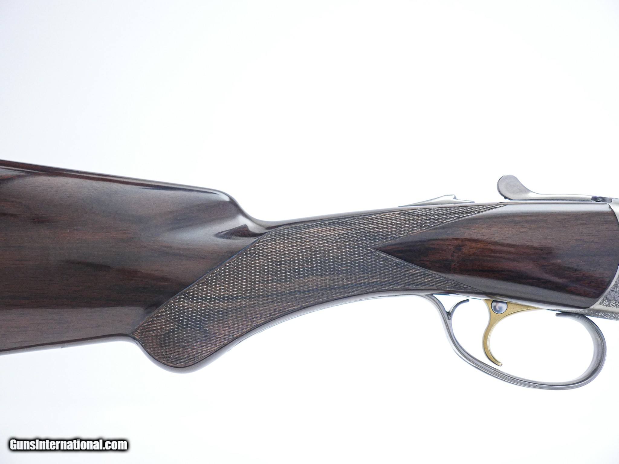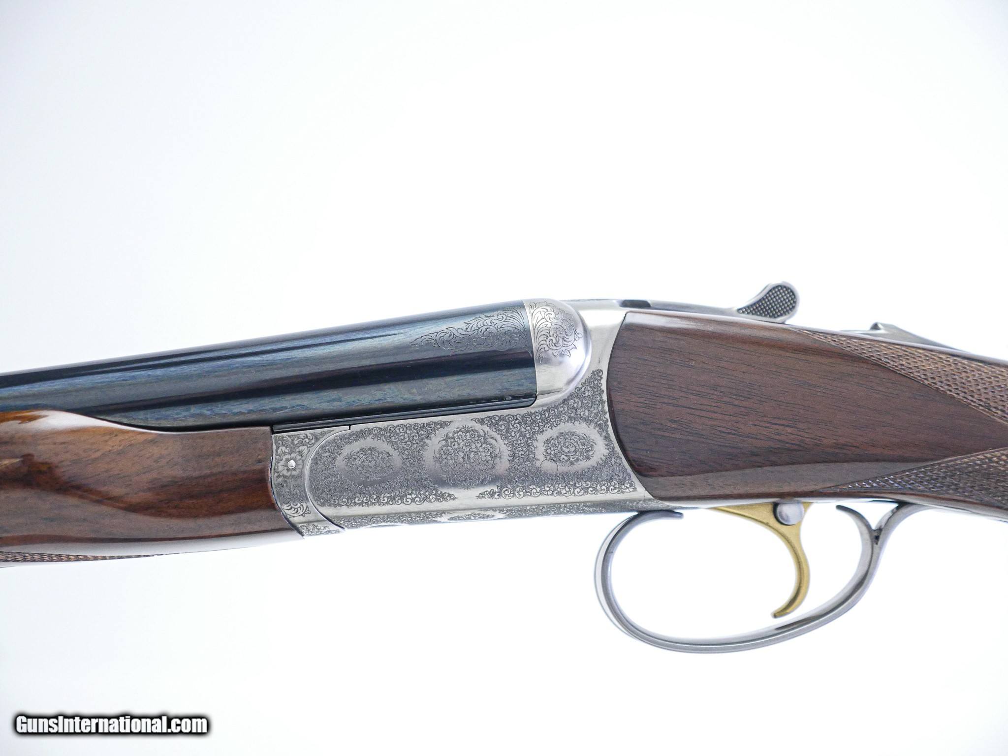 Description: CSMC - RBL, Reserve Edition, 20ga. 28" Barrels. With hidden screw-in choke tubes, 2x European walnut round knob pistol grip stock, checkered butt, Truoil finish, beavertail forend, gold single selective trigger, automatic ejectors, solid game rib, full coverage miniature rose bouquet and delicate scroll engraving, coin finish. Base Price - $3,795.00, Options Include: Checkered Butt - $600.00, SST - $175.00, Beavertail - $175.00, TruOil Finish - $500.00, S & H - $50.00. Made in the USA by the highly skilled CSMC gunsmiths, 100% new and unfired available for immediate delivery. Inv: 19675 6 lbs. 0 oz. 14 3/8” x 1 1/2” x 2 1/4” $5,295.00 SOLD |