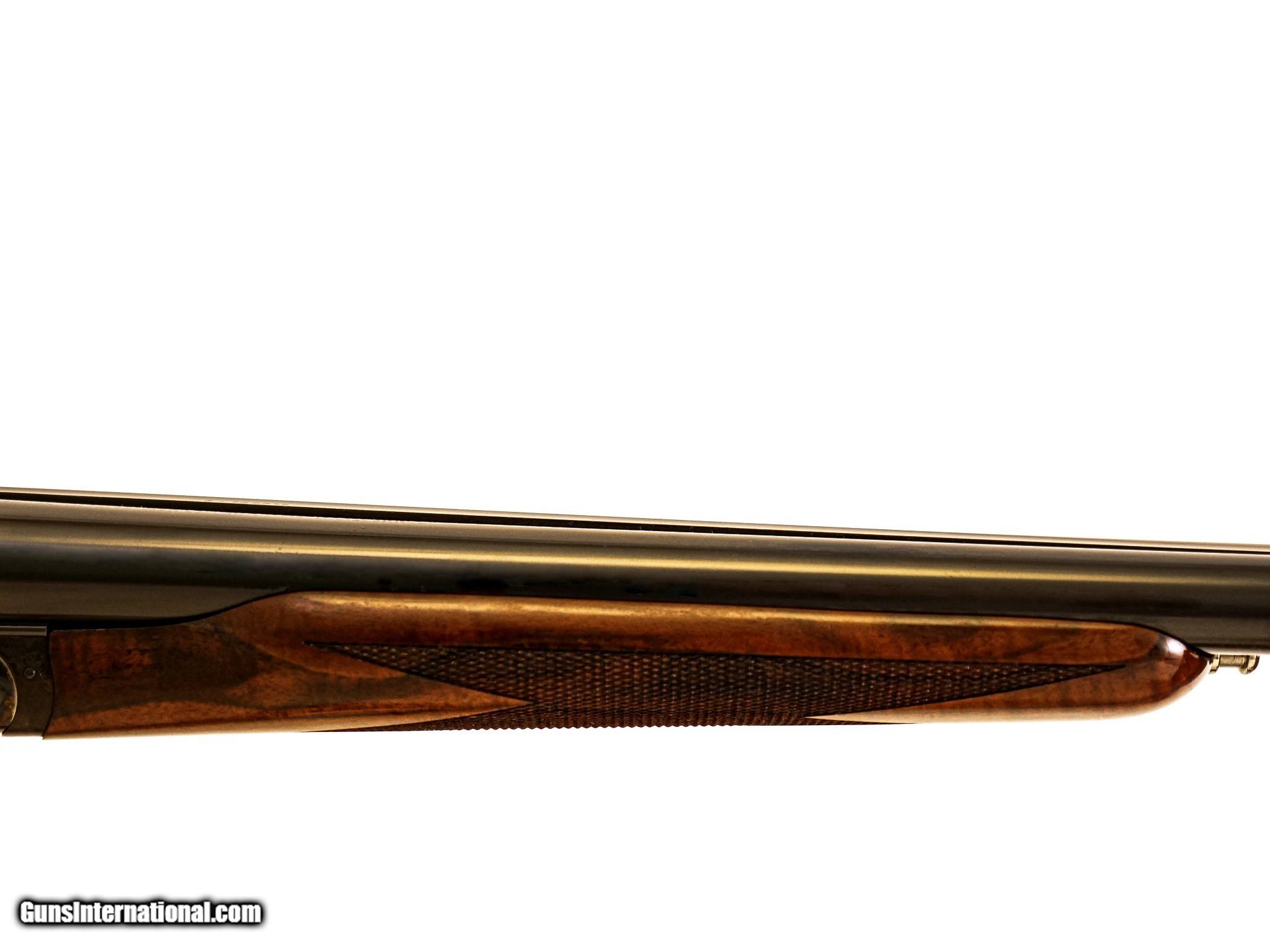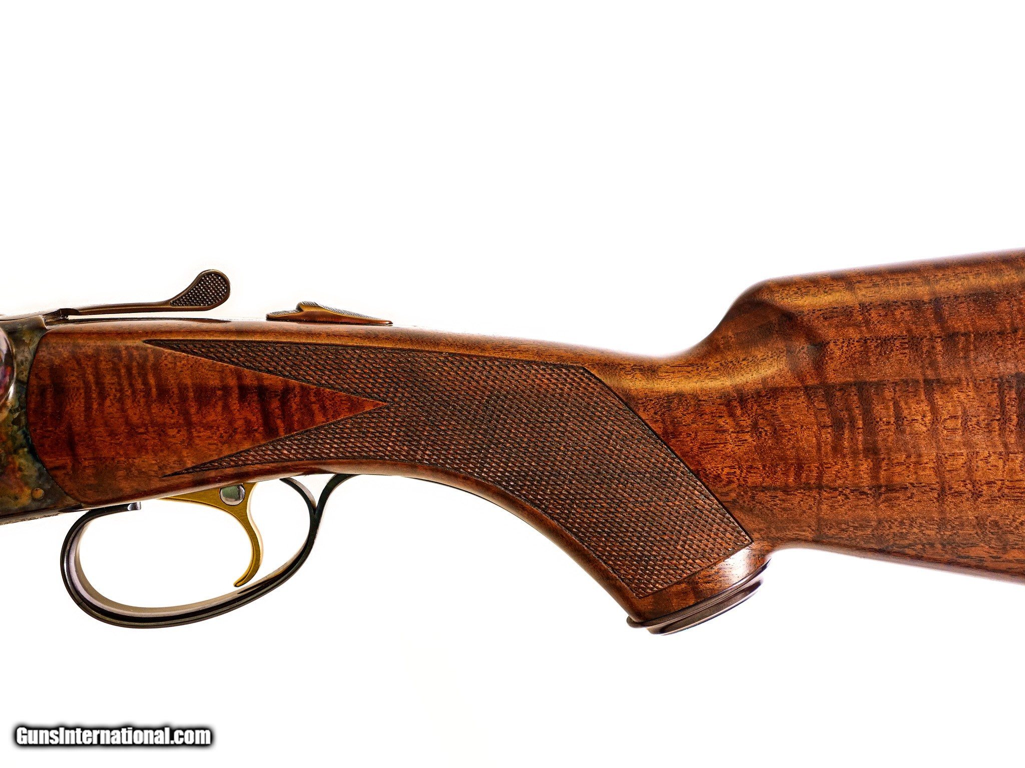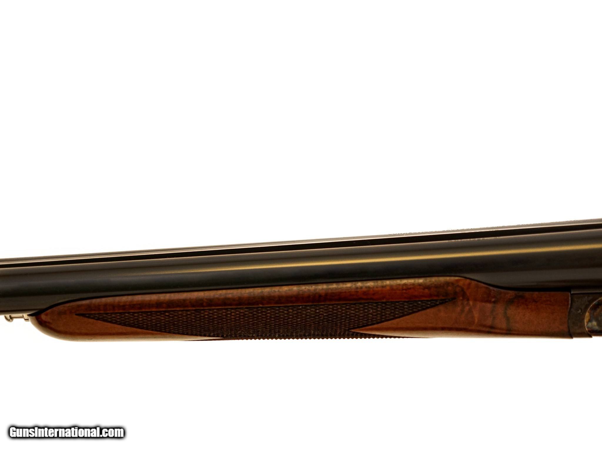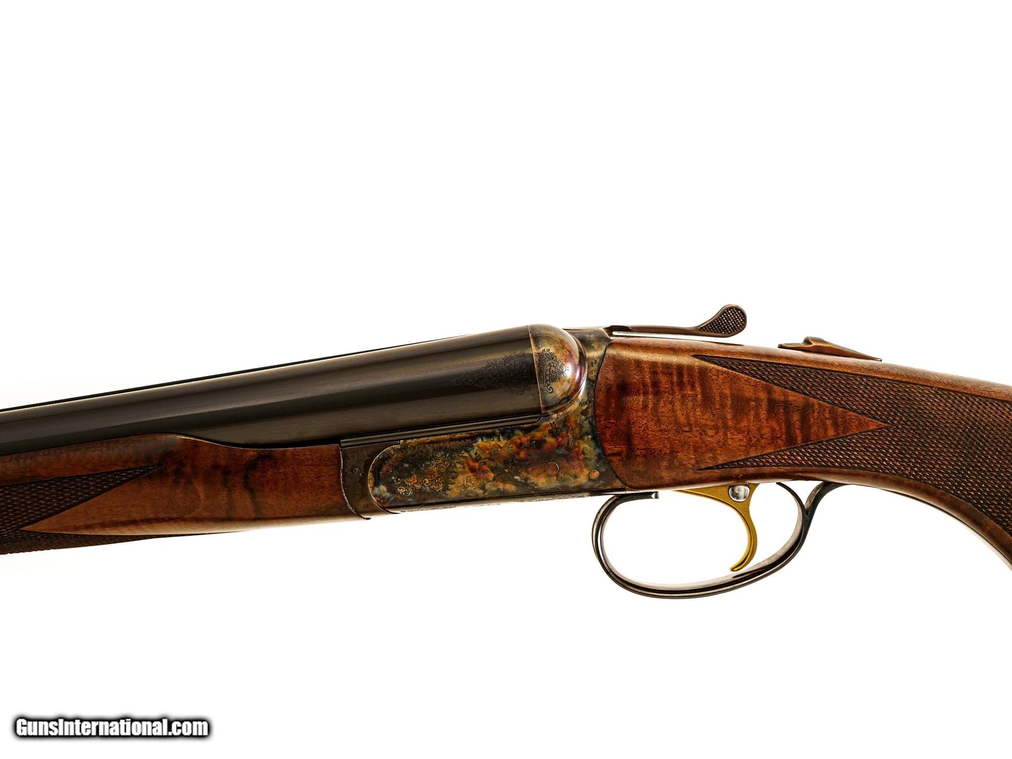 Description: CSMC - RBL, SxS, 12ga. 30” Barrels with Screw-in Choke Tubes. Solid game rib, metal capped, long tang pistol gripped stock, beavertail forend, London oil finish, single selective trigger, factory recoil pad, automatic ejectors, game scene engraving featuring highly detailed cock pheasants and ducks surrounded by full coverage scroll over a bone and charcoal case color finish, 100% new gun, handmade in the USA by master gunsmiths at Connecticut shotgun, available for immediate delivery. Base Price - $4,250.00, Options Include: Beavertail Forend - $175.00, Single Selective Trigger - $175.00, 3x American Black Walnut - $350.00, S & H - $50.00. Inv: 51971 8 lbs. 4 oz. 14 ¼" x 1 ½" x 2 ½" $5,000.00 SOLD |