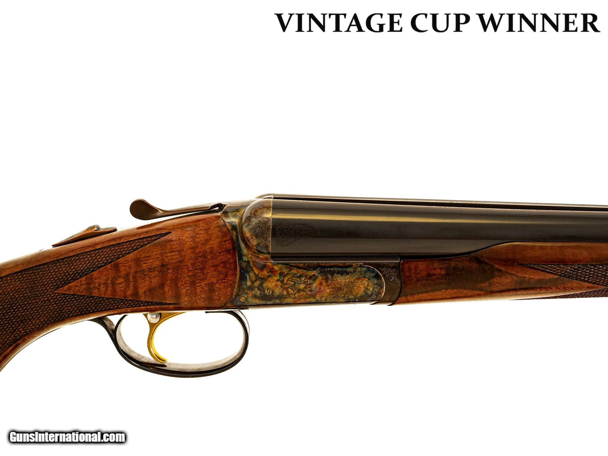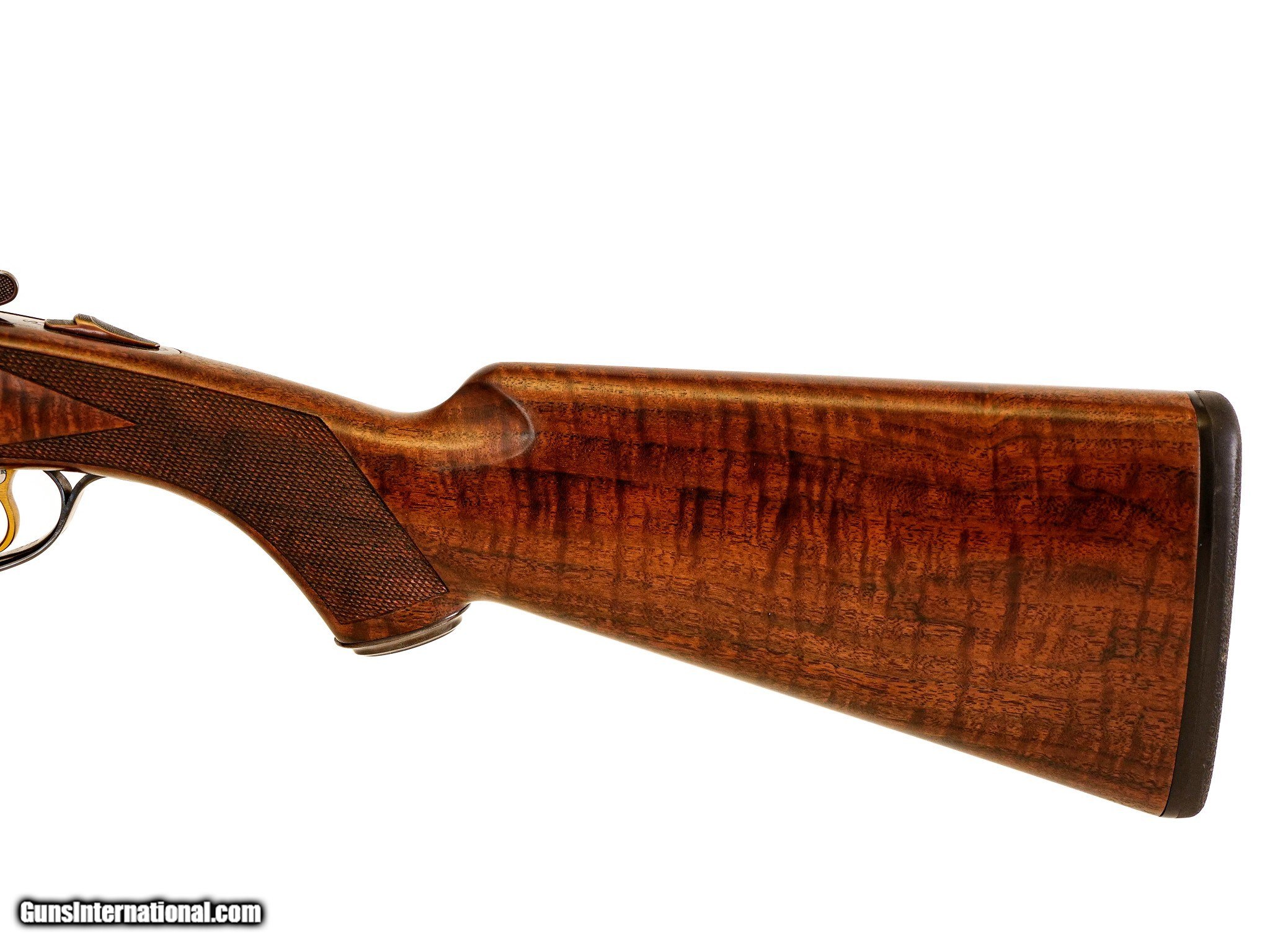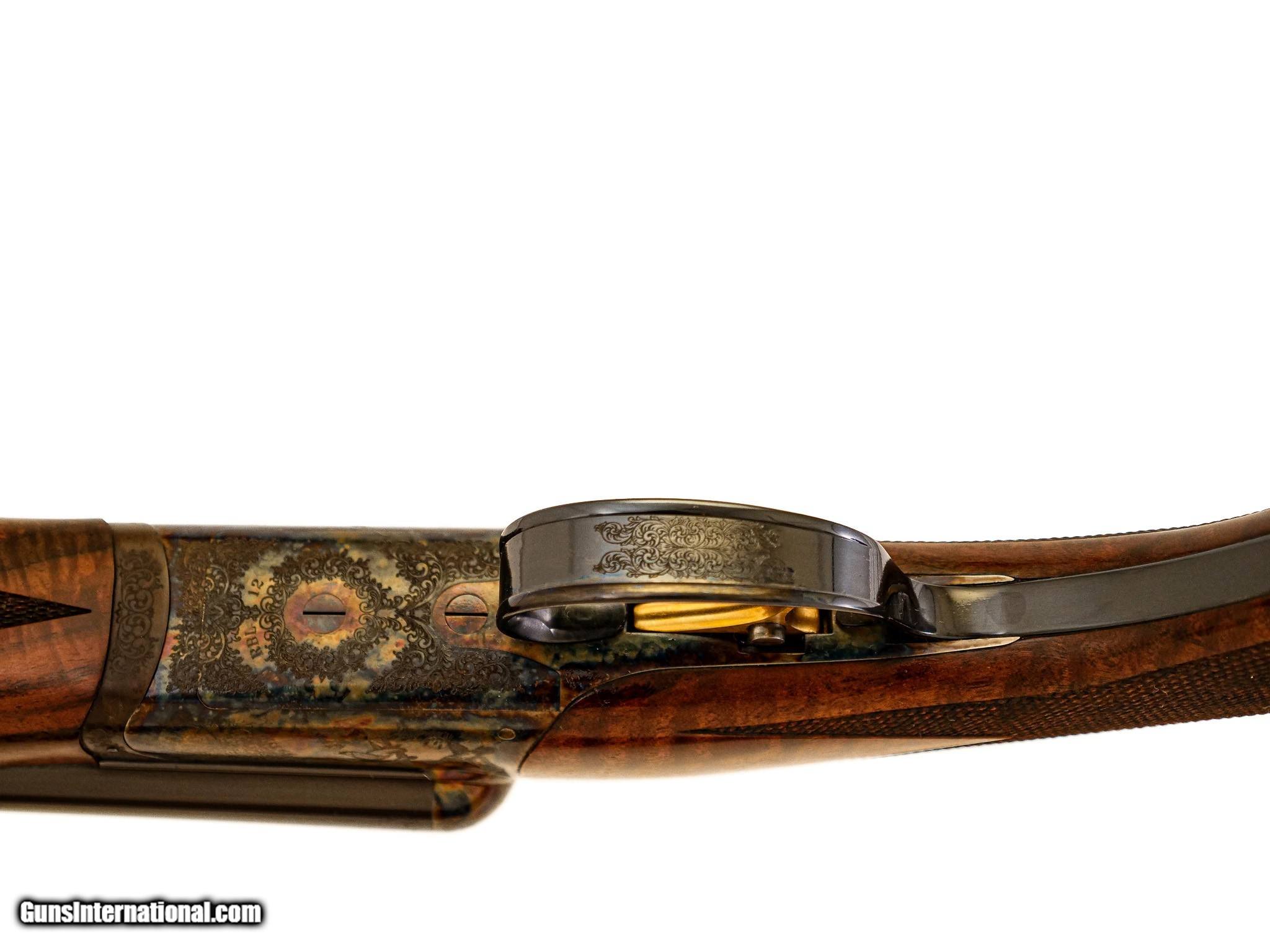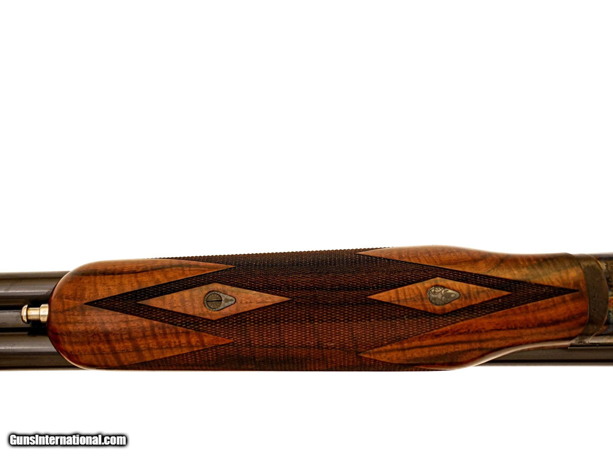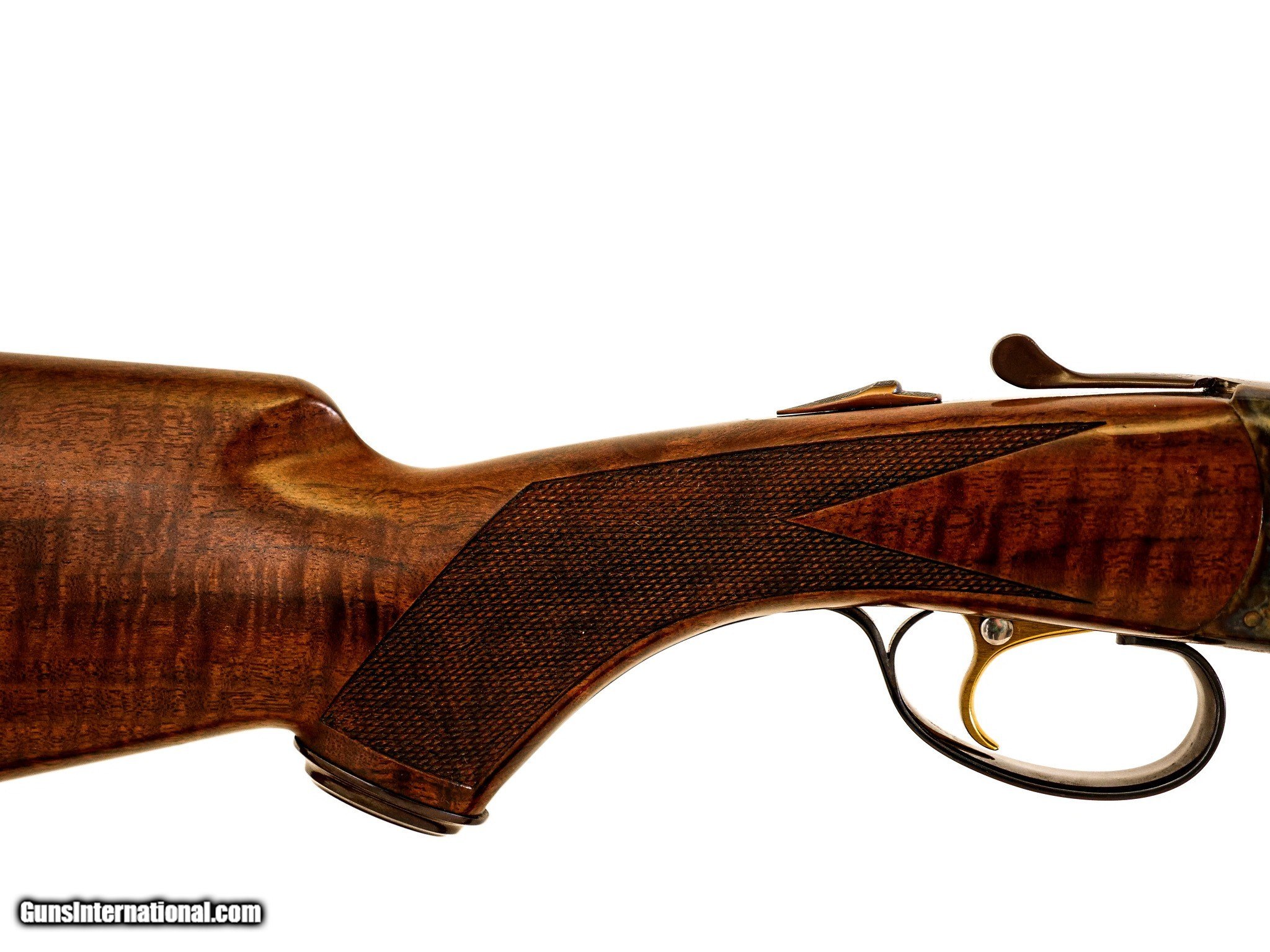 Description: CSMC - RBL, SxS, 12ga. 30” Barrels with Screw-in Choke Tubes. Solid game rib, metal capped, long tang pistol gripped stock, beavertail forend, London oil finish, single selective trigger, factory recoil pad, automatic ejectors, game scene engraving featuring highly detailed cock pheasants and ducks surrounded by full coverage scroll over a bone and charcoal case color finish, 100% new gun, handmade in the USA by master gunsmiths at Connecticut shotgun, available for immediate delivery. Base Price - $4,250.00, Options Include: Beavertail Forend - $175.00, Single Selective Trigger - $175.00, 3x American Black Walnut - $350.00, S & H - $50.00. Inv: 51971 8 lbs. 4 oz. 14 ¼" x 1 ½" x 2 ½" $5,000.00 SOLD |