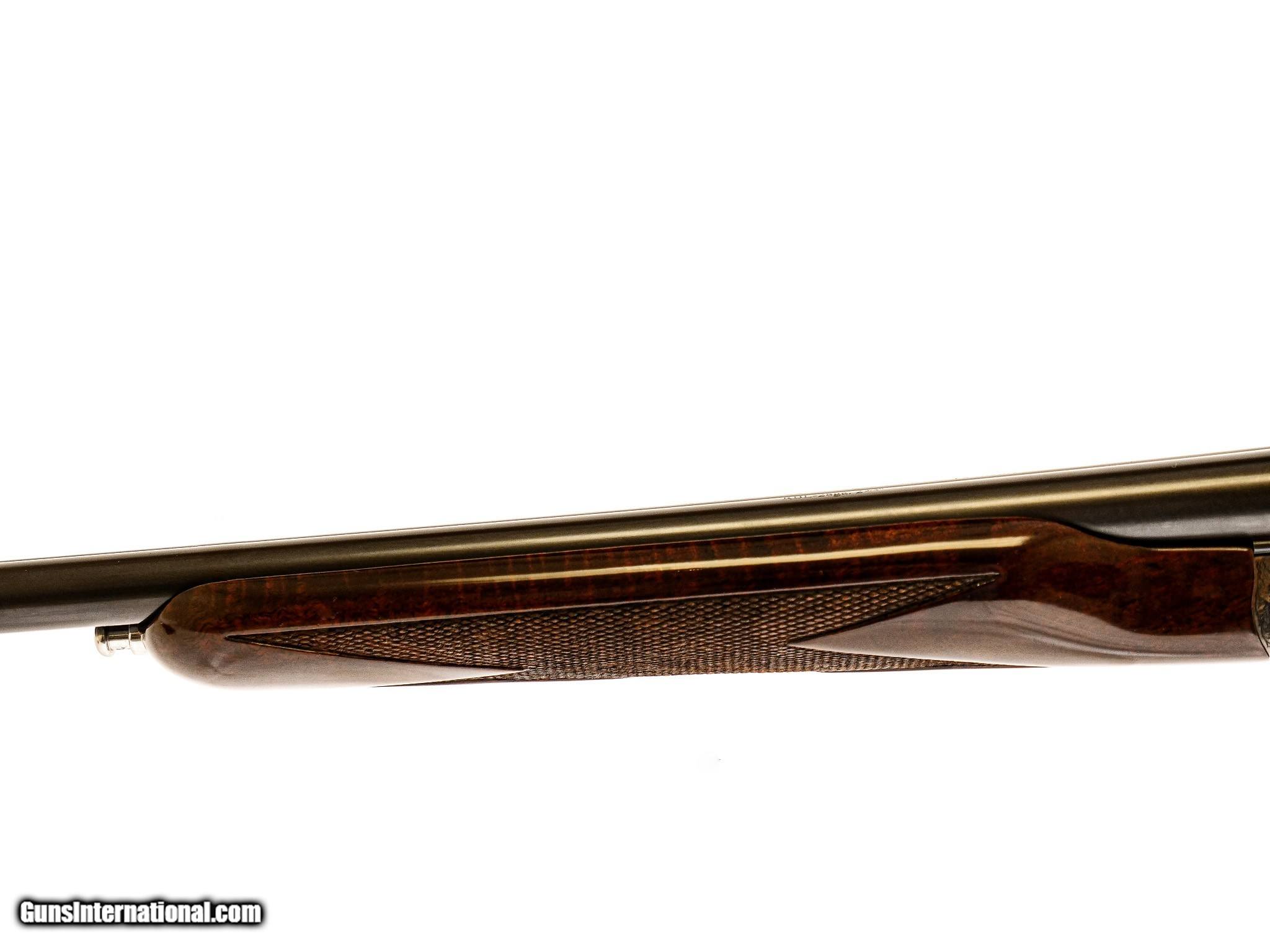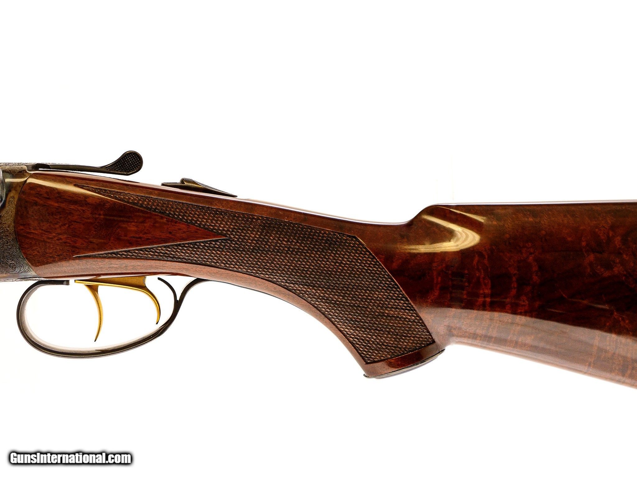 Description: CSMC - RBL, 28ga. 28" Barrels Choked M/F. Chokes which can be opened to customer specifications, solid game rib, beautiful 4x feathercrotch American black walnut long tang metal capped pistol grip stock, Beavertail forend, Truoil oil finish, double triggers, automatic ejectors, beautiful game scene engraving surrounded by full coverage ornamental miniature scroll engraving over beautiful case coloring, factory ¾” recoil pad, 100% factory new gun, hand made in the USA by the master gunsmiths of Connecticut Shotgun, available for immediate delivery. Base Price - $4,995.00, Options Include: 4x American Black Walnut - $600.00, Beavertail Forend - $175.00, TruOil Finish - $500.00, S & H - $50.00. Inv: 20480 5 lbs. 12 oz. 14 ¾” X 1 ½” X 2 3/8” $6,320.00 SOLD |