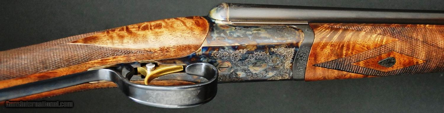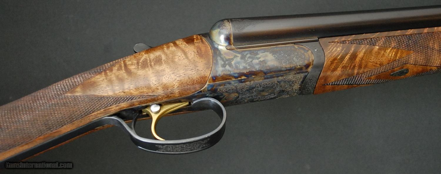 Description: RBL 12 Reserve 12ga. 26” barrels with screw in choke tubes, 3X American black walnut straight grip stock, splinter forend, galazan recoil pad, solid rib, single selective trigger, automatic ejectors, automatic safety, rooster pheasant & ducks in flight surrounded full coverage scroll engraving over spectacular bone & charcoal case coloring, excellent configuration, available for immediate delivery, includes case and accessories. Base price - $3,795.00, options include: 3X wood - $350, SST - $175, S&H - $50.00.