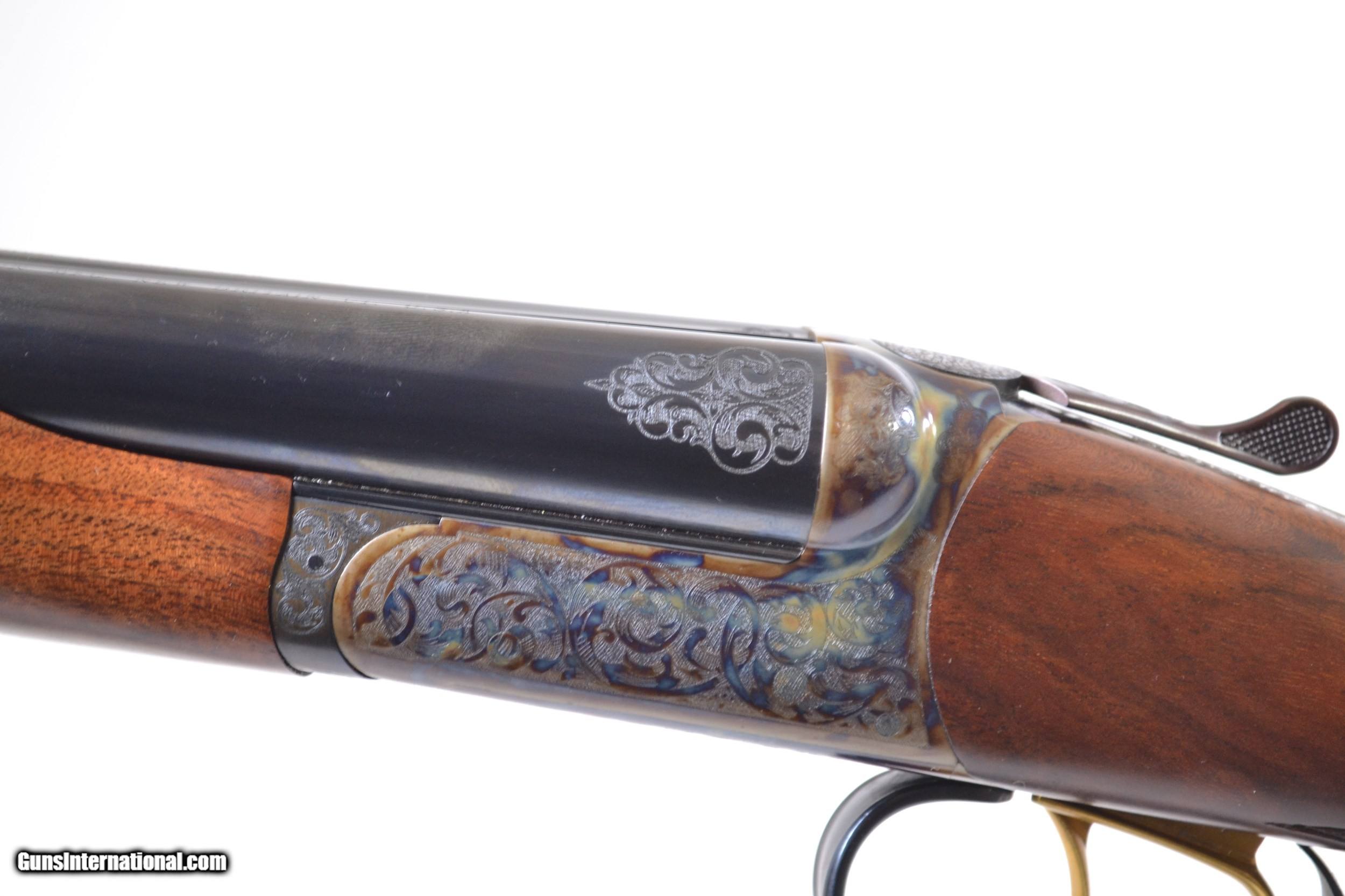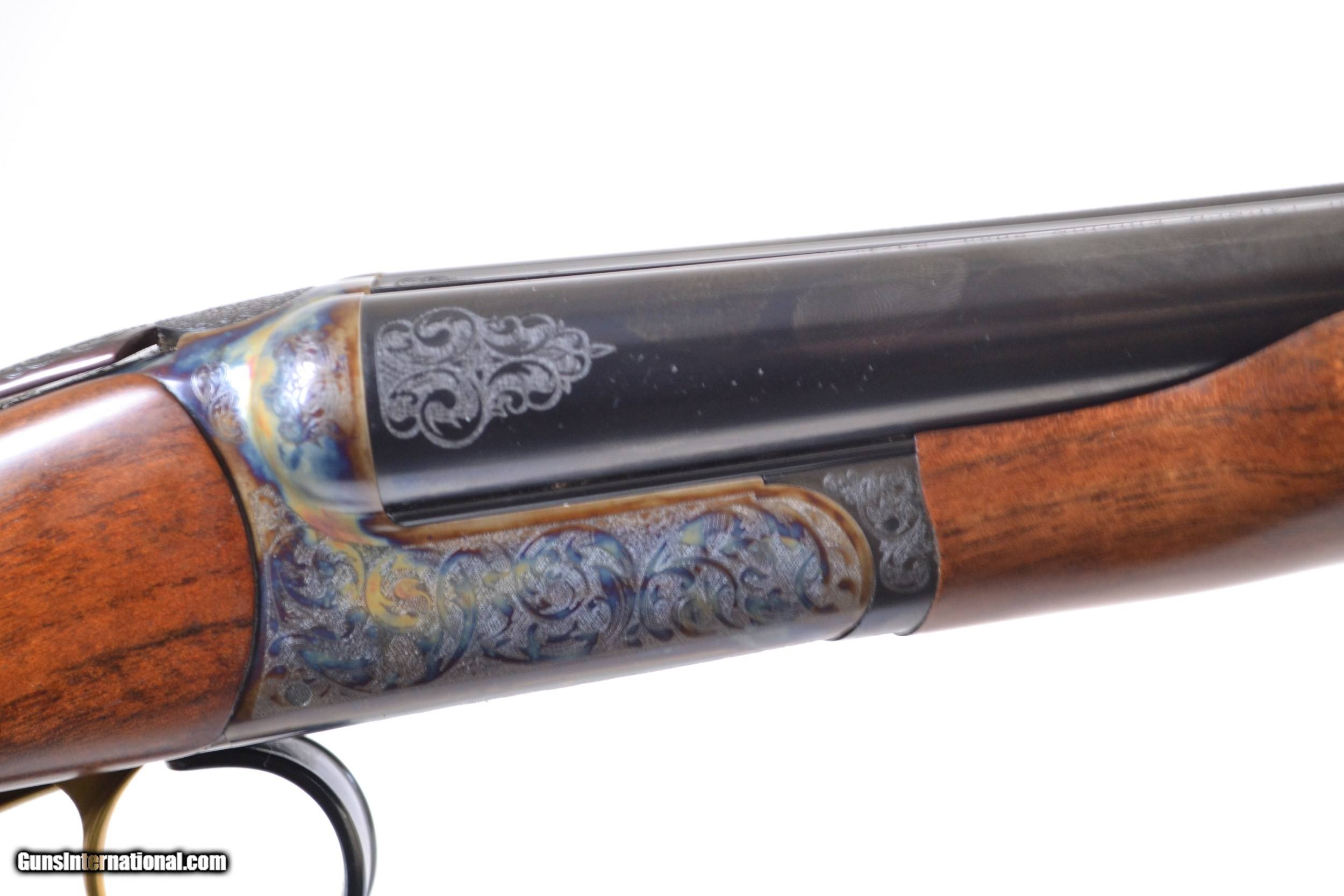 Description: RBL 20 – Launch Edition 20ga., 28” barrels, hidden choke tubes, solid game rib, gorgeous 3x walnut, straight grip stock, long tang, beavertail forend, double trigger, automatic ejectors, automatic safety, magnificent full coverage ornamental engraving over a classic bone and charcoal case coloring, 100% new and unfired available for immediate delivery, includes case, Base price - $3,795.00, options include: 3x wood - $350, assisted opener - $450, beavertail forend - $175, S&H - $50.00. 6lbs. 2oz. 14 ¼” x 1 ½” x 2 3/8” $4,820.00 SOLD |