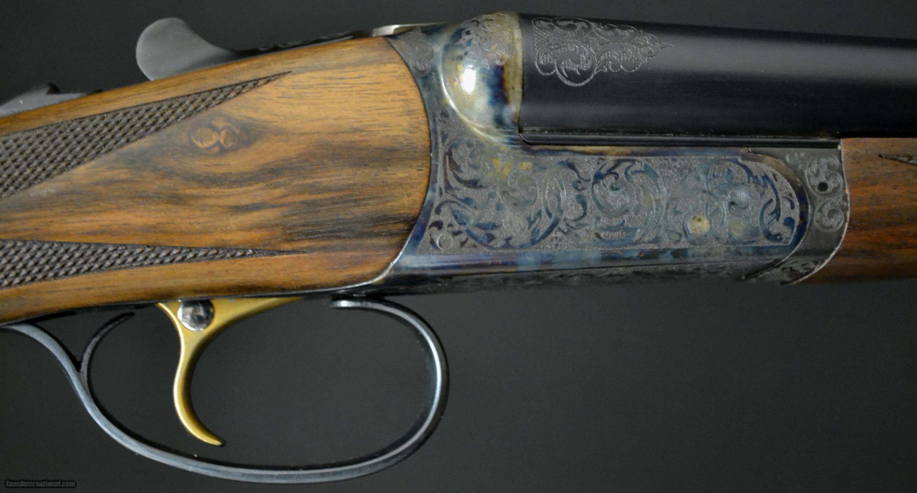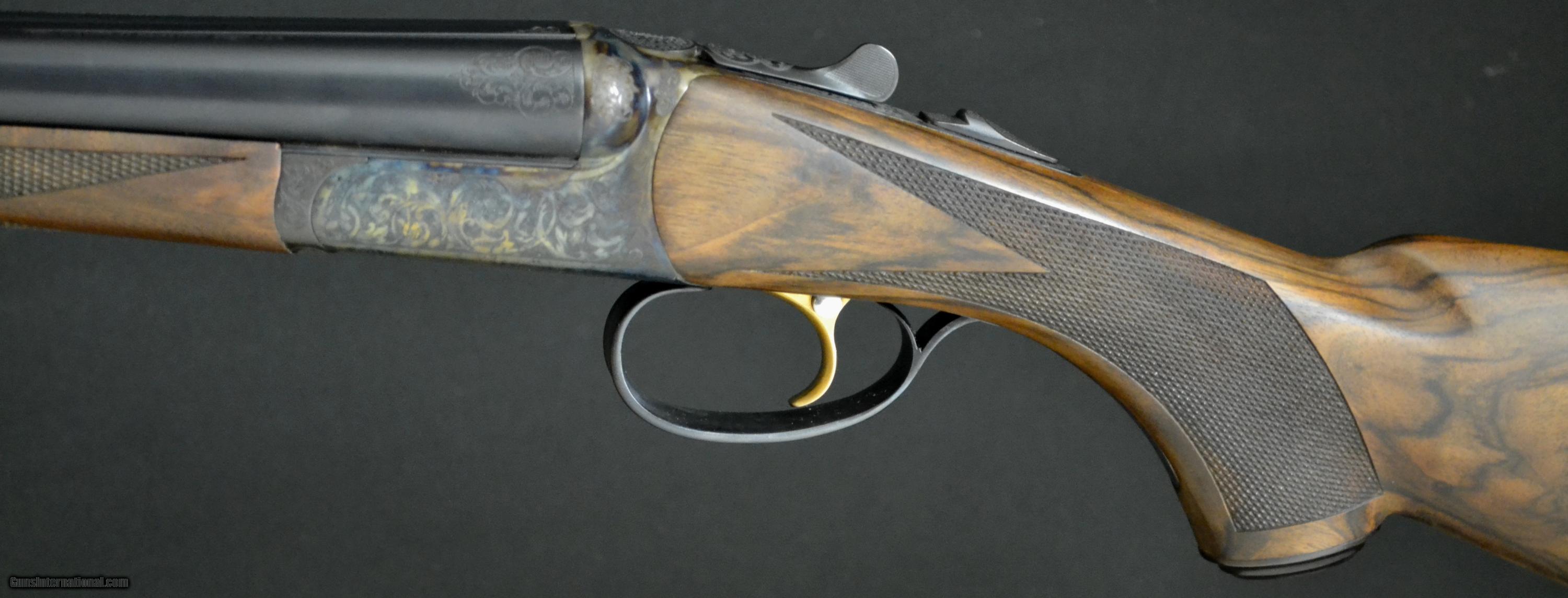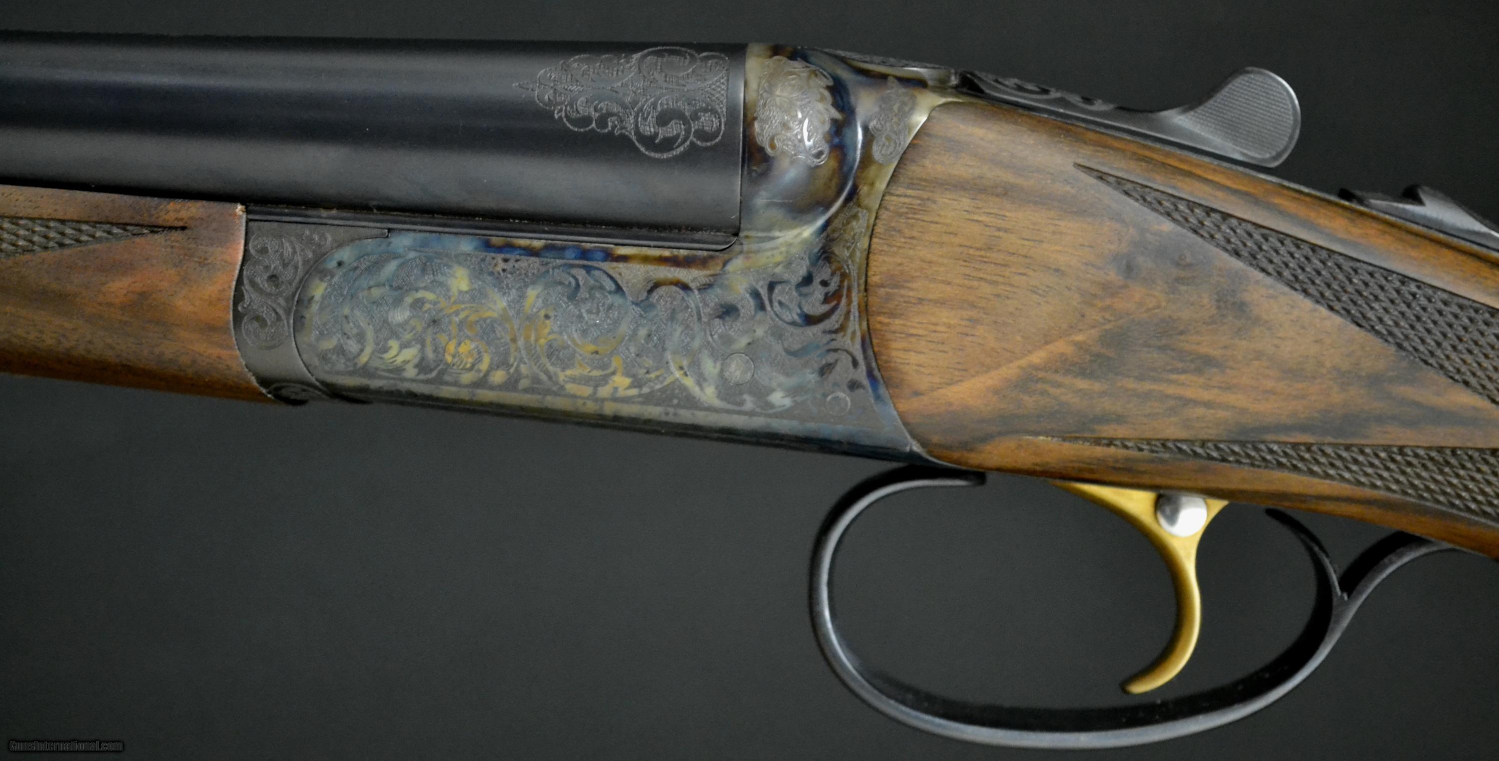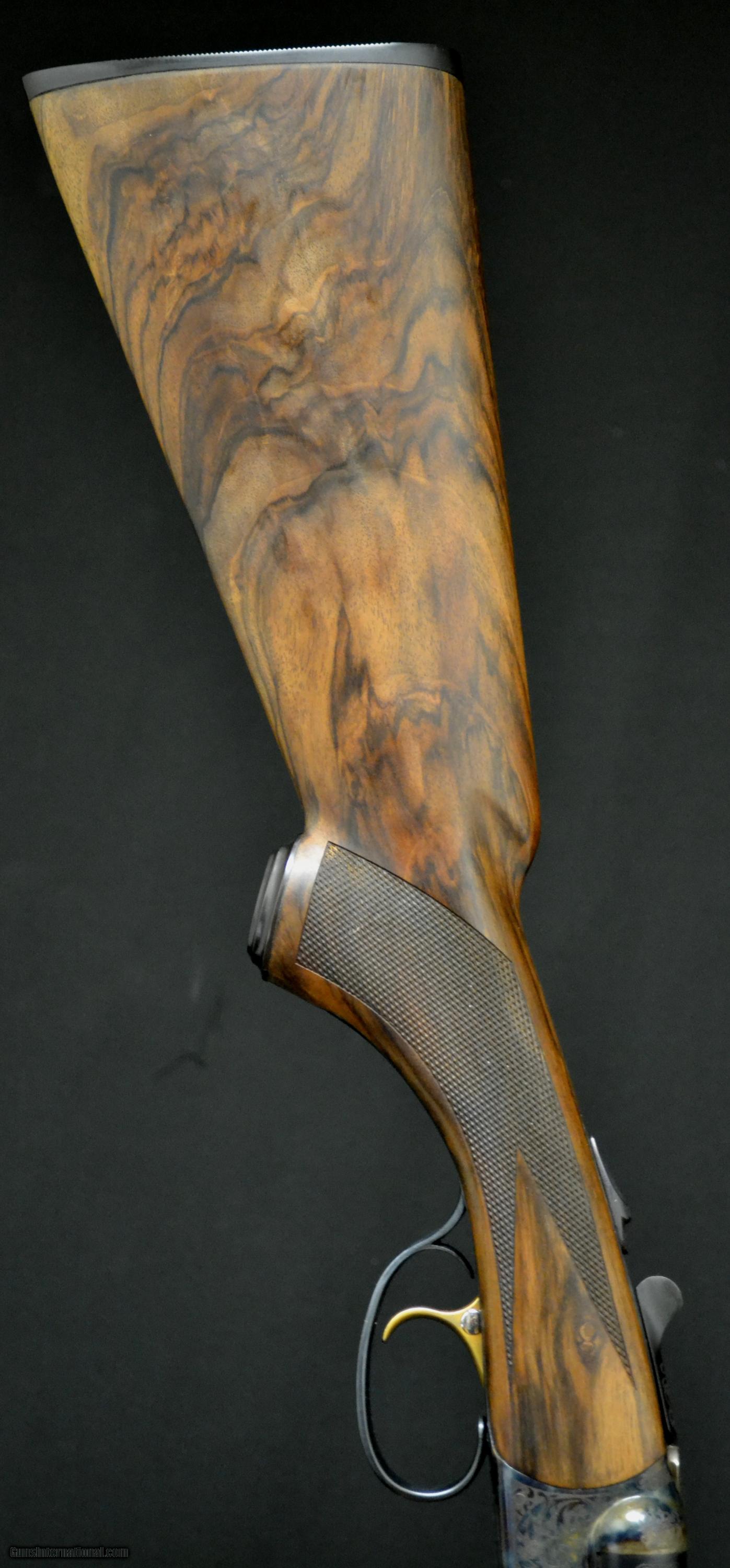 Description: RBL 20 – Launch Edition, 20ga., 30” barrels, Exhibition American black walnut pistol grip stock, Splinter forend, hard but t plate, Tru-oil finish, single trigger, automatic ejectors, automatic safety, solid game rib, full coverage rose & scroll engraving over beautiful bone and charcoal case-colored receiver, 99% condition RBL that appears unfired, comes with makers canvas trunk case, available for immediate delivery. Base price – $3,795.00, options include: Exhibition wood – $900, Assisted Opening - $450, SST $175, S&H – $50 Inv: 34264C 5 lbs. 12 oz. 14 1/2 ” X 1 3/4 ” X 2 1/2” $5,420.00 SOLD |