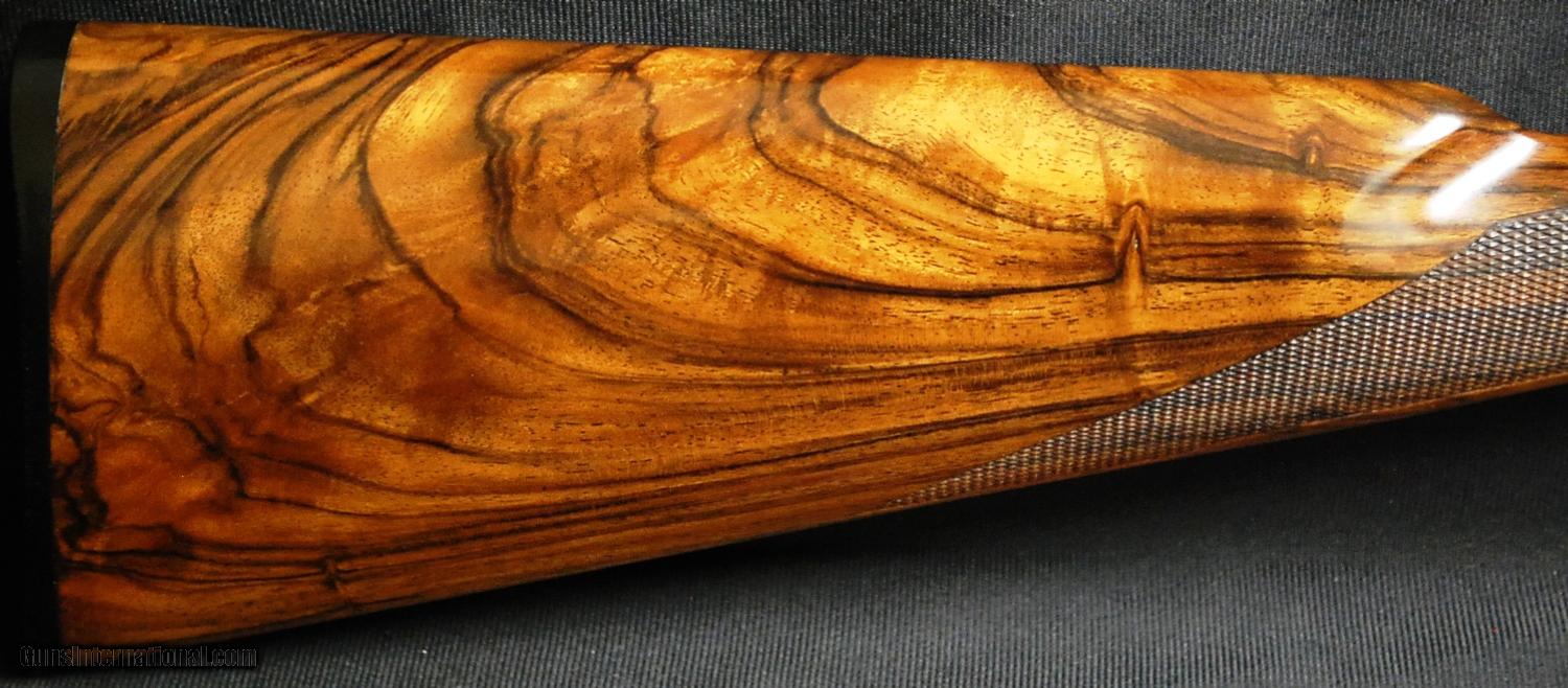 Description: RBL 20- RESERVE, 20ga. 30” barrels with choke tubes, outstanding one of a king Exhibition California English walnut straight grip stock, Beavertail forend, hard butt plate, Tru-Oil finish, gold double triggers, automatic ejectors, automatic safety, solid rib, the engraving features magnificent bold ornamental scroll with highly detailed shading over a traditional bone and charcoal case color hardened receiver, Base - $4,995.00, options include: Exhibition- $2,000, Beavertail- $175, TruOil- $500, S&H - 50.00.