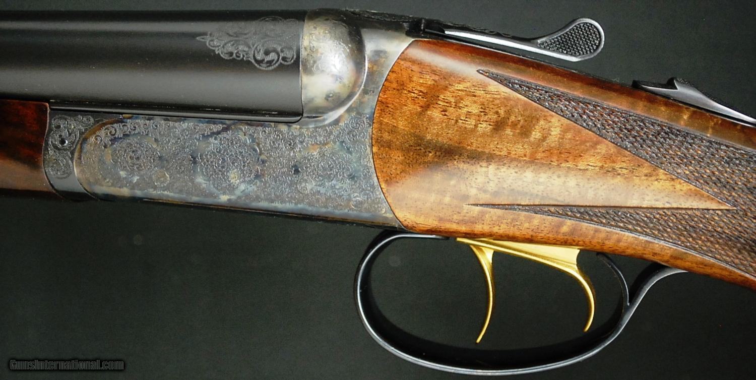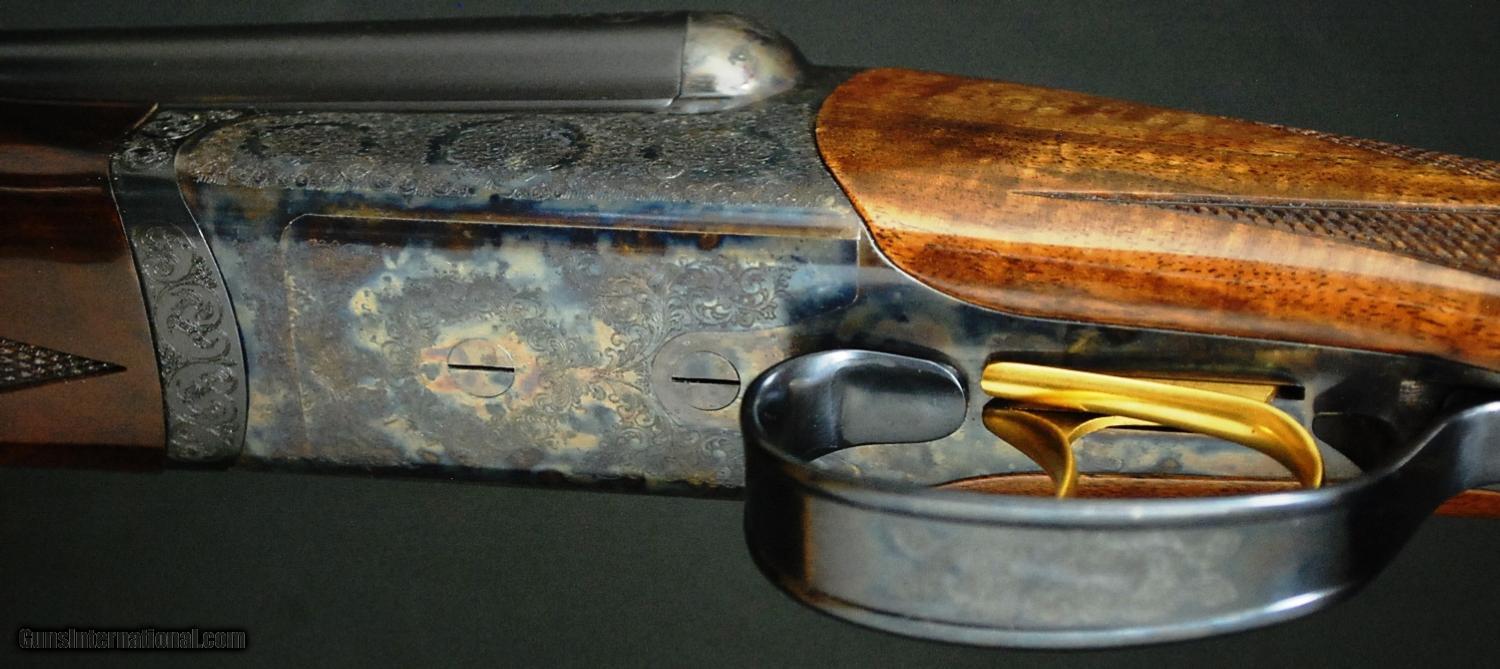 Description: RBL 20 - Rose & Scroll, 20ga., 28” barrels, hidden choke tubes, solid game rib, Exhibition wood upgrade, pistol grip stock, Beavertail forend, hard butt plate, solid rib, Tru-Oil finish, gold double triggers, automatic ejectors, automatic safety, magnificent Rose & Scroll engraving over a classic bone and charcoal case coloring, 100% new and unfired available for immediate delivery, includes case, Base price- $4,500.00, options include: Exhibition wood - $900, Tru-Oil finish - $500, Beavertail - $175, S&H - $50.00.