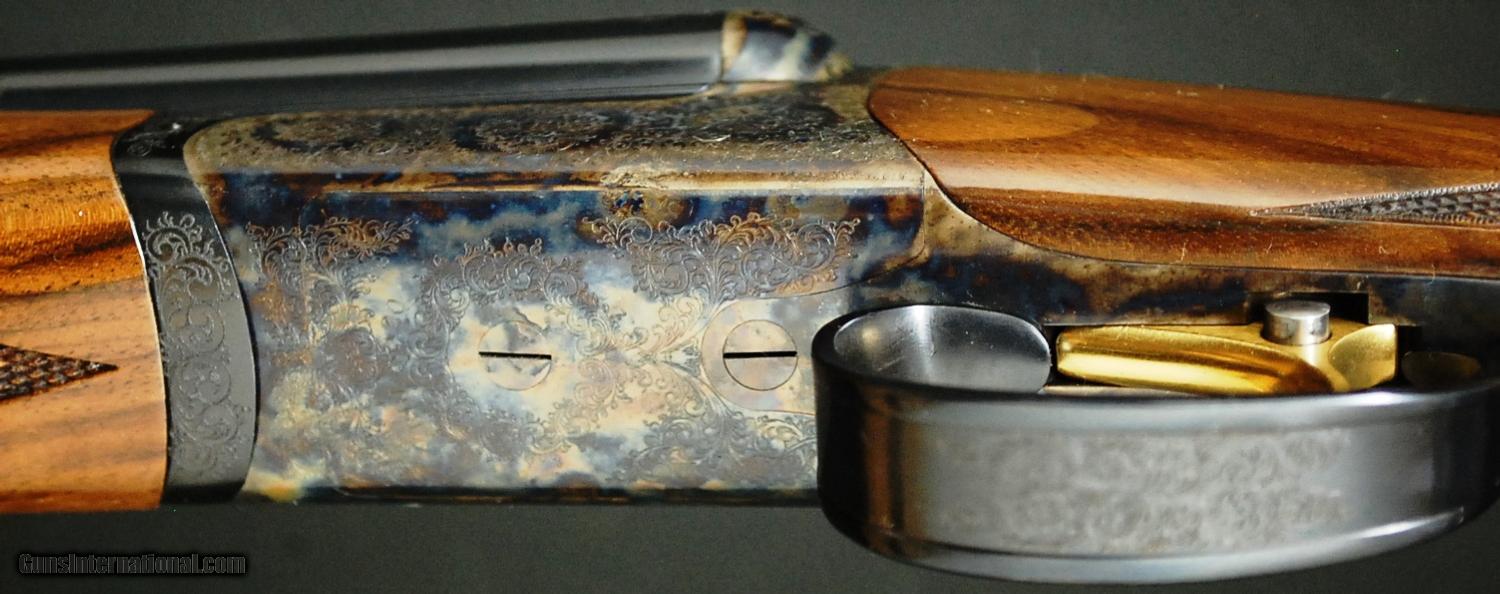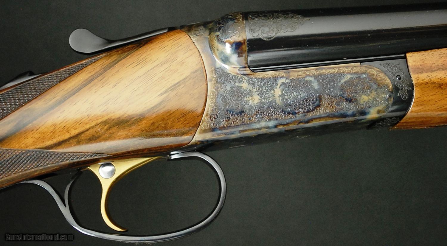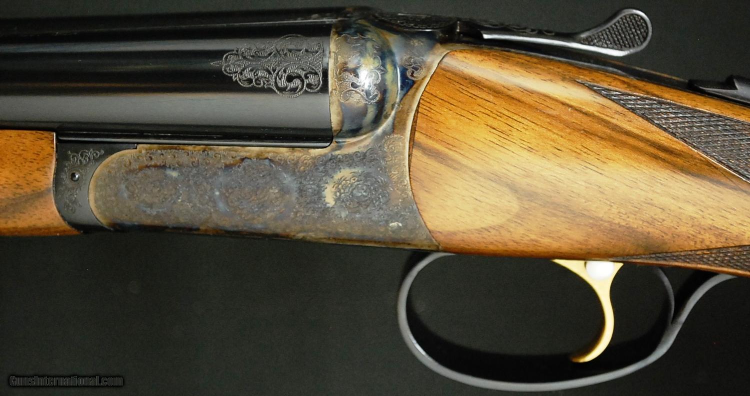 Description: RBL 20 - Rose & Scroll, 20ga., 28” barrels, screw in chokes, solid game rib, Exhibition California wood Prince of Wales round knob pistol grip stock, hard butt plate, Beavertail forend, Tru-Oil finish, single selective trigger, automatic ejectors, Rose & Scroll full coverage engraving over spectacular case coloring. Base - $4,995.00, options include: Exhibition Calif. wood - $2,000, Tru-Oil finish - $500, Beavertail forend - $175, SST - $175, S&H - $50.00.