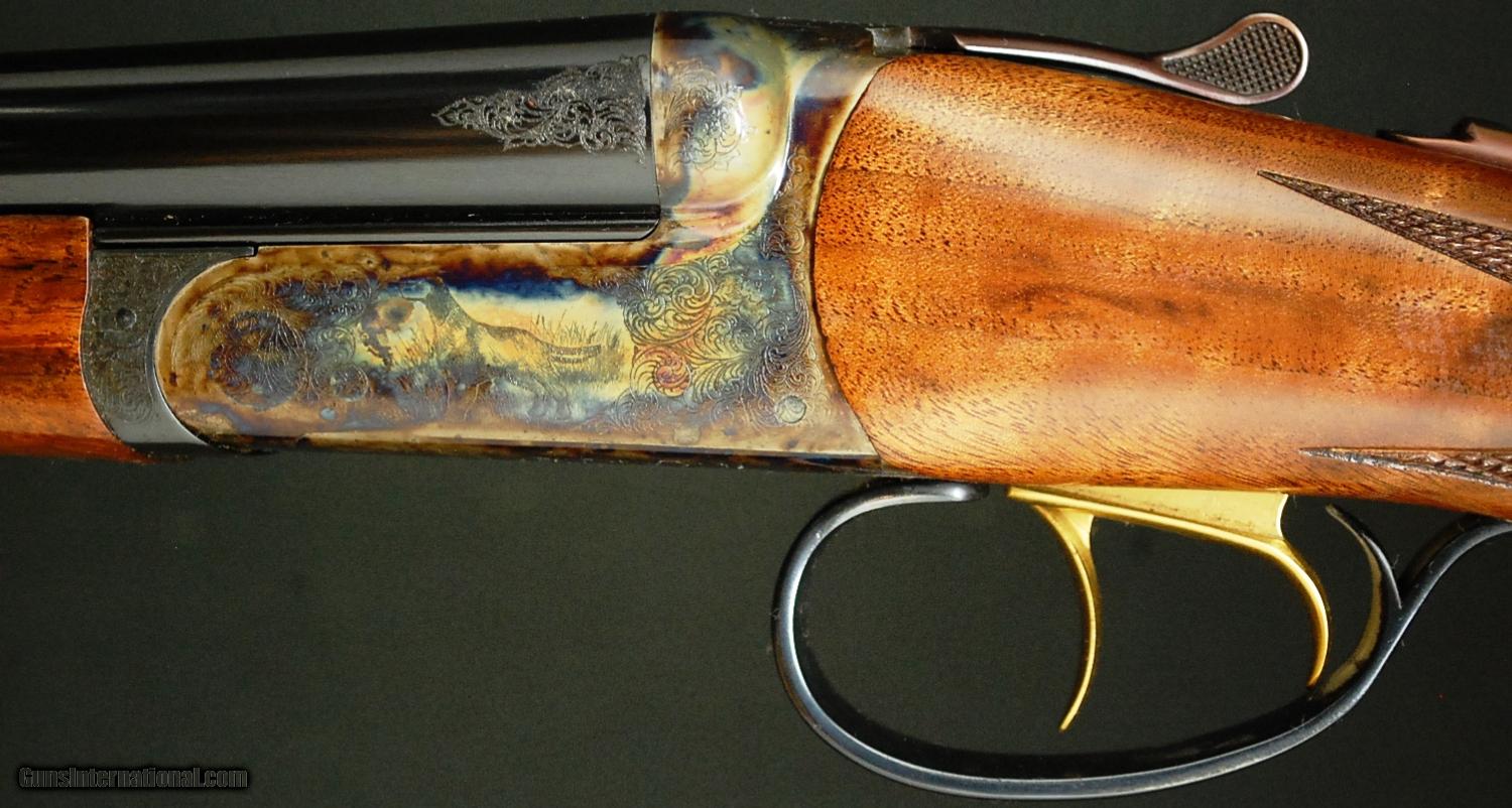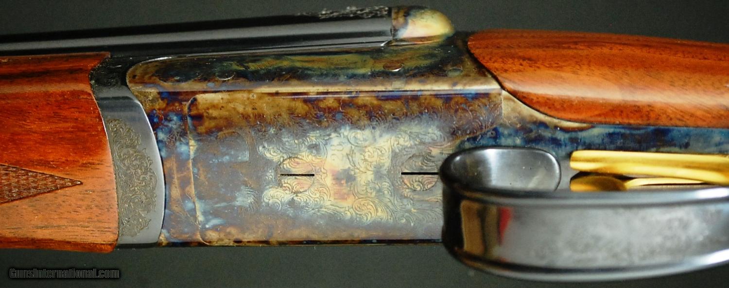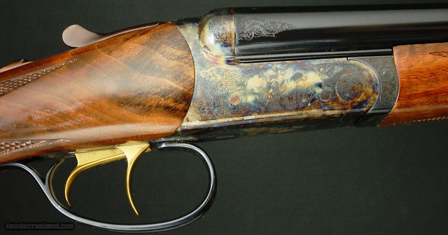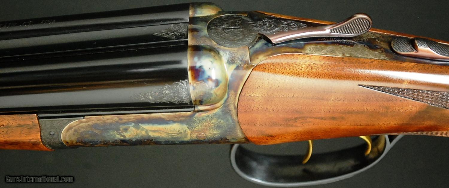 Description: RBL 28 - Reserve, 28ga, 26” barrels choked Mod/Full, 4X American Black Walnut straight grip stock, splinter forend, hard butt plate, double trigger, automatic ejectors, automatic safety, solid game rib, dogs on point surrounded full coverage scroll engraving over magnificent case coloring, 100% new and unfired available for immediate delivery, includes case and accessories. Base price - $4,995.00, options include: 4X wood - $600, S&H - $50.00.
