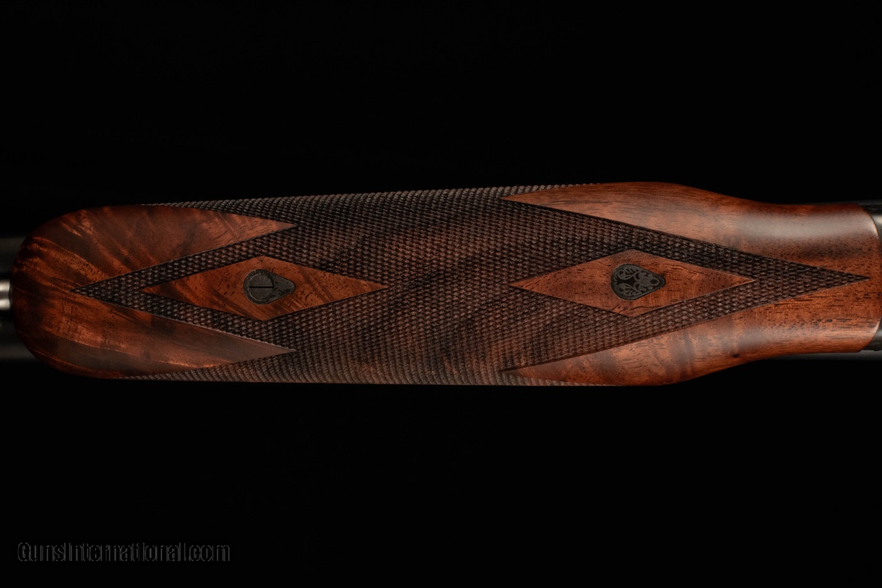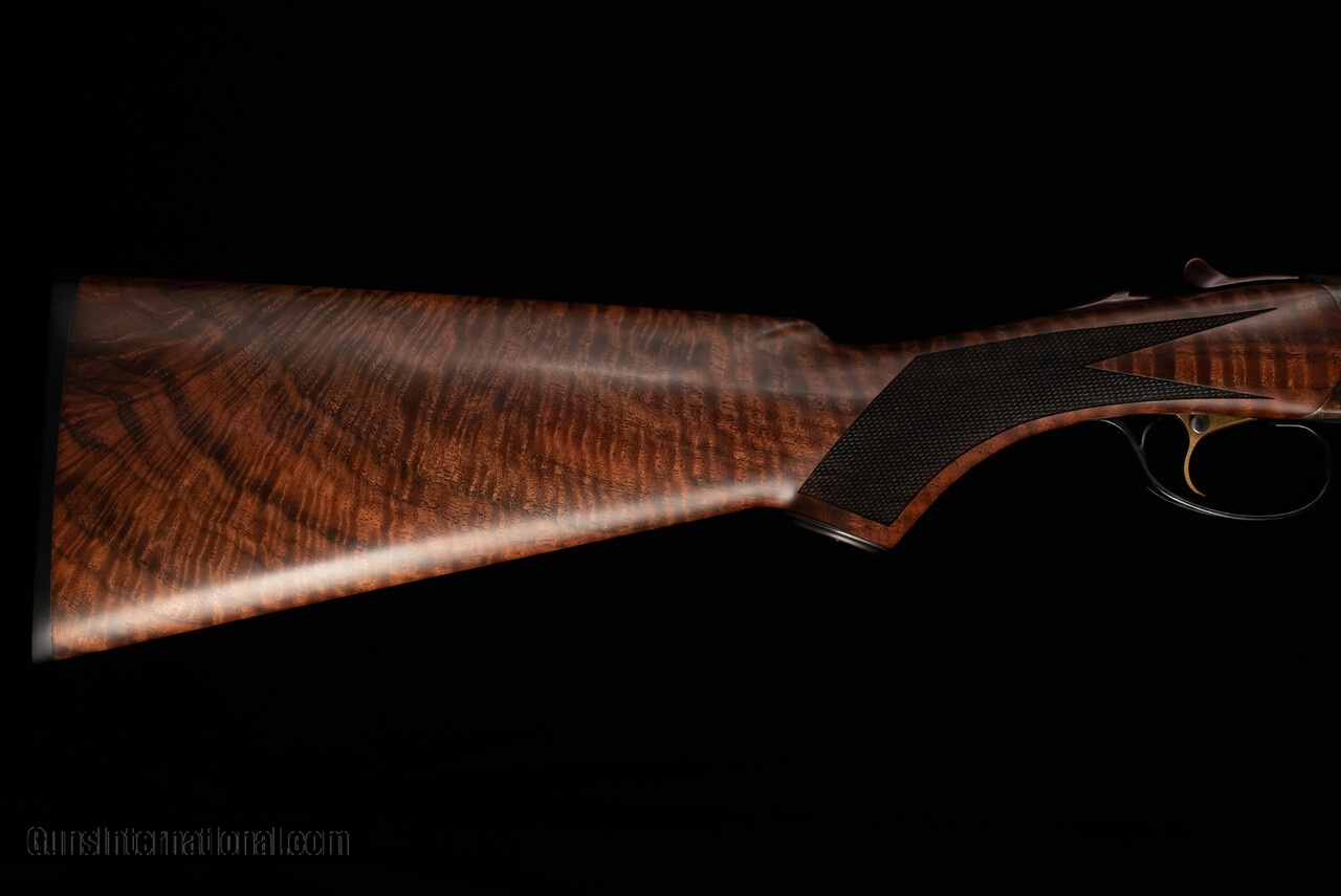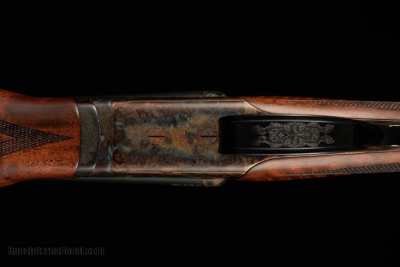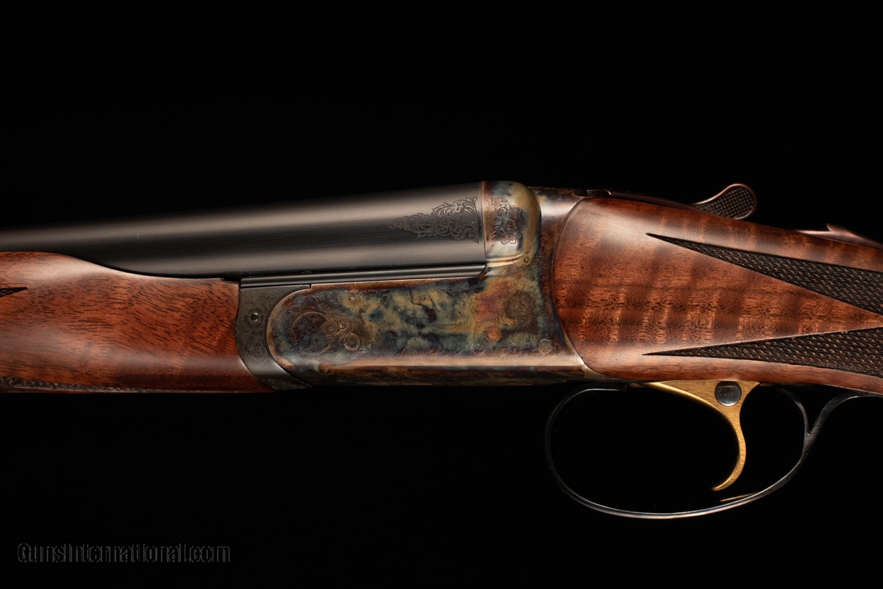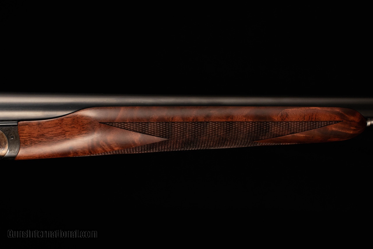 The round action RBL SxS shotgun is built to the highest of standards in our facility in New Britain, CT. Build off the successful Anson & Deeley boxlock platform, more features were added to the model such as a removable hinge pin, double bridged action, special dog or locking bolt, etc. The frames are made from a solid billet of 86-20 steel, specially engineered for each gun. This one is choked Cyl/Cyl with a single trigger, and comes in a makers fitted case