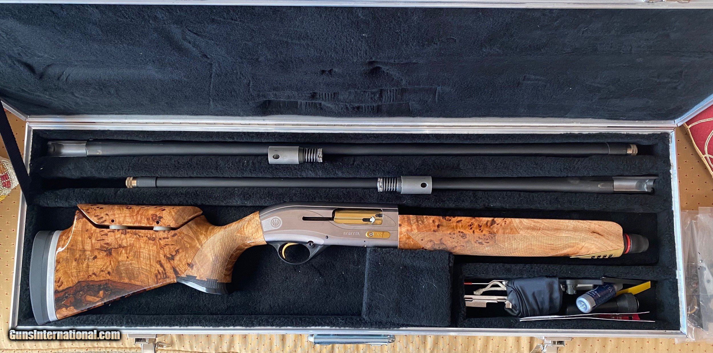 Description: UNBELIEVABLE BERETTA 391 CUSTOMIZED BY NCP INTO THE ULTIMATE TRAP/SHOOTING SPORTS SHOT GUN. Spectacular AMBROSIA MAPLE stock, gold plated accents, 2 barrel set (trap/shooting sports) custom adjustable stock, counter weights, spare release trigger and unigue adjustable ribs. Barrels: #1 = 27", #2 = 31". LOP 14 1/4+, Weight 9.2-9.3 LBS Custom Warmick fitted metal case. Condition is new. Less than a box fired. BUYER PAYS SHIPPING SOLD Shotgun Gauge: 12 Gauge Manufacturer: BERETTA/NCP Model: MATCH DELUXE Serial Number: AA243025 Condition: EXCELLENT + NEW |