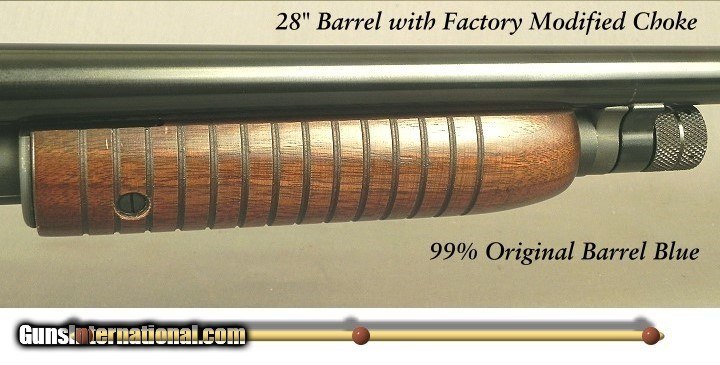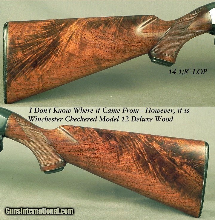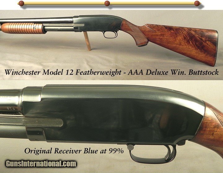 WINCHESTER MODEL 12 FEATHERWEIGHT with a AAA DELUXE WINCHESTER CHECKERED BUTTSTOCK -OVERALL ORIG BLUE at 99% -THE WOOD at 97% -TOTALLY APPEARS UNFIRED