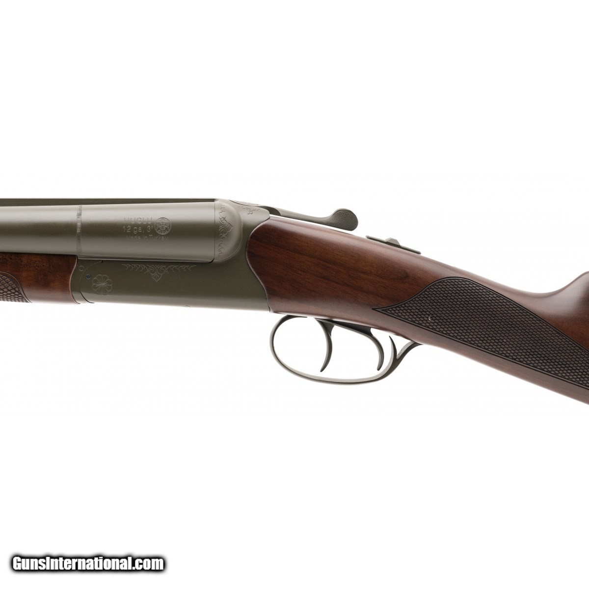 SN: 22C4977 Modern production. 12 gauge with 28"" barrels with interchangeable chokes. Bores are excellent. Side by side field gun. Green finish and wood stock are in excellent condition. Has 14"" LOP. Overall condition is excellent. Comes with case.