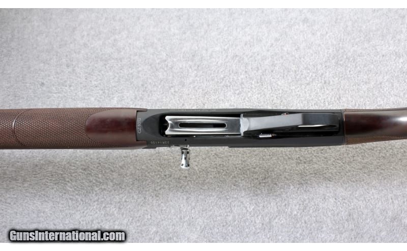 Description: The CZ 1012 Semi-Auto Shotgun uses a unique gas-less inertia system with a spring inside the bolt that stores energy during recoil, then uses that energy to cycle the shells. This means less maintenance, making it ideal for hunting, plus it can handle light target loads and heavy 3" magnums without a blink. A 26" barrel with a black hard chrome finish delivers corrosion-resistant durability and the Turkish walnut stock adds classic appeal. Checkering on the stock enhances grip for positive handling, while the flat vent rib makes it easy to sight down the barrel. Manufactured by Huglu 2022. 12 Gauge SOLD Chambers: 3 inch Metal Condition: Excellent Wood Condition: Excellent with handling marks Bore Condition: Excellent Barrels: 26 inch barrel Stock Dimensions: 14 1/4 inch LOP Fore End: Checkered walnut fore end Butt Pad: CZ rubber pad Weight: 6 Lbs. 10 Oz. Sights: Vent rib with single bead Chokes: Interchangeable choke tube Item Location: Lehi, UT |