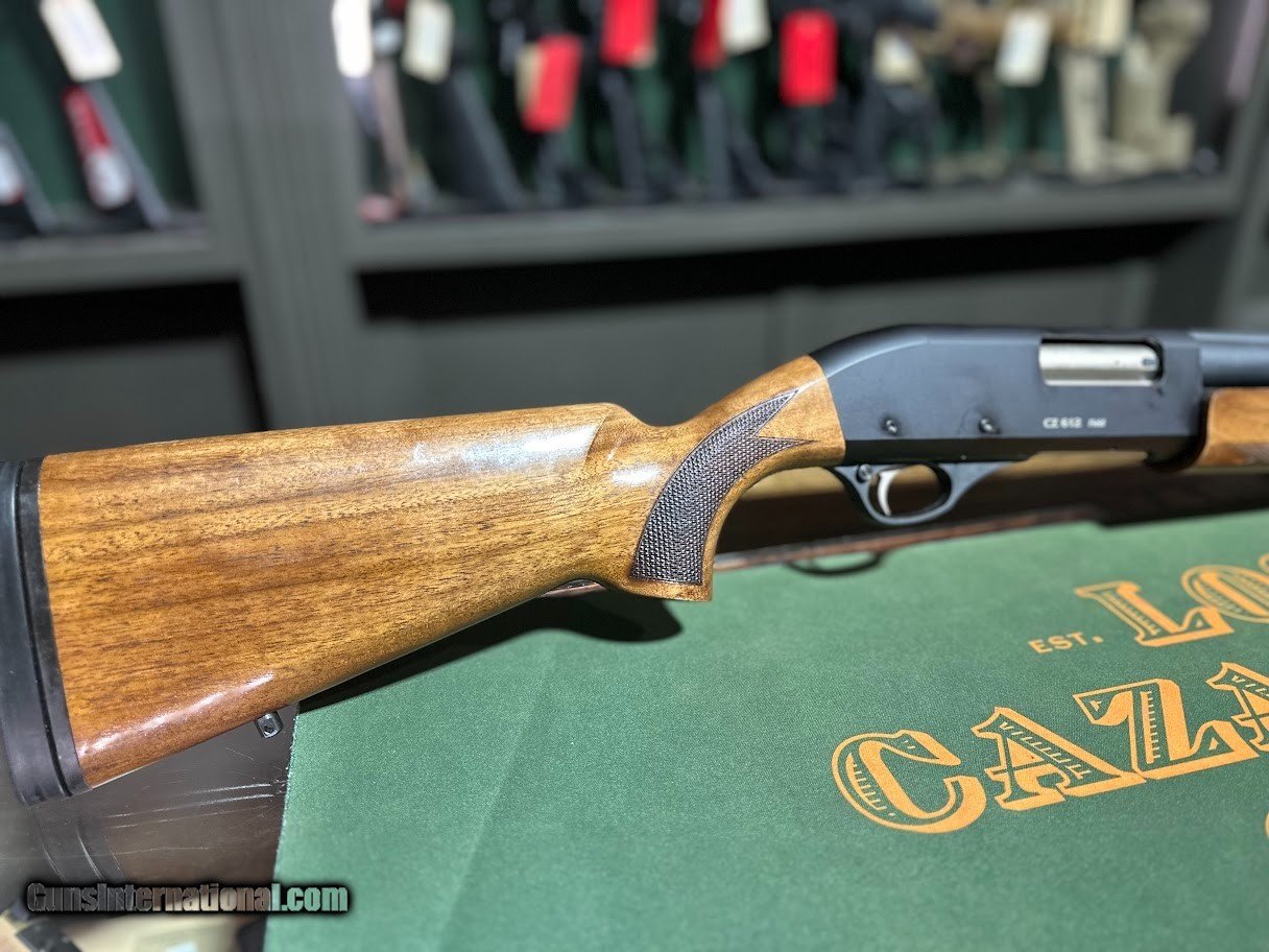 Description: Simple, strong and smooth, the 612 Field is designed to shoot everything from targets to turkeys. Wearing a walnut stock and satin chrome finish, this rugged pump will hunt for generations to come. Capable of shooting 2 ¾ and 3 inch shells and supplied with three chokes, it’s a workhorse shotgun that won’t break the bank. SOLD Shotgun Gauge: 12 Gauge Manufacturer: CZ Model: 612 Field Condition: New Wood Condition: Excellent Action: Pump |