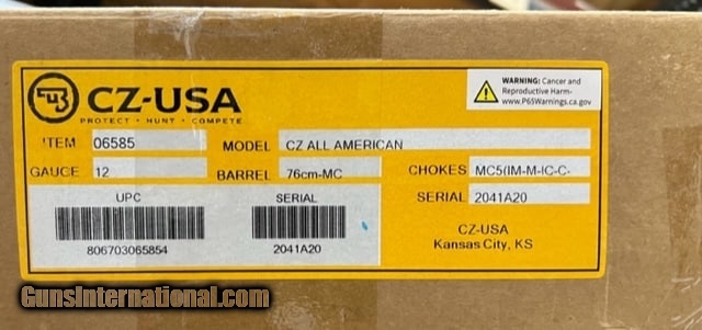 Description: Guns Listing ID: 839683 CZ All American in Very Good Condition, a few small dents in the finish due to being in a safe, the original owner stated the firearm was unfired. SOLD Manufacturer: CZ Model: ALL-AMERICAN Condition: Used - Non-Certified Barrels: 30 BARREL Gauge Info: 12 GA |