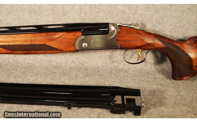 Description: A very nice CZ American Trap Shotgun Combo Two Barrel Set in 12 Gauge with Unsingle set of barrels and Ported Over/Under set of Barrels. This is a factory Blemish set with full Mechanical Factory Warranty in "as new in box condition". 12 Gauge SOLD Chambers: "3"" Chambers, both barrel sets. Metal Condition: "Excellent, as new. Wood Condition: "Very Good, few handling dents/dings. Bore Condition: Excellent. Barrels: Both sets; 32" blued with extended removable chokes and raised ribs. Triggers: Single trigger. Stock Dimensions: 14 1/2" LOP; 13/4" Drop at Comb; 2 1/2" drop at heel; right hand palm swell. Fore End: Walnut. Butt Pad: Factory butt pad. Sights: "Both sets, white bead front and mid barrel. Chokes: Full set (seven total). Item Location: Lexington, KY |