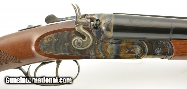 Description: Serial #20C5462, 12 Gauge (2" & 3" chamber), 20" solid rib barrels with a bright, excellent bore choked cylinder & cylinder. This is the Hammer Coach shotgun manufactured in Turkey by Huglu for CZ. The Cowboy action shooting hammer double features beautiful case colored frame, trigger guard and butt plate with a checkered pistol grip straight stock and forearm sighted with a classic white bead. In excellent, like new condition it retains virtually all 99% plus original blue and case-color finishes showing only faint handling and storage marks. The walnut stock and forearm rate excellent plus with a 14" LOP and drops of 1" and 2" at the comb and heel respectively. FFL SOLD |
