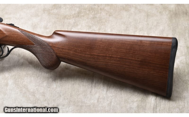 Description: This is a very well-excecuted field gun, designed for the hunter from the ground up. It features nice wood, blue metal parts, and soft recoil pad. It also includes an anti-snag patch on the recoil pad, a detail ordinarily found on high-end shotguns. 12 Gauge SOLD Chambers: "2 rounds, 12 gauge up to 33-inch Metal Condition: LNIB. Wood Condition: LNIB. Bore Condition: LNIB. Barrels: 28 inch Triggers: Factory single selective trigger. Stock Dimensions: 14-1/2 inch LOP. Fore End: Well-matched checkered walnut with slight Schnabel. Butt Pad: Rubber pad with anti-snag patch. Weight: 7 lb - 12 oz Sights: Ventilated rib with gold bead. Chokes: Interchangeable screw-in chokes. Item Location: Rogers |