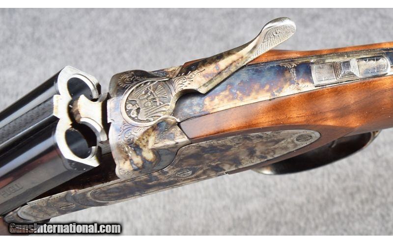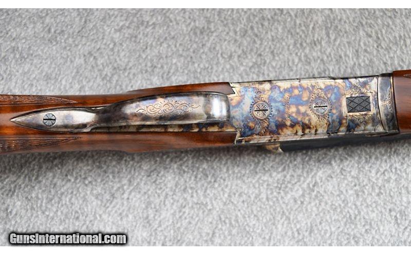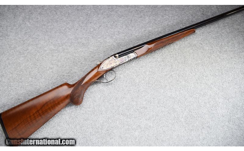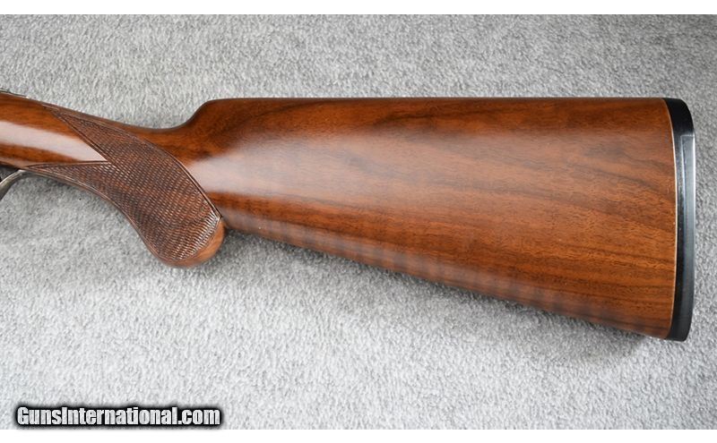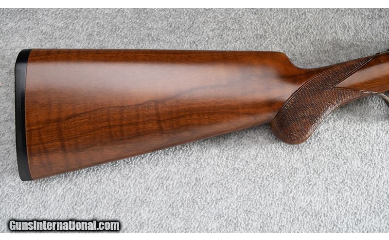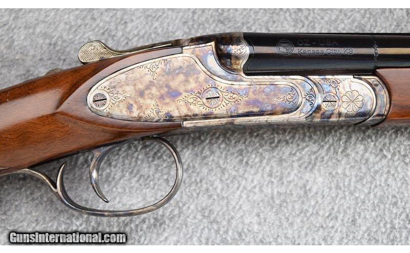 Description: This little beauty was manufactured in the Czech Republic and remains in excellent overall condition showing little use. Lockup is tight and action is stiff from little use. Gun features beautiful wood and wonderful case coloring. DAC is 1 1/2", DAH is 1 3/4" and gun features extractors. No box. Absolutely gorgeous! .410 Bore SOLD Chambers: 3 Metal Condition: Excellent Wood Condition: Excellent Bore Condition: Excellent Barrels: 26" Solid Rib Triggers: Single - Selective Safety Stock Dimensions: 14 3/4" - 1 1/4" DAC - 1 3/4" DAH Fore End: Checkered Walnut Round Knob - Checkered Walnut Splinter Butt Pad: Black Rubber Butt Pad Weight: 5 1/2 lbs Sights: Front Brass Bead Chokes: Full/Full - Fixed Item Location: Wheeling |