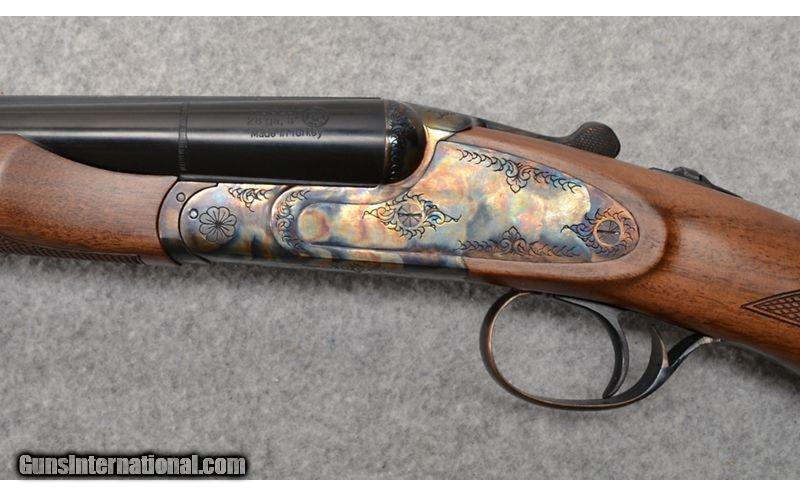 Description: CZ Sharp-Tail in 28 gauge with 28" barrels and 3" chambers with extractors. Barrels are in excellent condition. Bores are bright and shiny with no dings, dents, rings, or bulges. Small amount of powder and plastic residue noted. Full case color receiver in excellent condition. Checkered pistol grip stock and beavertail fore end are in excellent condition. Matte rib with single bead and smooth trigger with barrel selector on tang safety. Includes hard side case, operators manual, choke tube wrench, and five total chokes. 28 Gauge SOLD Chambers: 3" chambers with extractor. Metal Condition: Barrels are in excellent condition. A couple of rub marks noted on top of rib. Receiver is in excellent condition with full case coloring. Wood Condition: "Checkered pistol grip stock and beavertail fore end are in excellent condition. One small ding noted on bottom of stock, but does not go through the finish. Barrels: 28" barrel. Stock Dimensions: "14 7/8"" LOP, 1 3/8"" DAC, 2"" DAH Fore End: Checkered beavertail fore end. Butt Pad: Hard plastic butt plate with rubber recoil pad insert. Weight: 6 lb - 9 oz Chokes: Flush screw in chokes. Item Location: Mitchell, SD |