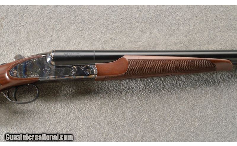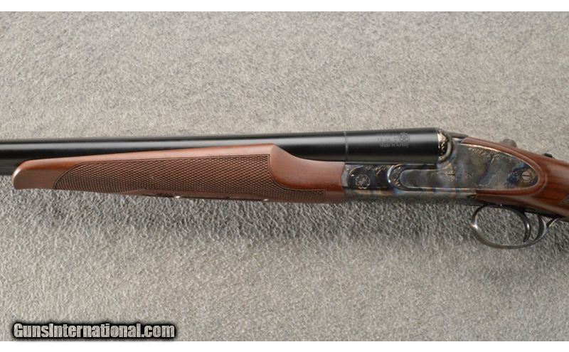 Description: Features: color case-hardened receiver, single selectable trigger, 3" chamber, extractor, 30" black hard chrome sxs barrel, raised rib, Right-hand Turkish walnut stocks, semi beavertail forend, manual safety, comb 1.5" / heel 2.25". 12 Gauge SOLD Chambers: 3 Metal Condition: Like new. Wood Condition: Like new. Bore Condition: New. Barrels: 30" SxS barrels. Triggers: Single. Stock Dimensions: LOP 14.5". Butt Pad: Rubber. Weight: 7.75 lbs Chokes: Removable. Item Location: Owatonna, MN |