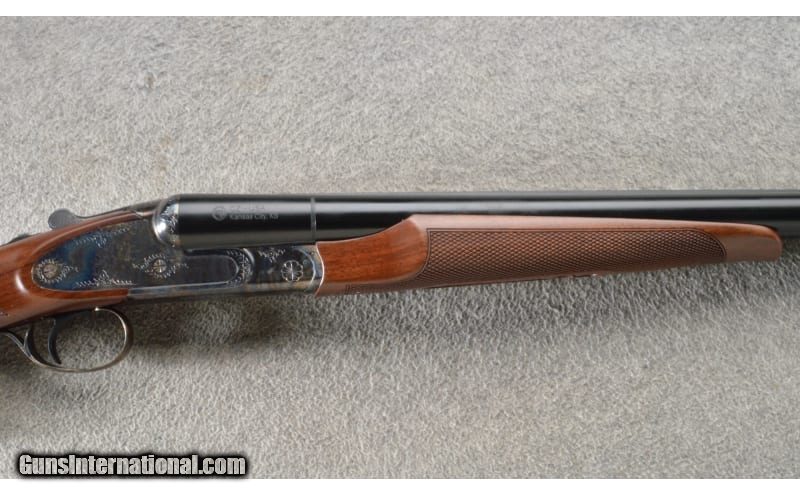 Description: Features: color case-hardened receiver, single selectable trigger, 3" chamber, extractor, 30" black hard chrome sxs barrel, raised rib, Right-hand Turkish walnut stocks, semi beavertail forend, manual safety, comb 1.5" / heel 2.25". 12 Gauge SOLD Chambers: 3 Metal Condition: Like new. Wood Condition: Like new. Bore Condition: New. Barrels: 30" SxS barrels. Triggers: Single. Stock Dimensions: LOP 14.5". Butt Pad: Rubber. Weight: 7.75 lbs Chokes: Removable. Item Location: Owatonna, MN |