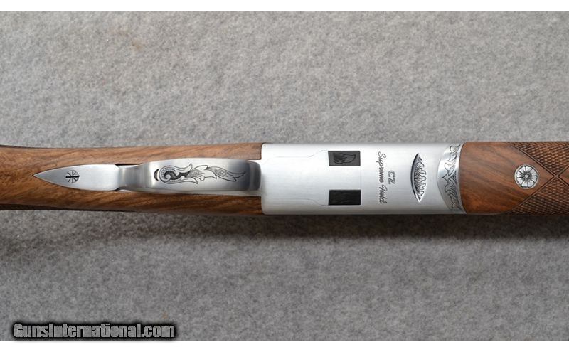 Description: CZ Supreme Field 28 Gauge, single selective trigger, 2 3/4" chambers with ejectors, 28 " barrels, with matte vent rib and single white bead. The bores are bright with no dings, dents, rings, or bulges. Action and barrels are in excellent condition. Stock and fore end are both in excellent condition. Includes factory case, paper work, and five choke tubes. 28 Gauge SOLD Chambers: 2 3/4" chambers. Metal Condition: Action and barrels are in excellent condition. Wood Condition: Stock and fore end are in excellent condition. Bore Condition: "Bright bores with no dings, dents, rings, or bulges. Barrels: 28" barrels. Triggers: Single selective trigger. Stock Dimensions: "14 3/4"" LOP, 1 5/8"" DAC, 2 1/2"" DAH Fore End: Checkered pistol grip stock and fore end. Butt Pad: Factory black rubber recoil pad. Weight: 7 lb - 5 oz Sights: Vent matte rib with single white bead. Chokes: Factory screw in chokes. Item Location: Mitchell, SD |