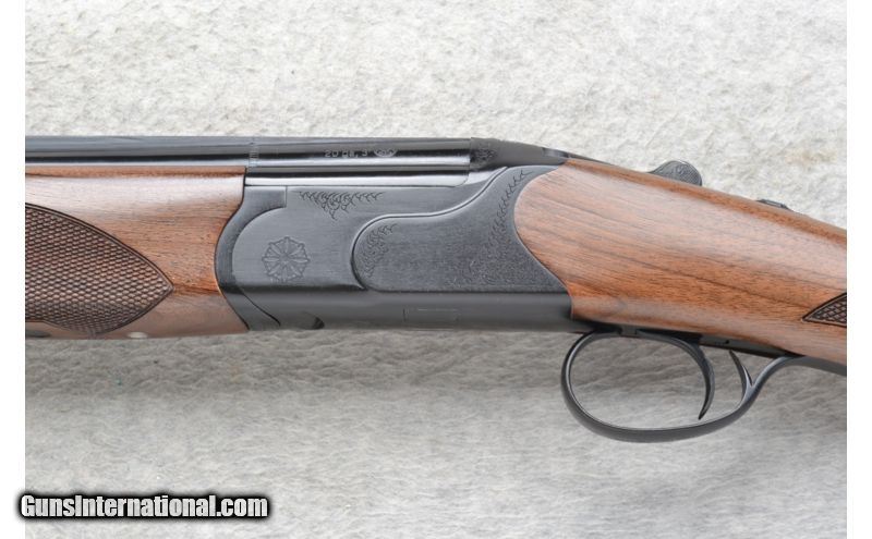 Description: This CZ Model Teal is a 20 Ga. Over and Under shotgun. It has 28 inch barrels with ejectors and a top barrel ventilated rib. It has a 3 inch chamber it takes choke tubes and comes with 5. The stock is a checkered walnut pistol grip butt and forearm. The receiver is lightly engraved. SOLD Caliber Info: 20 Ga. Chambers: 3 inch Over/Under with ejectors. Metal Condition: Excellent. Wood Condition: Excellent. Bore Condition: Excellent. Barrels: 28 inch blued with a ventilated rib. Triggers: Single. Stock: Checkered walnut pistol grip. Stock Dimensions: LOP 14 5/8 inches. Fore End: Checkered grip walnut. Butt Pad: Black rubber recoil pad. Weight: 7 lbs. 2 oz. Sights: White front bead. Chokes: Tubes. Comes with 5 - F, IM, M, IC & Skeet. Extras: Comes in a hard case with Owners Manual, 5 choke tubes and a choke tube wrench. Item Location: Richfield, WI |