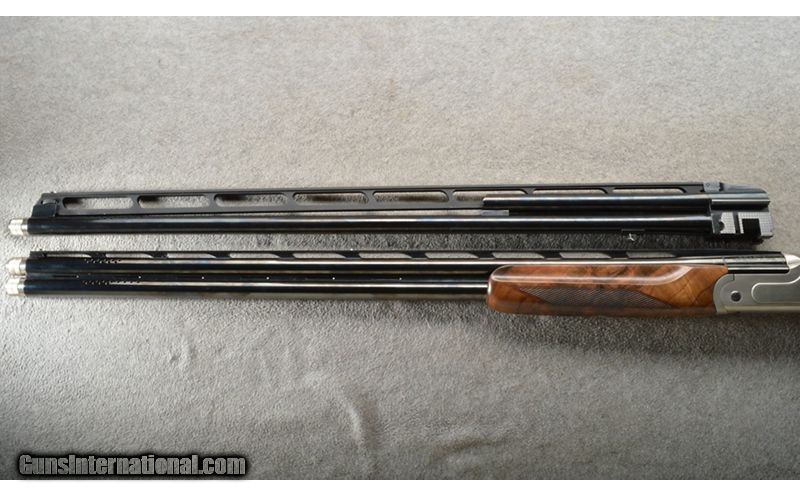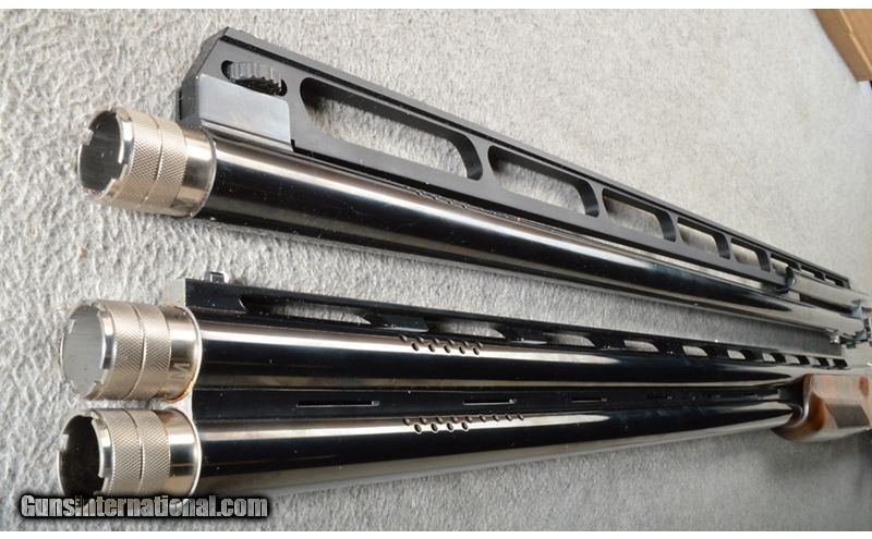 Description: Built specifically for ATA shooters who compete in both trap singles and doubles and want one gun to do it all, the All-American Trap Combo is the tool for the game! It ships with two barrel sets — one a single-shot 'un-single' with a dial-adjustable aluminum rib (adjustable from 50/50 up to 90/10 point of impact), the other a standard set of barrels with stepped rib (50/50 point of impact). Both barrel sets clock in at 32", with lengthened forcing cones (extended 1.6" and at a 2.2 degrees) and ports to reduce felt recoil. A set of extended, knurled chokes give a wide variety of constriction options (2 CYL, 2 IC, 3 MOD, 3 FULL and 1 EXTRA FULL, REM-CHOKE Thread Pattern). To ward off corrosion, the CNC-milled action is surface hardened, resulting in a beautiful white metal finish that resembles brushed stainless. The inner workings resemble those on shotguns much higher in price, with firing pins that ride in bushings and drop-in parts for once the round counts start to climb. Intended to be used heavily by the regular competitor, multiple sizes of locking blocks are available and hinge pins are replaceable, making it easy to freshen the gun up after heavy use. The barrels are not selectable, instead always firing bottom barrel first. It has a reliable mechanical trigger and manual safety, so that the gun does exactly what you want it to when you tell it to do it. With a parallel adjustable comb, healthy right-hand palm swell and Monte Carlo stock, the All-American Trap Combo also has adjustable butt plate hardware. With this comes the ability to adjust the length of pull from 14 5/8" to 15 1/2" and give the recoil pad toe-in or toe-out. A dovetailed trigger blade gives 3/8" of adjustment on the reach to the trigger shoe. All of these features combined make the All-American Trap Combo an incredible gun for the money. At a fraction the price of its competition, this versatile gun is easy to tune to an individual shooter, allowing them to be more comfortable behind the gun and break more clays. To top it all off, this gun is shipped in a Americase Ultra lite case built to safely transport the two-barrel set gun. 12 Gauge SOLD Chambers: 2 3/4 and 3" with ejectors. Metal Condition: The blue barrels and white receiver are ANIB. Wood Condition: The walnut stock and matching forearm are ANIB. Bore Condition: The bores are ANIB. Barrels: "Both barrels are 32"" blue, ported with vent ribs. Triggers: Single gold color with an adjustable LOP. Stock Dimensions: "14 5/8 to 15 1/2"" LOP, 1 3/4"" adjustable DAC and 2 1/2"" DAH. Fore End: Target style checkered walnut with finger grooves. Butt Pad: "High grade Turkish walnut with an adjustable comb, checkered pistol grip and an adjustable butt pad. Weight: 8 Lbs 8 Oz. Sights: The Un-single has an adjustable aluminum high rib with mid and front beads. The O/U has a steel rib with mid and front beads. Chokes: "Screw in, comes with 2 CYL, 2 IC, 3 MOD, 3 FULL, 1 X-FULL. Rem choke pattern threads. Item Location: Owatonna, MN |