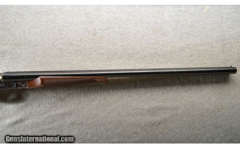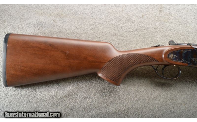 Description: This new side-by-side carries all of the mechanics as the Sharp-Tail but with a 28-inch barrel and a 14 1/2" length of pull. Originally designed to tackle side-by-side sporting clays events, it is a classy double gun that doesn't carry the accustomed weighty price tag. Equipped with a set of 5 choke tubes, it's the perfect choice for a clay shooter or gentleman hunter. The case color frame and blue steel are sharp looking. The walnut stock and forearm are also quite nice. 12 Gauge SOLD Chambers: 3" Side X Side with extractors. Metal Condition: Like new. Wood Condition: Like new. Bore Condition: Like new. Barrels: 28" gloss blue with a solid rib. Triggers: Single blue. Stock Dimensions: 14 1/2" LOP. Fore End: Very nice walnut with a checkered beavertail style forearm. Butt Pad: Matching walnut with a checkered pistol grip and a black rubber butt pad. Weight: 7 lbs. 13 oz. Sights: Single front white bead on the solid rib. Chokes: "Screw in, comes with 5 chokes. Item Location: Owatonna, MN |