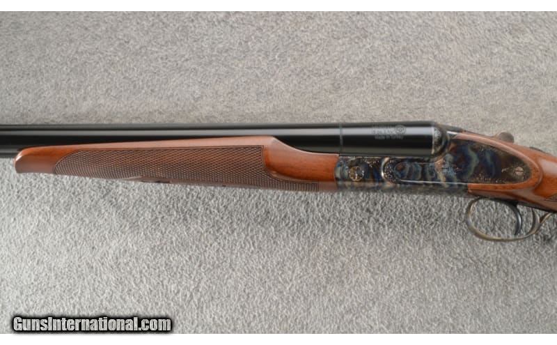 Description: CZ-USA Sharp-Tail side x side 20 gauge shotgun with 3" chambers. This shotgun features 28" barrels with a solid rib and nice mid-grade walnut. The frame, trigger guard and fore end metal is case colored with light engraving. Included is the factory hard case with owners manual. 16 Gauge SOLD Chambers: 2 3/4" chamber. Metal Condition: Minor finish blemish in mid right barrel. Wood Condition: Minor chip at the end of the fore end. Bore Condition: Smooth bright bores. Barrels: 28" barrel. Triggers: Single. Stock Dimensions: LOP 14 5/8". Fore End: Beavertail style with a slight schnable. Butt Pad: Rubber. Weight: 7.75 lbs Sights: Bead. Chokes: Fixed. Item Location: Owatonna, MN |